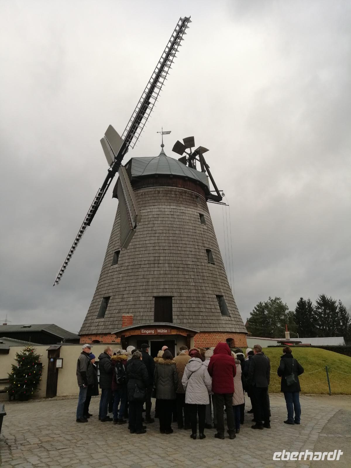 Nach einem gemütlichen Frühstück fuhren wir kurz nach 10 Uhr zur Holländer Windmühle nach Straupitz. Die 1850 erbaute Bockwindmühle ist die letzte produzierende Dreifach-Windmühle Europas mit Mahl-, Öl- und Sägemühle.