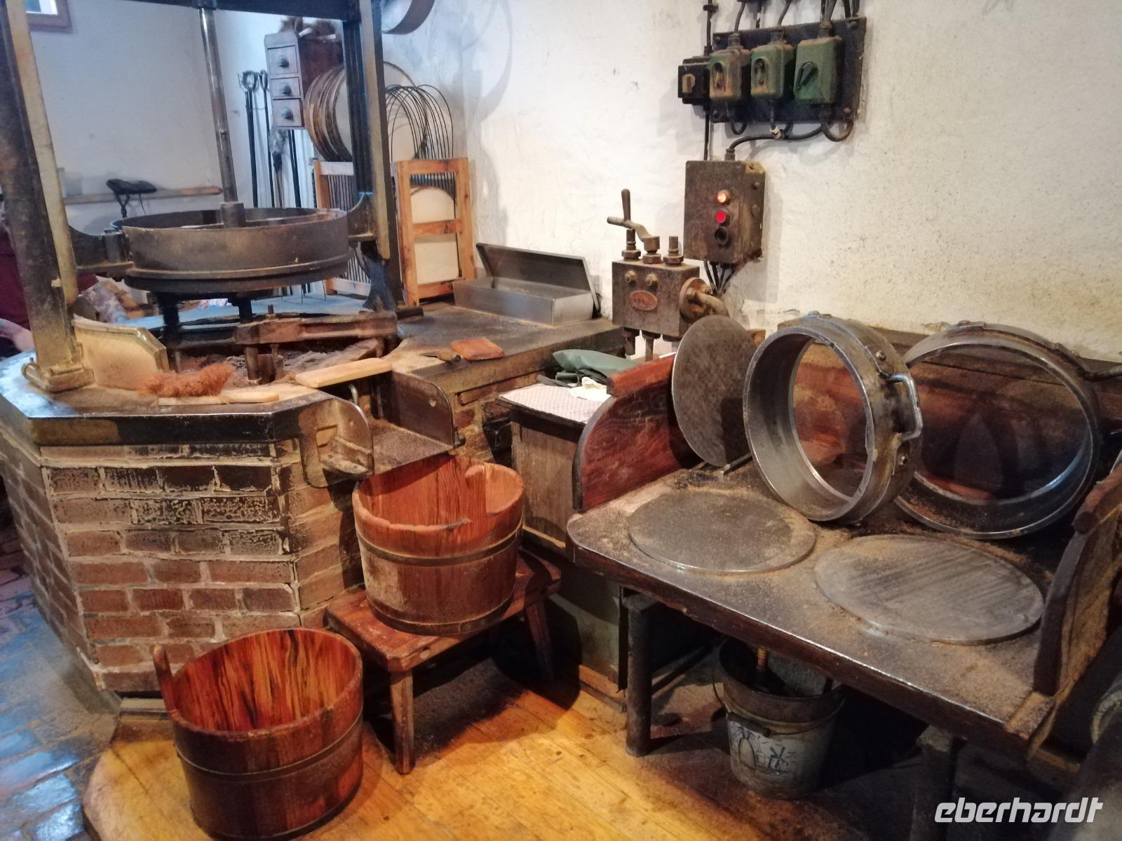 Anschließend besuchten wir die Ölmühle, in der seit Dezember 1995 wieder Leinöl hergestellt wird. Die Produktion erfolgt wie vor 100 Jahren, nach "Müller Nitschkes Art". Durch das "Rösten" des Leinsamenschrotes entsteht der milde, leicht nussiger Geschmack, der dem Straupitzer Öl eine besondere Note verleiht. Der sehr engagierte Müller erzählte uns viel Wissenswertes und spannendes zum Thema Leinöl und wir durften das Straupitzer Gold auch verkosten.
