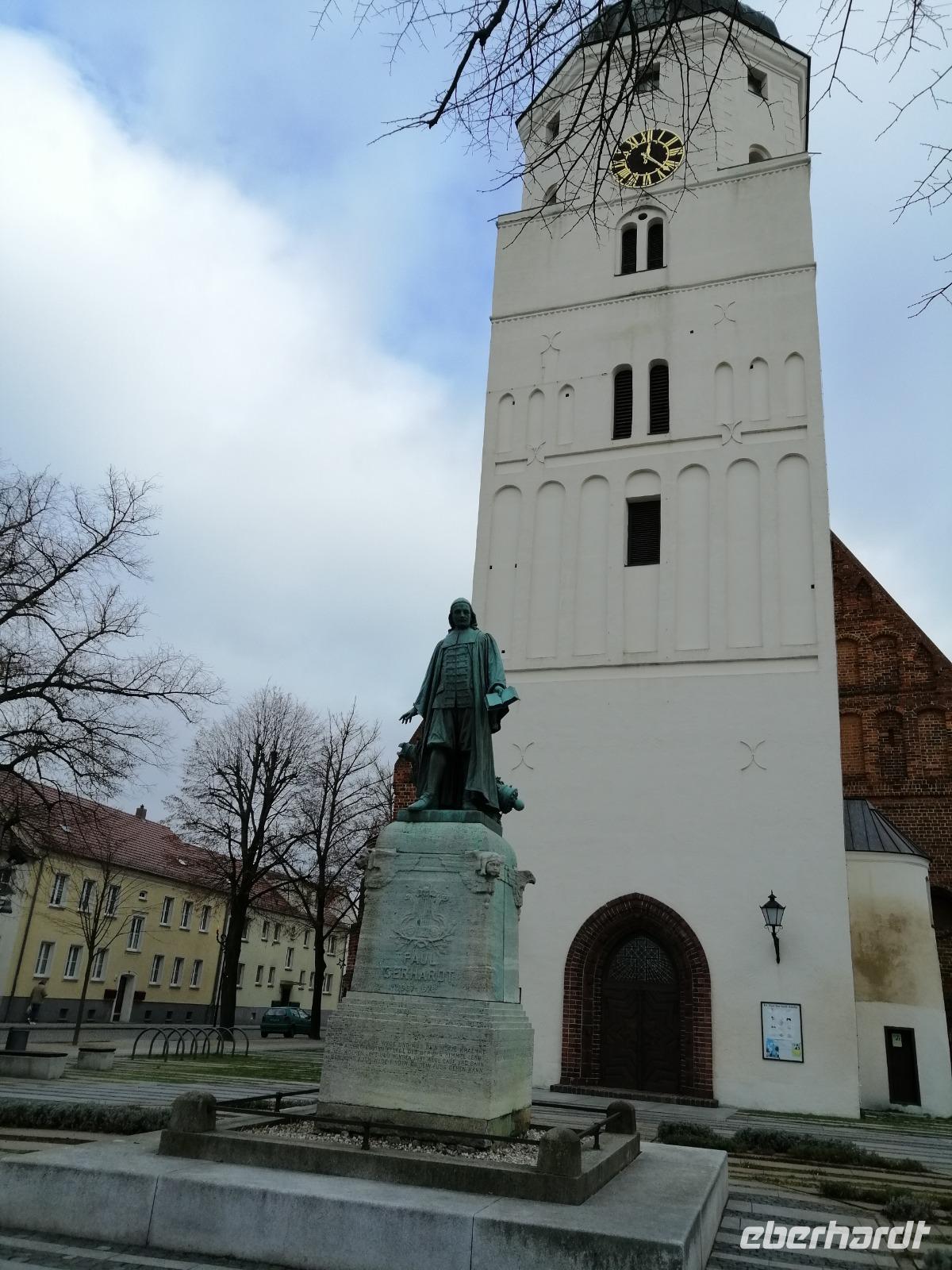 Den ersten Tag des neuen Jahres starteten wir ganz gemütlich. Wir frühstückten ab 9 Uhr ganz in Ruhe und danach sammelten sich die Freiwilligen zu einer Stadtführung durch Lübben. Unsere nette Stadtführerin, die Grit, holte uns gegen 11:30 Uhr am Hotel ab. Die sehr informative Stadtführung begann direkt am familiengeführten Hotel Lehmann. Die Grit erzählte uns die Geschichte des Hotels und luftete das Geheimnis der Elefanten, die im Hotel überal zu sehen sind. Danach gingen wir durch das Regierungsviertel zum Schloß. Dort erzählte uns Grit über die Schloßgeschichte, zeigte uns die erste Bank der Stadt: die Sparkasse und erklärte, was die großen roten Blumentöpfe vom Schloß bedeuten. Anschließend besuchten wir die wunderschöne Schlossinsel, wo Grit uns über die Geschichte der Sörben informierte. Danach überquerten wir die Grenze zwischen dem Unter- und Oberspreewald, die direkt in der Stadt verläuft. Auf dem Marktplatz schauten wir uns die versteckten Merkmale des Spreewaldes an: der Brunnen als Wasser, die Bäume als Wald, die Bühne als Kahn und die vier Leuchtmasten als Ruder. Anschließend erzählte uns Grit die Geschichte der Paul-Gerhardt-Kirche, die 1607 als spätgotische Hallenkirche erbaut wurde.