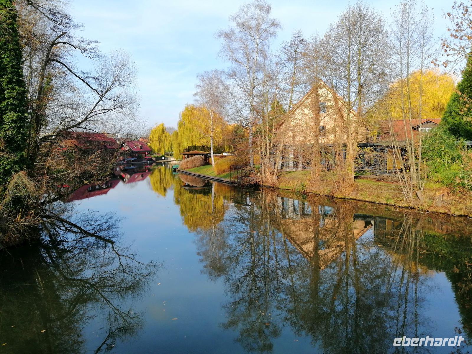 Nach einer kurzen Mittagspause stand ein weiterer spannender Programmpunkt auf unserer Agenda: winterliche Kahnfahrt mit Glühwein! Der Fährmann holte uns am Hotel ab und wir starteten unsere Kahnfahrt kurz nach 14 Uhr. Das Wetter war wunderschön und die tolle Landschaft des Spreewaldes begleitete uns die ganze Fahrt! Auch den Biber haben wir zum Sehen bekommen.