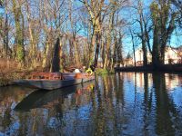Nach einem ausgiebigen Frühstück startete nun schon unsere Kuschelkahnfahrt. Bei sonnigem Wetter und Temperaturen um die 0 Grad fuhren wir ca. 2 Stunden über die verschiedenen Fließe bis zur Hauptspree. Dabei passierten wir auch einige Schleusen, die noch von Hand betrieben werden. Die tatkräftigen Gehilfen unterstützten wir mit einem Schleußengroschen, mit dem diese hier ihr Taschengeld aufbessern.