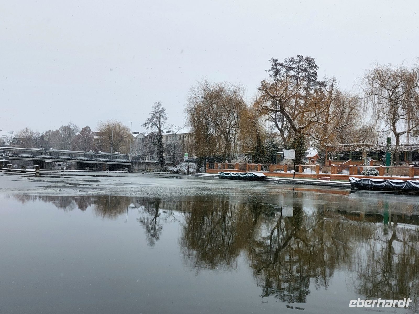 Der Start unserer geplanten Kahnfahrt musste an den Hafen Lübben verlegt werden, da sich an unserer geplanten Einstiegstelle nahe unserem Hotel schon Eis auf der Spree gebildet hatte. Bei Schneefall wanderten wir die kurze Strecke bis zur Einstiegstelle. Unter einem Dach hatte unser Kahnfährmann schon Decken bereitgelegt und wir stiegen ein mit Vorfreude auf den verschneiten Spreewald ein. Bei einer einstündigen Glühweinfahrt um Lübben waren alle Gäste sehr begeistert von den verschneiten Bäumen und Wiesen in dieser unberührten Natur - ein besonderes Erlebnis.