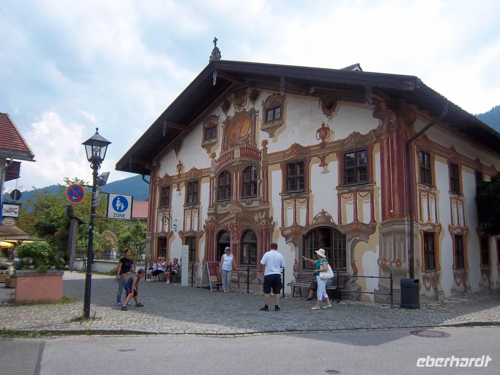 Strahlender Sonnenschein auch noch beim Besuch des Klosters in Ettal. Als wir dann in Oberammergau das Pilatushaus aufsuchten, begann es zu regnen, was uns angesichts der vielen herrlichen Erlebnisse dieses Tages nur noch wenig stören konnte.