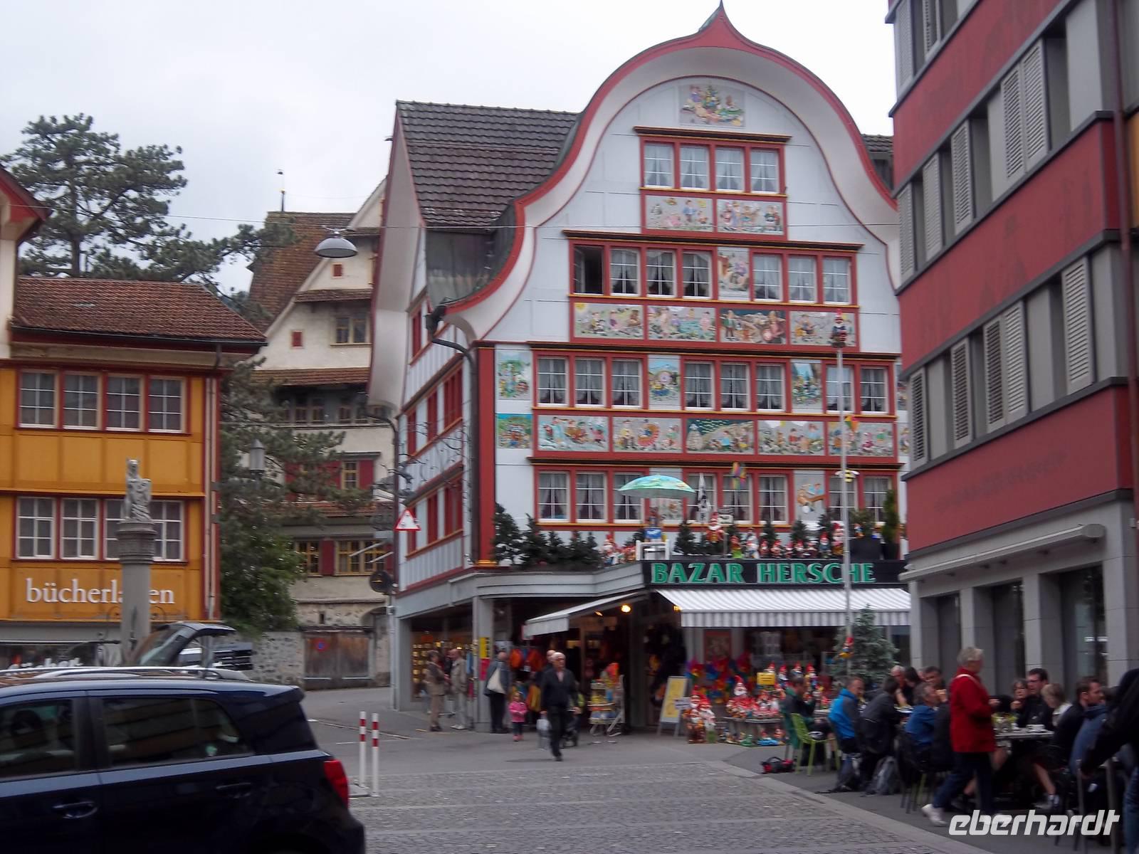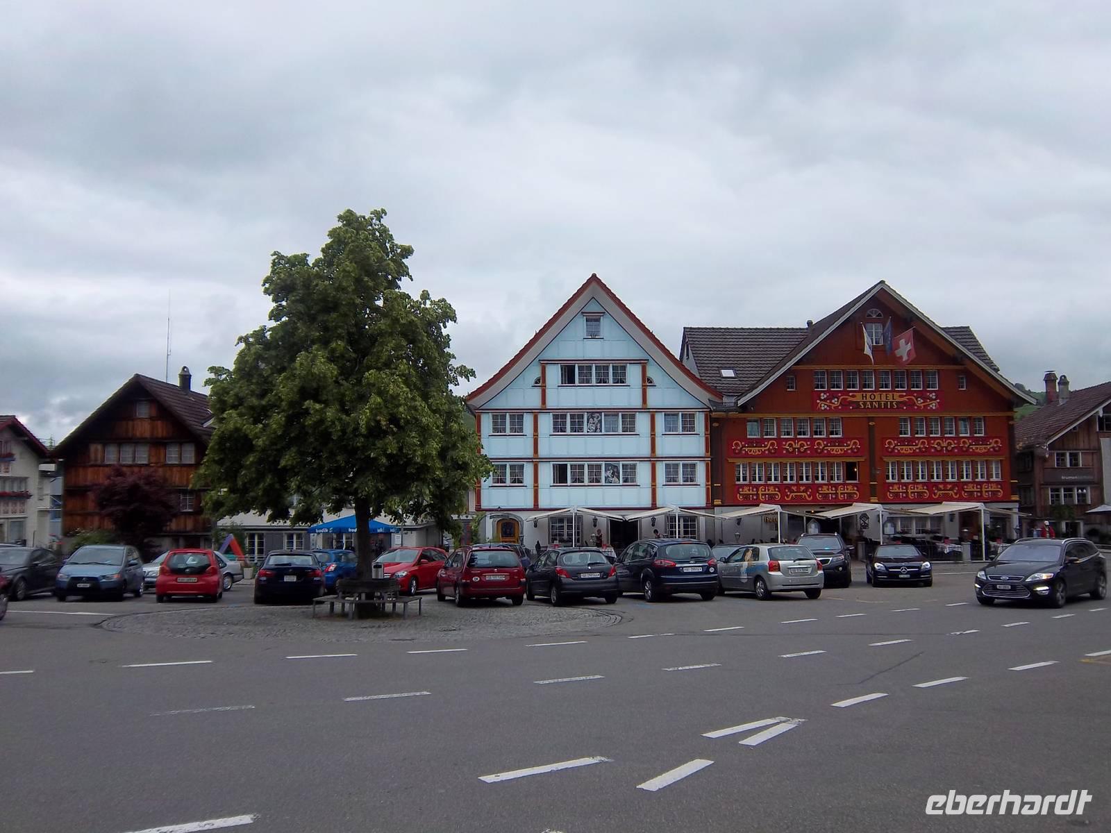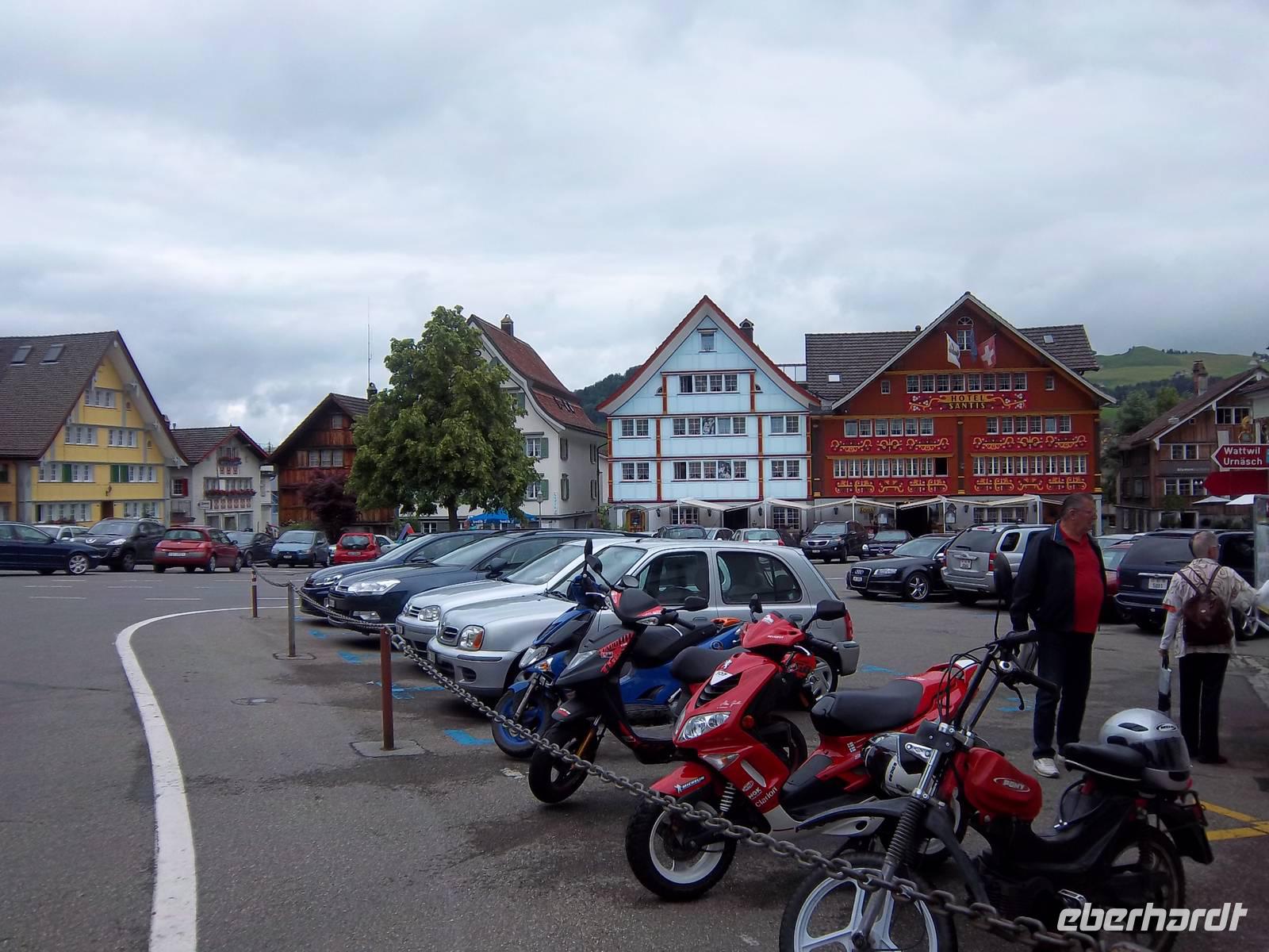 Auf schon bekannten Straßen ging es wieder ins Rheintal. Von dort Anstieg in der Schweiz hinauf nach Gais, wo auch heute noch Herr Kachelmann das Wetter „macht". Erster Stopp im Kantonshauptort Appenzell, der mit seinem Landsgemeindeplatz noch an die Tradition der hier gelebten direkten Demokratie erinnert.
