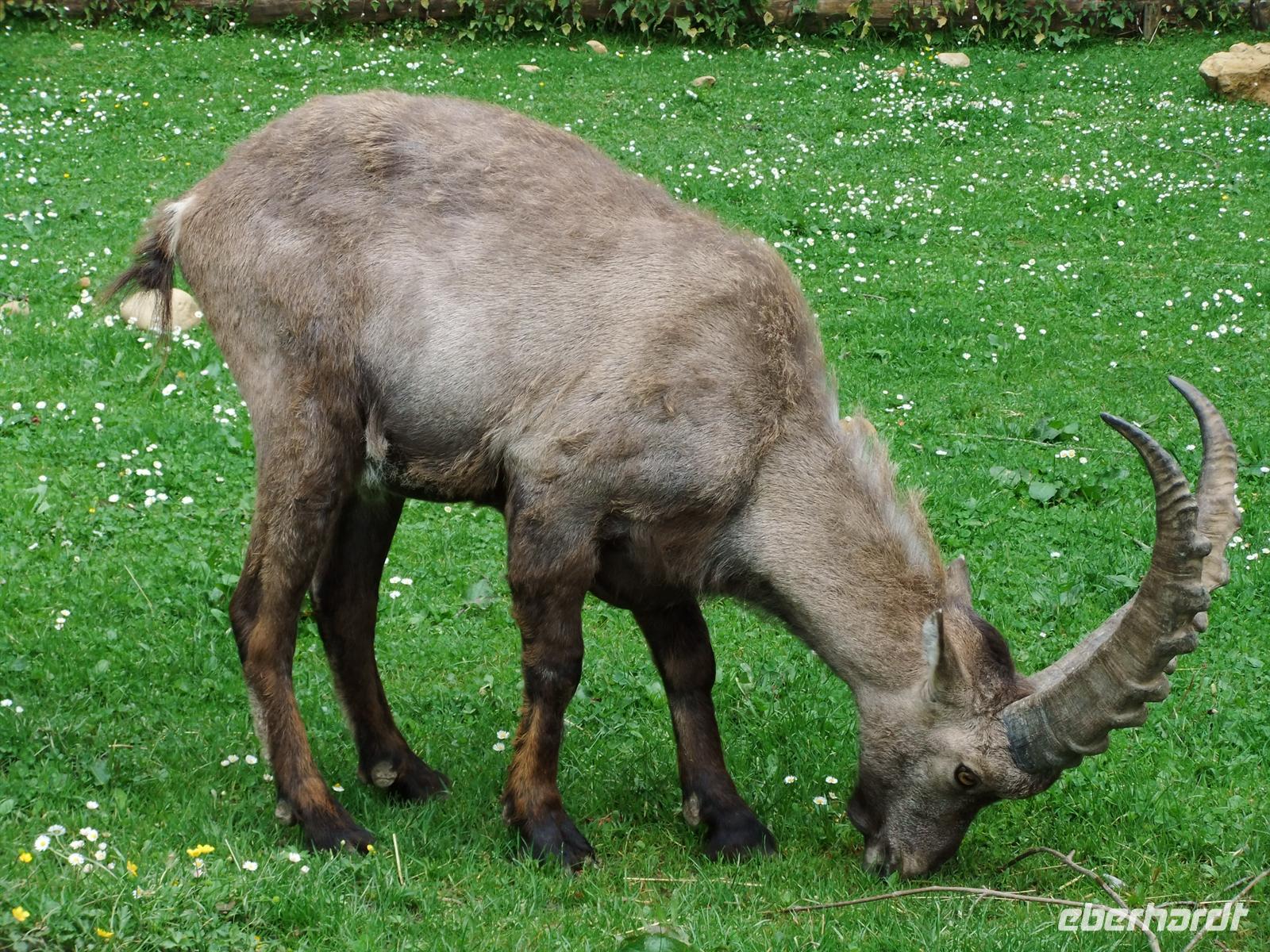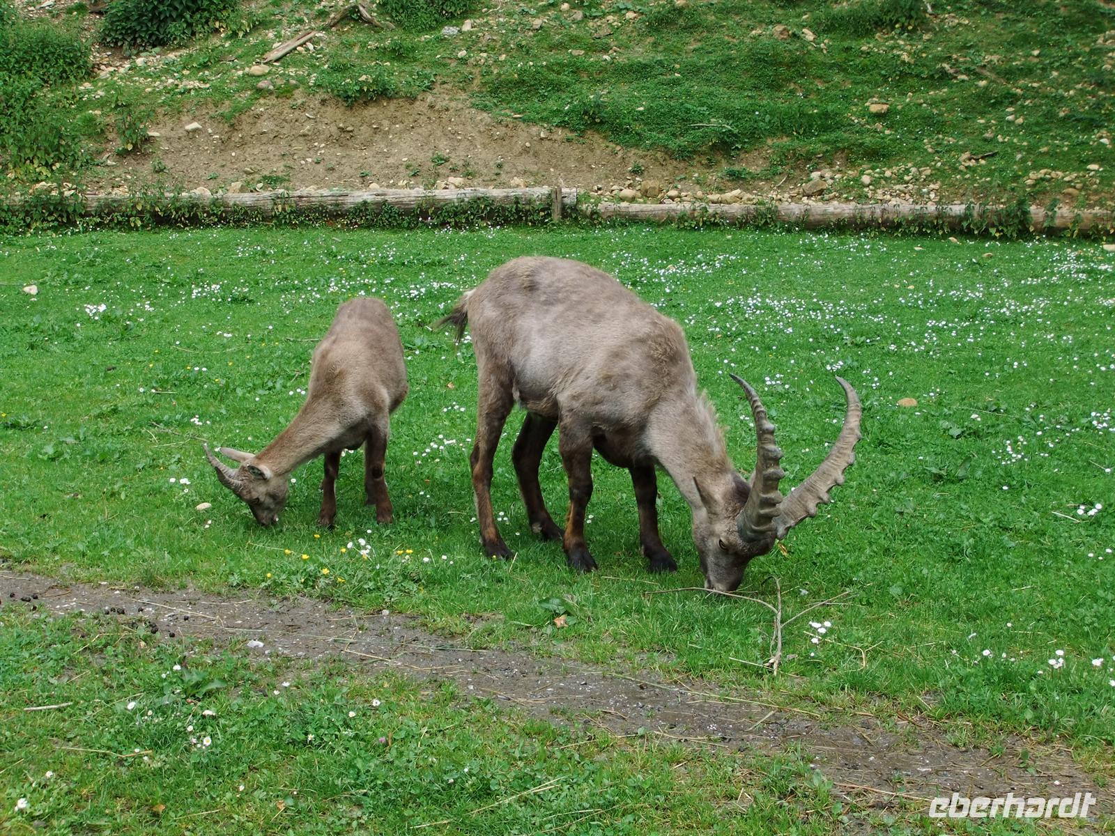 Eine besondere Attraktion ist der weitläufige Alpenwildpark neben der Bergstation. Auf einem Rundweg mit Schautafeln zu Fauna und Flora beobachten wir u.a. Alpensteinböcke, Mufflons, Hirsche, Wild- und Hängebauchschweine, Zwergziegen und Hasen. Einige Gäste stärken sich noch im Bergrestaurant bevor es mit der Pfänderbahn wieder nach unten und mit dem Bus zurück nach Balderschwang geht. Hier lädt und Wirt Konrad noch zu einem Dorfrundgang ein. Wir erfahren dabei, dass Balderschwang mit 1044 Metern die höchstgelegene und auch die kleinste selbständige Gemeinde Deutschlands ist. Entlang des Flüsschens Bolgenach geht es durch blühende Bergwiesen zu den Skiliftanlagen, denn der Ort ist vor allem bei Wintersportlern sehr beliebt. Dann zeigt uns Wirt Konrad noch die älteste Eibe Deutschlands, deren Stamm in zwei Teile geteilt ist und die noch jedes Jahr reichlich Früchte trägt. Zurück im Hotel freuen wir uns auf eine leckeres Essen, das mit dem besten Schokoladenmousse endet, das ich je gegessen habe. Ergänzend zum Dorfspaziergang sehen wir uns danach noch einen Film über das Leben und den Alltag in Balderschwang an.