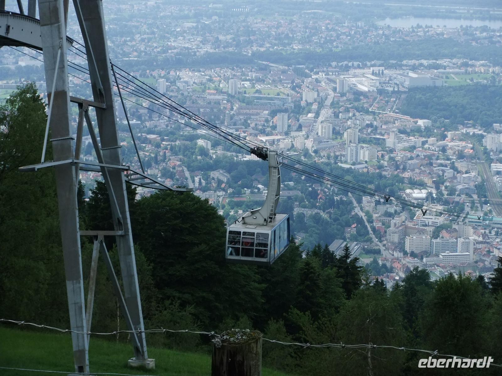 Nach dem Guten-Morgen-Frühstück ist heute Bregenz unser Ziel. Gleich hinter Balderschwang erreichen wir die deutsch-österreichische Grenze und setzen unsere Fahrt Richtung Bodensee fort. In Bregenz erwartet uns schon Stadtführer Gerhard Tauber. Mit ihm fahren wir als erstes auf den Gebhardsberg. Von der Festung haben wir einen schönen Blick ins Rheintal. Zurück in Bregenz spazieren wir in die mittelalterliche Oberstadt. Abseits des Verkehrstrubels erinnern hier die Martinskapelle und kleine historische Wohnhäuser an vergangene Zeiten. Danach bleibt noch Zeit für einen Bummel durch die Fußgängerzone oder zur Seepromenade. Von dort können wir die bekannte Bregenzer Seebühne sehen. Anschließend fährt uns Lothar mit dem Bus zur Talstation der Pfänderbahn. Die Schwebebahn bringt uns in sechs Minuten auf den 1064 Meter hohen Hausberg von Bregenz. Von hier genießen wir den weiten Blick auf Bregenz und den Bodensee.