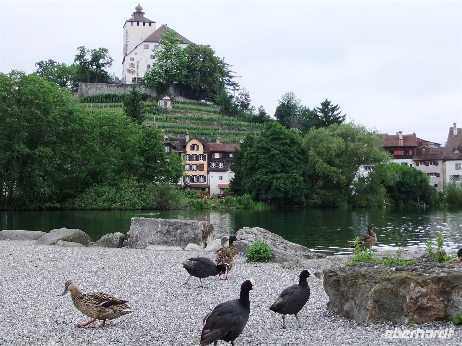Es ist in der Schweiz die einzige fast vollständig erhaltene Holzbausiedlung aus dem 13. Jahrhundert. Vom Parkplatz laufen wir zu den 35 Häusern. Das Schloss und der See bilden einen schönen Hintergrund für ein Gruppenfoto. Nun verlassen wir die Schweiz und reisen ins Fürstentum Liechtenstein weiter. Schon von weitem sehen wir das Wahrzeichen Liechtenst
