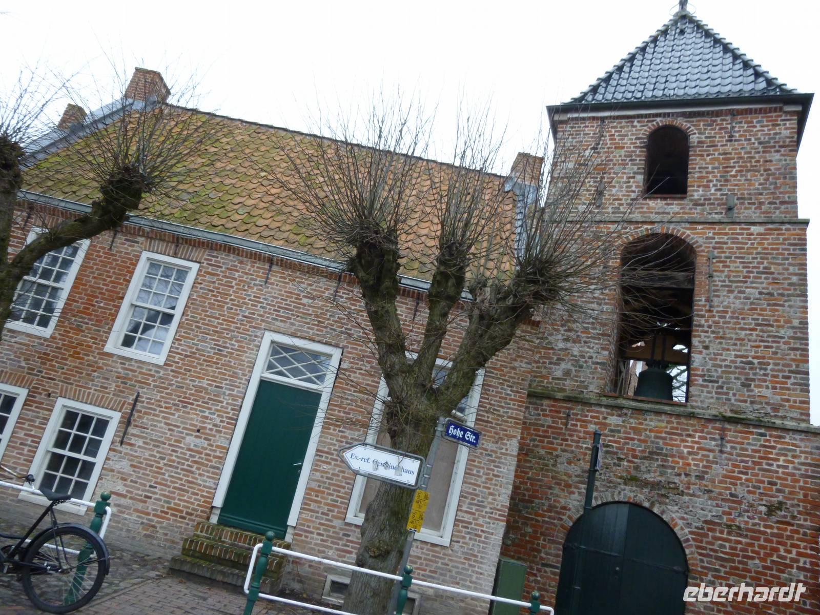 Übers flache holländisch anmutende Land mit Kanälen, Wiesen mit Kühen, alten Mühlen und neuen Windkraftanlagen fuhren wir zuerst in Richtung der alten Handels- und Seehafenstadt Emden, Wirkungsort von Henri Nannen und Otto Waalkes. Am Horizont erschienen bald deren Seekräne und wir erreichten die Innenstadt. Dort begannen wir unseren Rundgang zum ostfriesischen Landesmuseum am Ratsdelft mit den Museumsschiffen, die teilweise auch als Restaurant dienten, zu den beiden schmucken Pelzerhäusern aus dem 16. Jahrhundert, dem Bunkermuseum, der Großen und (kleinen) Schweizer Kirche - erstere mit berühmter Reformationsbibliothek - und last but not least der Kunsthalle.