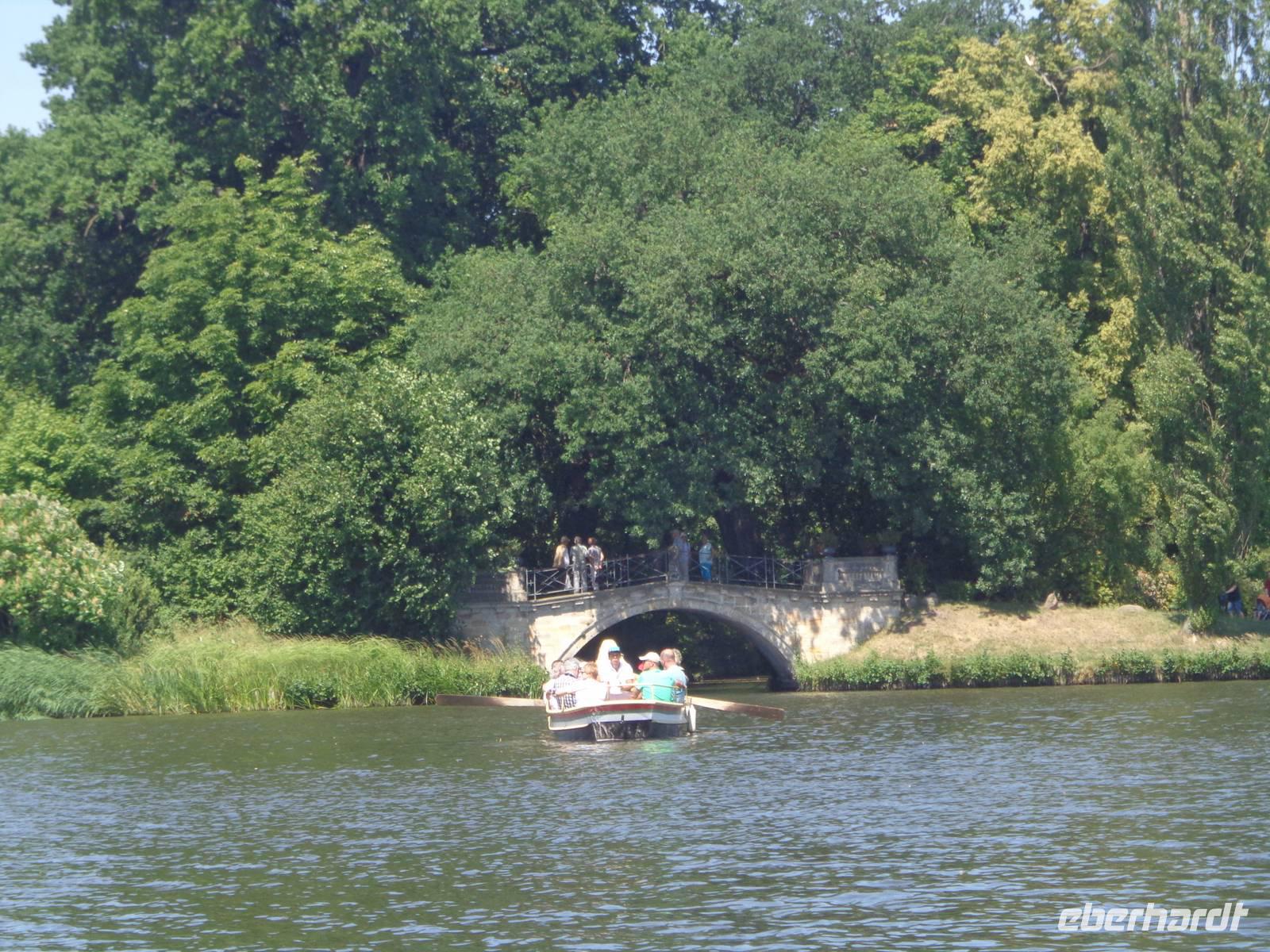Auch zum Abschluss der Rundreise erwartet uns noch ein gartenbauliches Erlebnis, der Wörlitzer Park. Seit dem Jahr 2000 gehört er zur Welterbeliste der UNESCO und ist Teil des Projekts "Gartenträume Sachsen-Anhalt". Wir besichtigten das im 18. Jahrhundert erbaute Schloss und bestaunten schöne Wand- und Deckenmalereien, Gemälde Alter Meister und viele zur damaligen Zeit technische Neuerungen. Nach dem Schloss-Besuch erkundeten wir den Wörlitzer Park während einer Kahnfahrt. Er zählt zu den größten deutschen Landschaftsparks nach englischem Vorbild. Auch hier machte sich der heiße Sommer bemerkbar. Der Wasserstand war sehr gering und einige Passagen konnten nicht befahren werden. Nach diesem schönen Abschluss unsere Reise traten wir die Heimreise an.