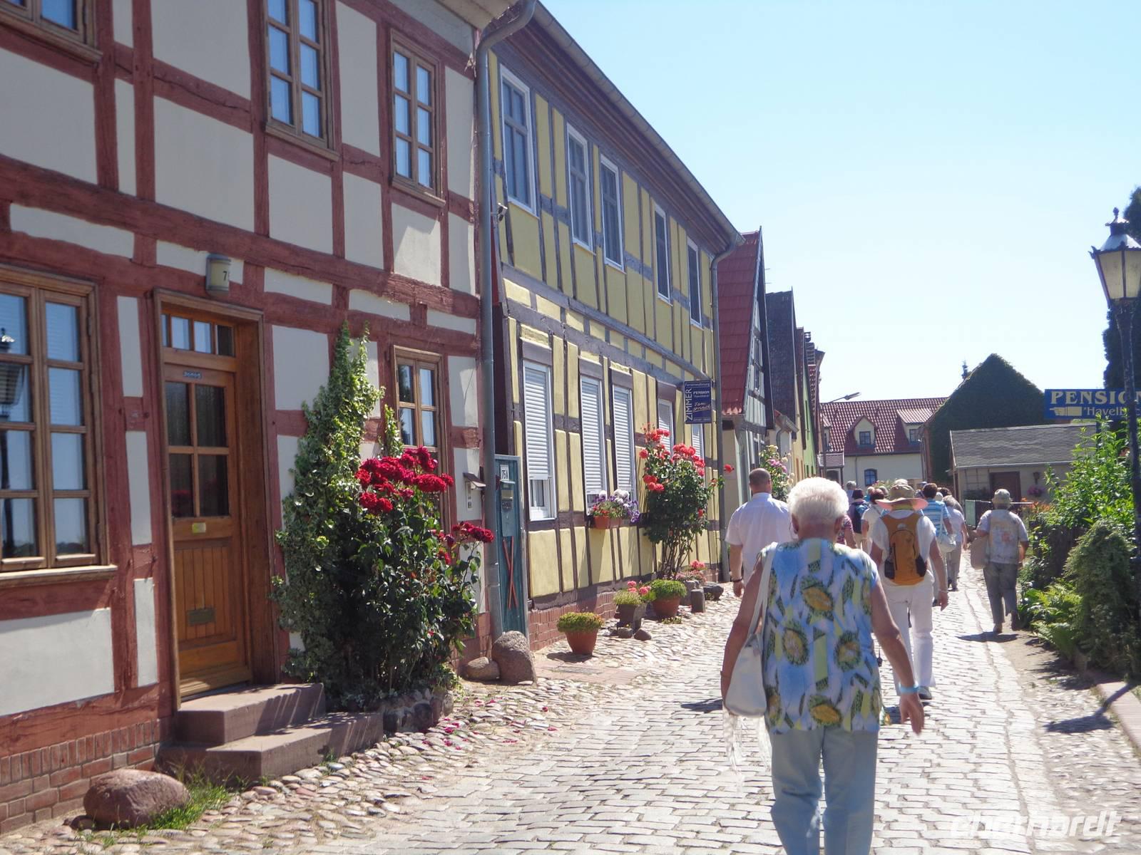 Auch heute lachte wieder die Sonne. Nach einer kurzen Fahrt erreichten wir Havelberg. Auch hier erwartete uns eine interessante Führung. Wir liefen in die Altstadt und besuchten die Blumenschau in der gotischen St. Laurentiuskirche. Es gab 16 Wechselausstellungen und gerade wurde die Orchideenschau präsentiert. Dies war ein besonderes Erlebnis. Nun ging es bergauf zum Domberg. Der Dombezirk wird bestimmt durch den Dom St. Marien aus dem 12. Jahrhundert. Auf diesem BUGA-Areal sahen wir Kletter- und Pfingstrosen, den Mönch- und den Dechaneigarten, einen Weingarten sowie Musterkleingärten. Zurück in Tangermünde hatten wir genügend Zeit die schöne Stadt zu erkunden. Vor dem Abendessen besuchten wir die alte Scheune im Hotel und sahen was die Vergangenheit alles so zu bieten hat. Wir gingen auf eine kleine Reise in die "gute alte Zeit"! Angefangen von kleinen Werkzeugen des Alltags bis hin zu gut erhaltenen Motorrädern findet man hier alles. Besonders aus Uromas Zeiten und aus längst vergangenen DDR-Tagen. Doch nicht nur die Vergangenheit hat uns fasziniert sondern auch die Zukunft. Mit viel Mut und Elan wurde aus alten Gebäuden das Hotel erbaut. Doch dessen nicht genug soll der Name des Hotels wieder Programm werden. Familie Schulze ist gerade dabei eine eigene kleine Brauerei und einen urigen Bierkeller zu bauen. Auch der schöne Gartenbereich mit Blick auf die Elbe soll in nächster Zeit einen eigenen Zugang erhalten und die Gäste anziehen. Das anschließende leckere Grillbuffet ließen wir es uns munden. Doch der Tag war noch nicht zu Ende. Der Nachtwächter(in) von Tangermünde wartete auf uns um seine schöne Stadt zu präsentieren. Ein unterhaltsamer und lustiger Rundgang führte uns entlang der Stadtmauer zur Elbe und durch die Altstadt. Bei einem kühlen Glas Bier ließen wir diesen Tag ausklingen.