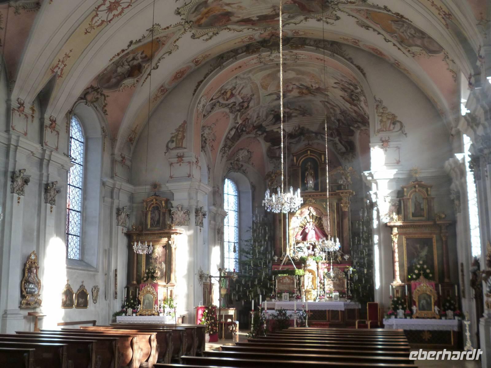 Um 09.30 Uhr Abfahrt nach Rosenheim. Am zur Galerie ausgebauten Alten Lokschuppen warteten die beiden Stadtführerinnen. Als nach etwa einer Stunde die Führung beim Markt angekommen war, erlosch angesichts des belebten Weihnachtsmarktes jedwedes andere Interesse, zumal der Weihnachtsmarkt um 12 Uhr schließen sollte, also lieber Freizeit. Um 12.30 Uhr Rückfahrt zum Hotel, wo um 14.30 Uhr der Wirt mit seinem Bruder ein kleines weihnachtliches Konzert bei Kaffe und Kuchen gaben. Anschließend fuhren wir sofort in die nahe gelegene Heiligblutkirche, wo um 16 Uhr eine Kinderchristmette stattfand. Die Mette, an der um die dreißig Kinder, Musiker und Sänger mitwirkten, war sehr schön. Anschließend trafen sich alle zum Abendessen, wo zunächst der Weihnachtsmann kleine Geschenke brachte.