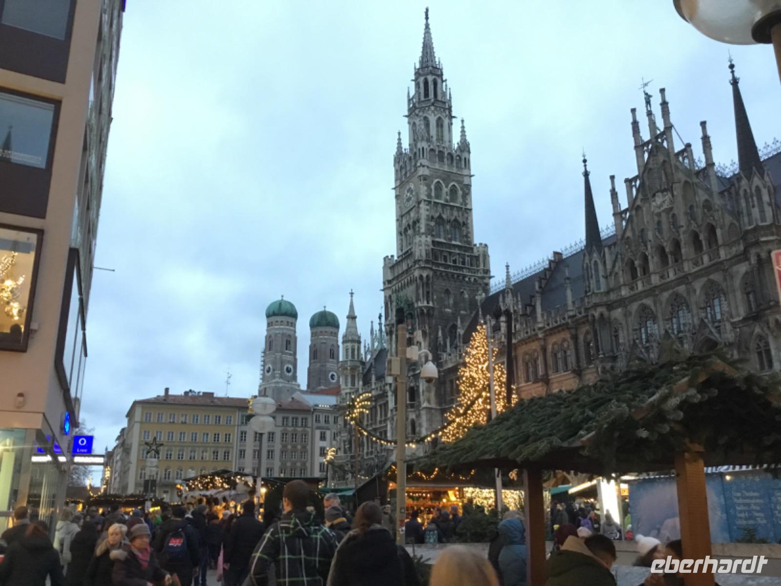 Ohne Stau geht es für uns in Richtung Franken, womit wir schon in dem Bundesland unserer Weihnachtsreise angekommen sind. Vorbei an den Hinweisschildern, die uns auf die große fränkische Bierbraukultur aufmerksam machen, nehmen wir Kurs auf die Landeshauptstadt München. Hier angekommen, wollen wir uns schon ein wenig auf das kommende Fest einstimmen und machen einen kleinen Rundgang zum Marienplatz, wo alljährlich der Weihnachtsmarkt stattfindet. Für uns eine Gelegenheit den Glühwein in Bayern zu probieren.