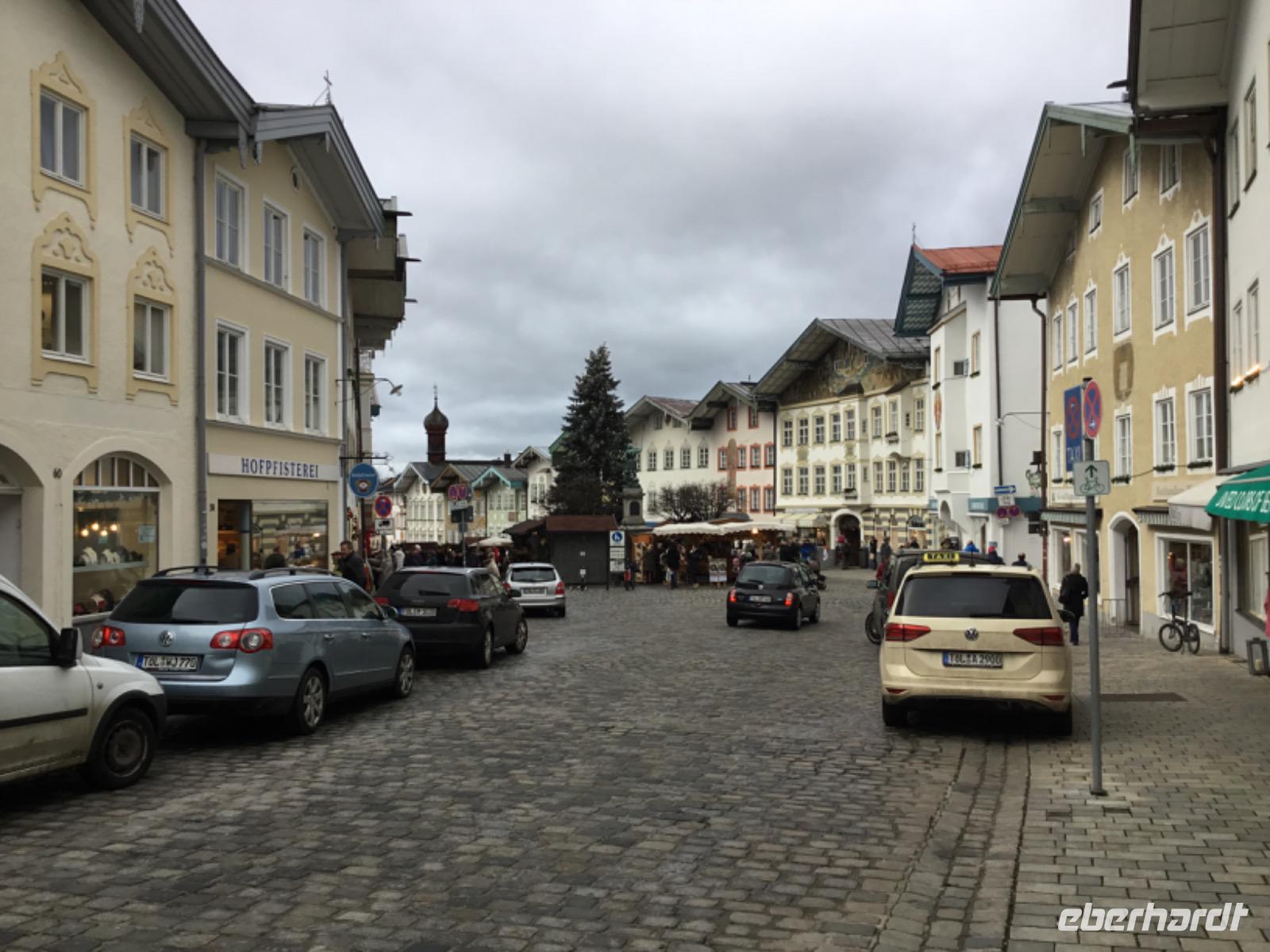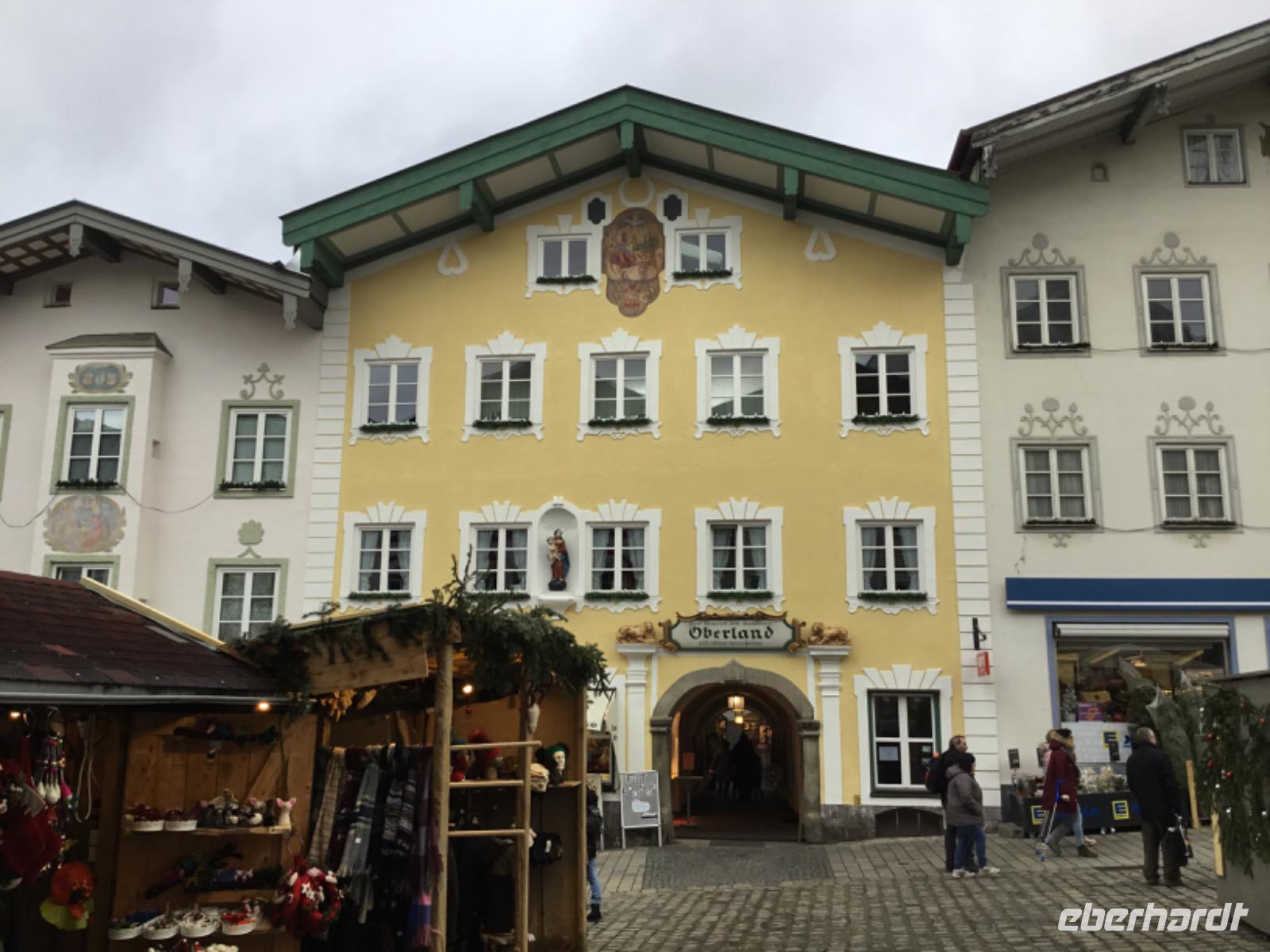 In der Fussgängerzone empfängt uns nicht nur der charmante Weihnachtsmarkt, auch ein Blick auf die Fassaden der restaurierten Häuser lohnt. Schließlich haben hier die Lüftlmaler ihr ganzes Können unter Beweis gestellt. Seit Jahrhunderten verzaubern die Maler mit ihrer Kunst die Häuserwände in den Oberbayerischen Dörfern und Städte und erzählen mit dem Pinsel vom traditionellen, bäuerlichen Leben und geben religiöse Szenen wieder. Leider präsentiert sich Bad Tölz heute nicht im Sonnenlicht, vielmehr schickt uns der Himmel auch ziemlich starken Regen und Wind. Im Bus sitzen wir jedoch trocken und warm. So erreichen wir am späten Nachmittag unser Hotel.