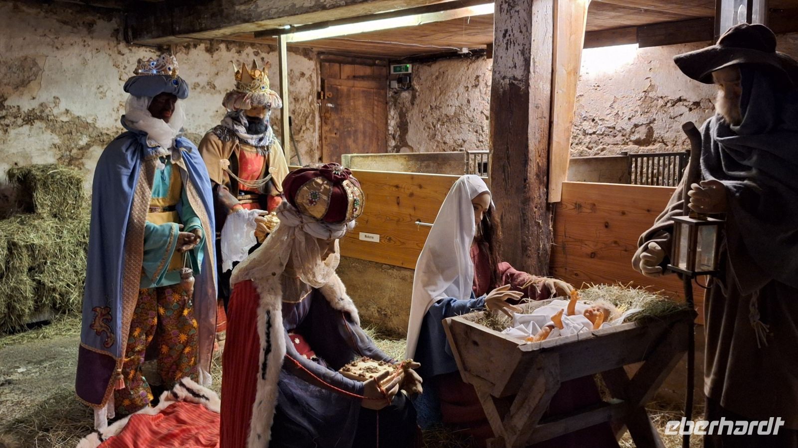 Wir besuchen hier das Heimatmuseum Sixenhof mit seiner alljährlichen Bergweihnacht. Im Stall erleben wir die Erzählung der Weihnachtsgeschichte mit einer lebensgroßen Krippe inklusive eines echten Esels, einer Kuh und Schafen. Diese Tiere waren einst ein Teil der Lebensgrundlage der Hofwirtschaft. Später können wir uns im Heimatmuseum noch ein genaueres Bild über das bäuerliche Leben im Tirol der früheren Tagen verschaffen, doch zunächst gibt es in der gemütlichen Stube eine kleine Jause. Wir bekommen ein leckeres mit Butter bestrichenes Stück Zelten, das typische Früchtebrot, das in Tirol in der Adventszeit gebacken wird, dazu ein heißes Getränk, was unsere kalten Glieder ein wenig aufwärmt.