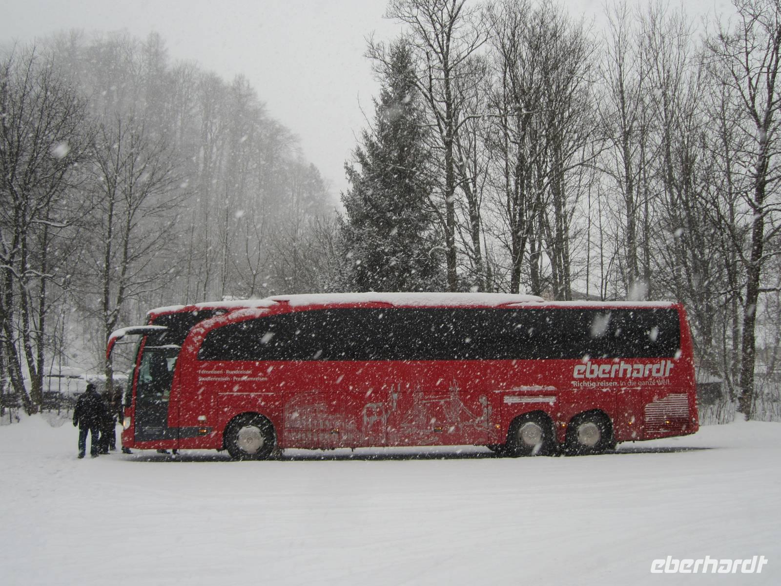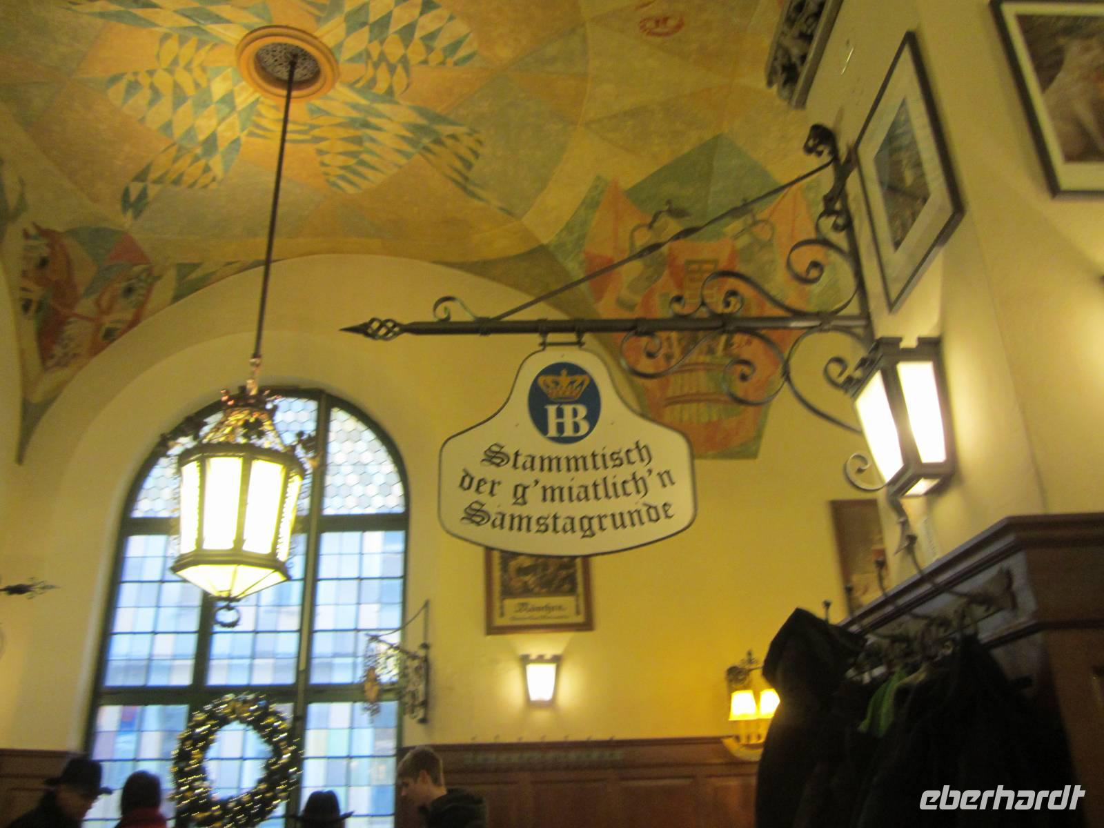 In Dresden Stollberg und in Münchberg nehmen wir noch Gäste auf. Jetzt ist unsere kleine Gruppe mit 19 Personen für die Anreise komplett. Wir fahren entlang der A9 nach München. Seit gestern haben wir endlich Winter. Für unsere Anreise bedeutet es aber, dass wir immer wieder in zäh fließenden Verkehr geraden. Erst später erfahren wir, dass wir weit vor uns die Schneepflüge haben die uns nicht vorwärtskommen lassen, bei den winterlichen Straßenverhältnissen aber notwendig sind. Wir haben heute einen ersten Programmpunkt. Die Stadtbesichtigung von München. Mehrmals müssen wir mit unserem örtlichen Stadtführer eine neue Zeit abstimmen. Wir freuen uns, dass wir Ihnen dann endlich am Isartor stehen sehen. Zuerst etwas bayrisch. Wir sind in Bayern und da heißt es Grüß Gott! Auch für die Sachsen! Wir gehen zu Fuß durch die Stadt und unser erstes Ziel ist das Hofbräuhaus. Auch aus dem Grund, da wir hier erst einmal ein bestimmtes Örtchen aufsuchen, Danach geht es aber durch die Gasträume mit bester Stimmung, vielen Gästen und Musik. Es dauert eine Weile bis unsere kleine Gruppe sich am anderen Ende des Gebäudes wieder zusammenfindet.
