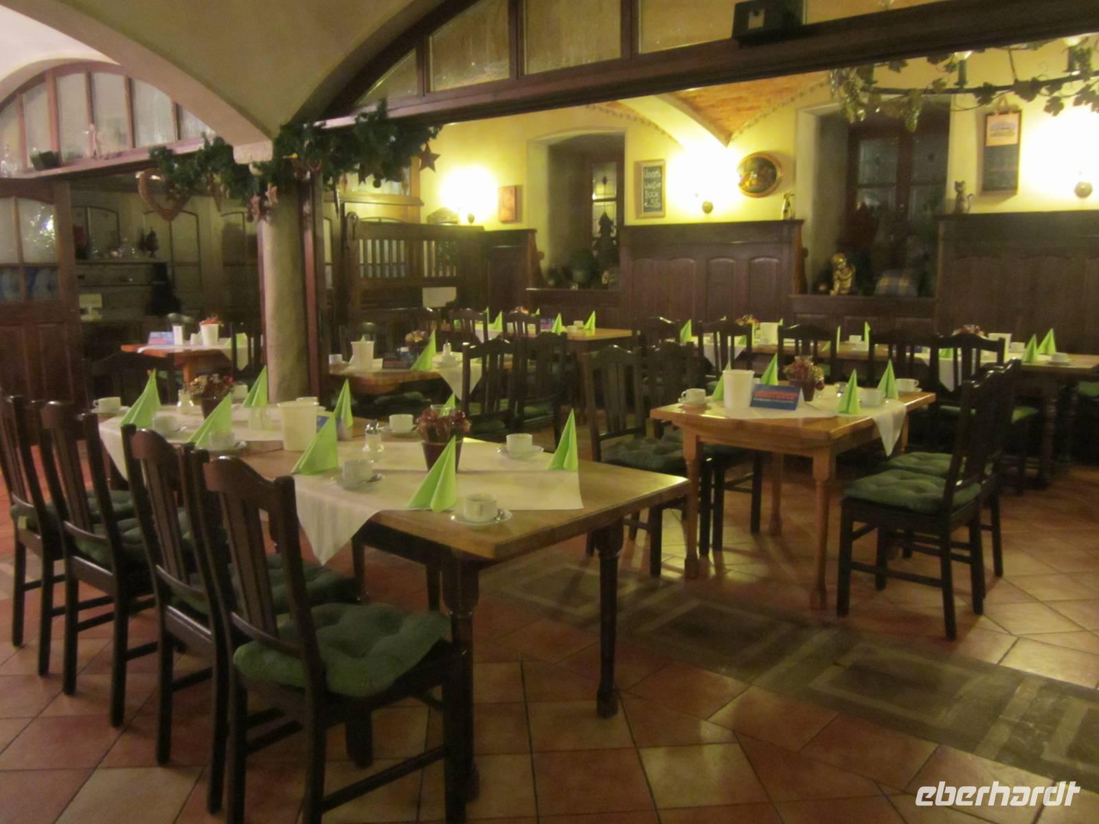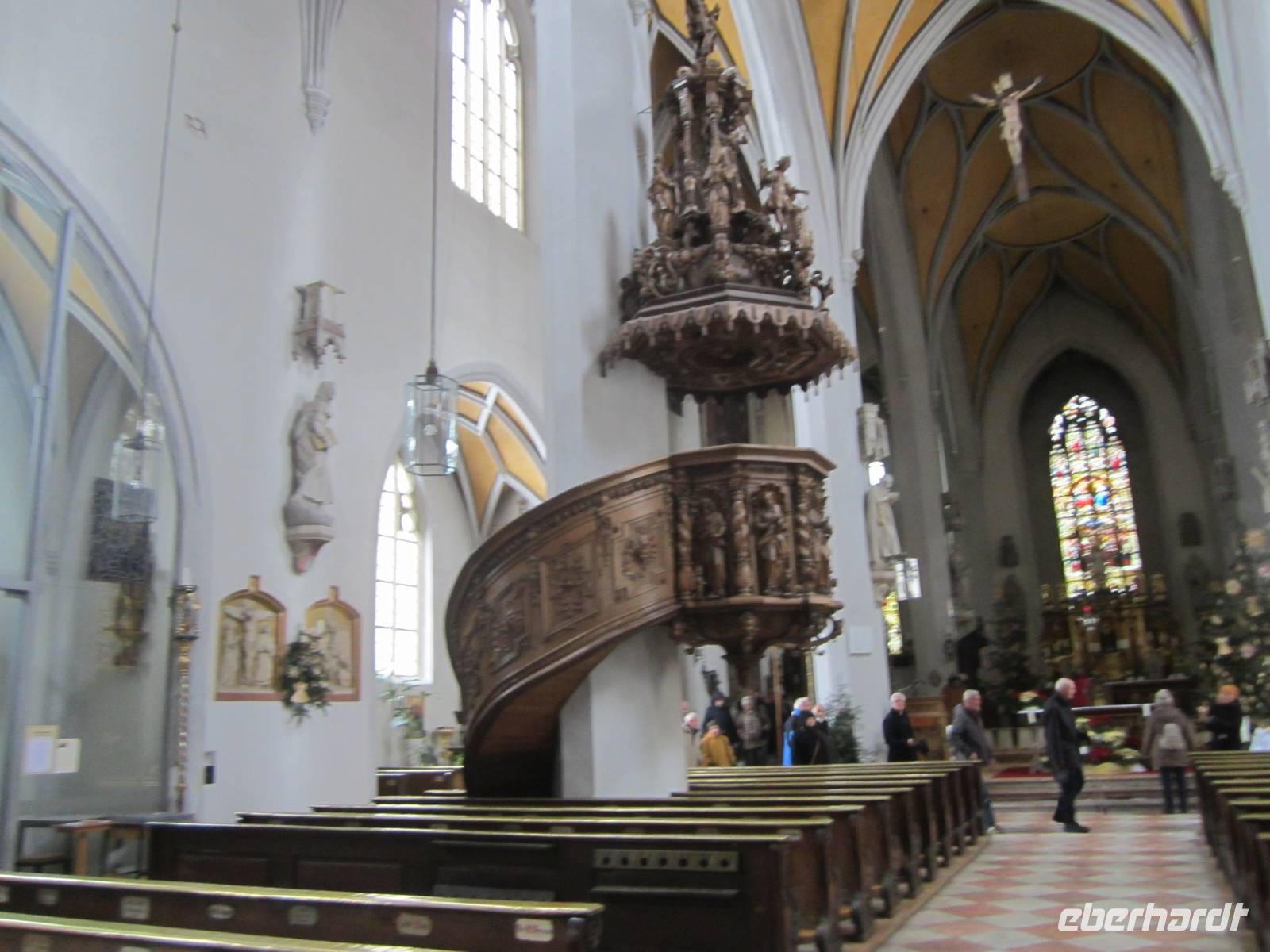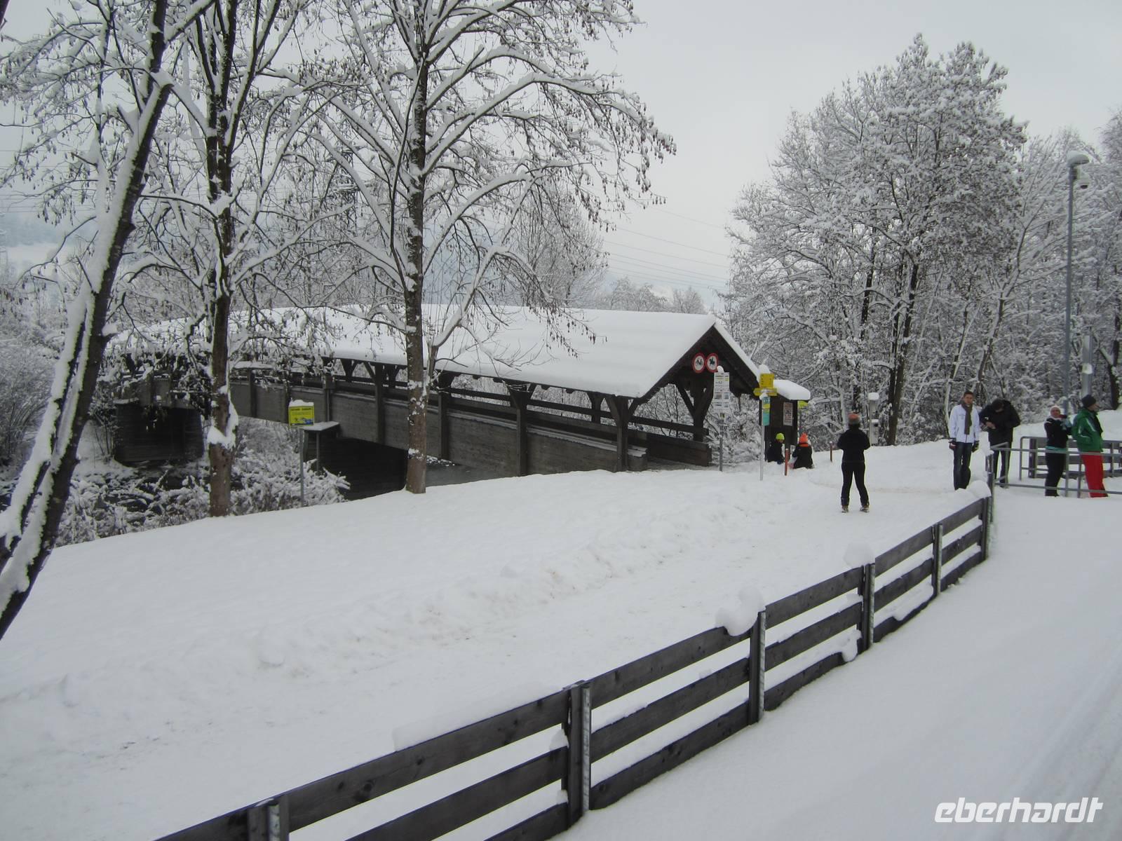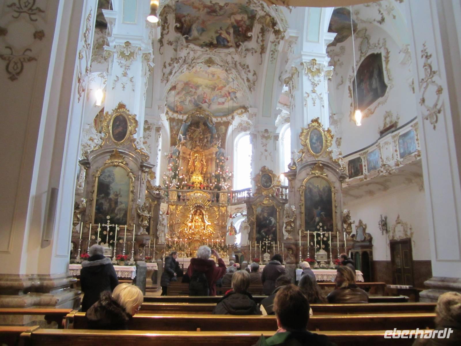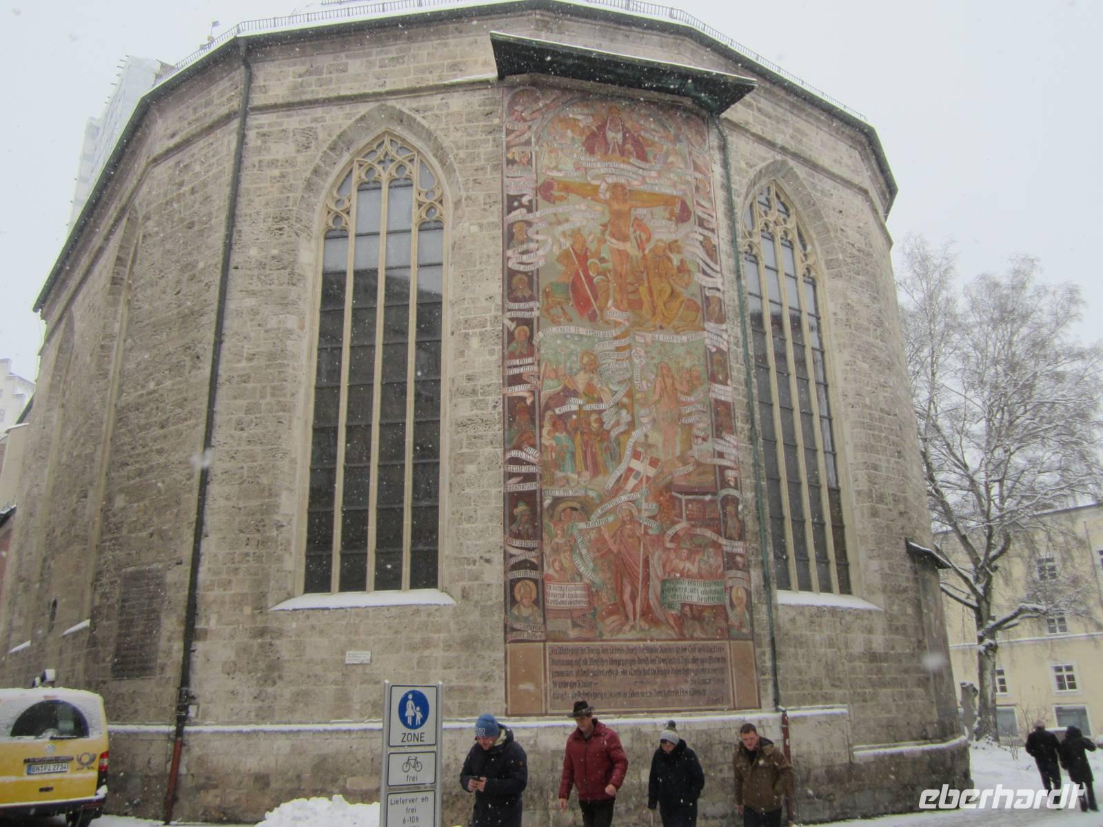 Wasserburg ist heute Vormittag Programm. Unsere Fahrt führt uns rechts vom Inn zur Stadt. Wie eine Schleife legt sich der Fluss um den kleinen spätgotischen Ort. Die Perle am Inn liegt, wie eine kleine Insel vor uns als wir an der Innbrücke ankommen. Einer der schönsten Blicke auf die Stadt, wenn man diese das erste Mal besucht. Wir fahren mit dem Bus über die Brücke und schaffen gerade so die Durchfahrt durch das Brücktor. Wir werden auch heute mit Schnee verwöhnt und somit suchen wir bei der Stadtführung in 2 Gruppen auch immer wieder schützende Orte. Die Stadt war durch die Lage am Inn und der Schifffahrt, der Salzstraße und dadurch, dass sie Handels und Kriegshafen von München war, eine bedeutende Stadt. Wir schauen uns heute die Zeitzeugen in Form von Architektur an und da hat sie viel zu bieten. Nach ca. 1,5 Stunden haben uns die Stadtführer auf angenehme Art ihre Stadt vermittelt. Danach bleibt noch etwas Zeit die Stadt individuell zu erkunden. Gegen 13.00 Uhr treffen wir uns wieder am Bus und wir verlassen auf der schmalen Landzunge die Stadt. So kurz vor Jahresende wollen wir heute noch die