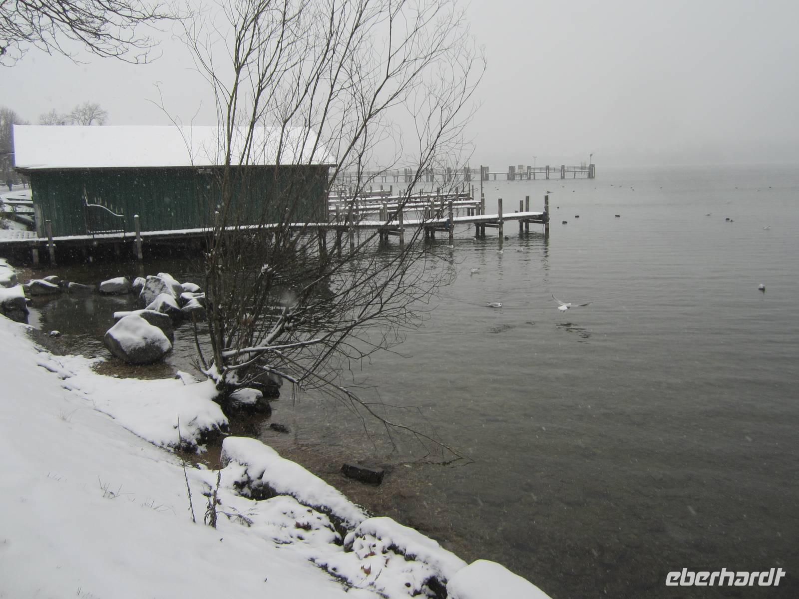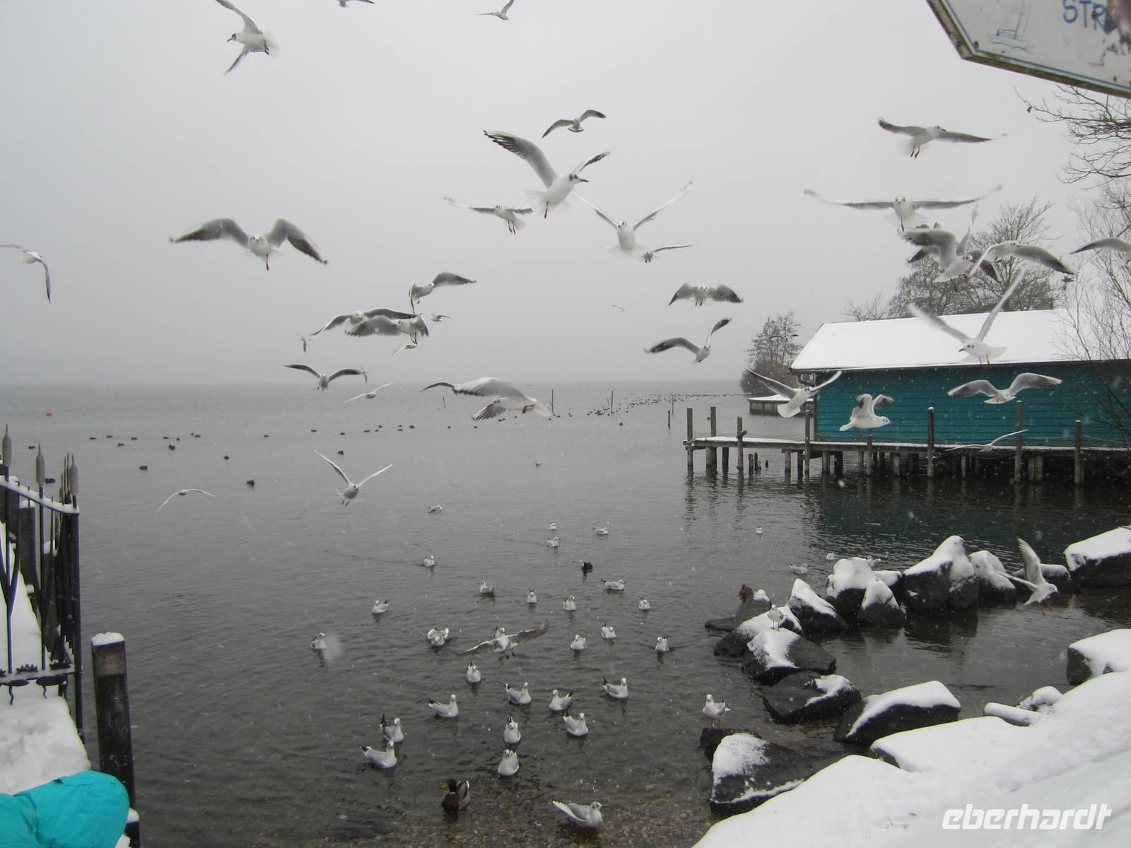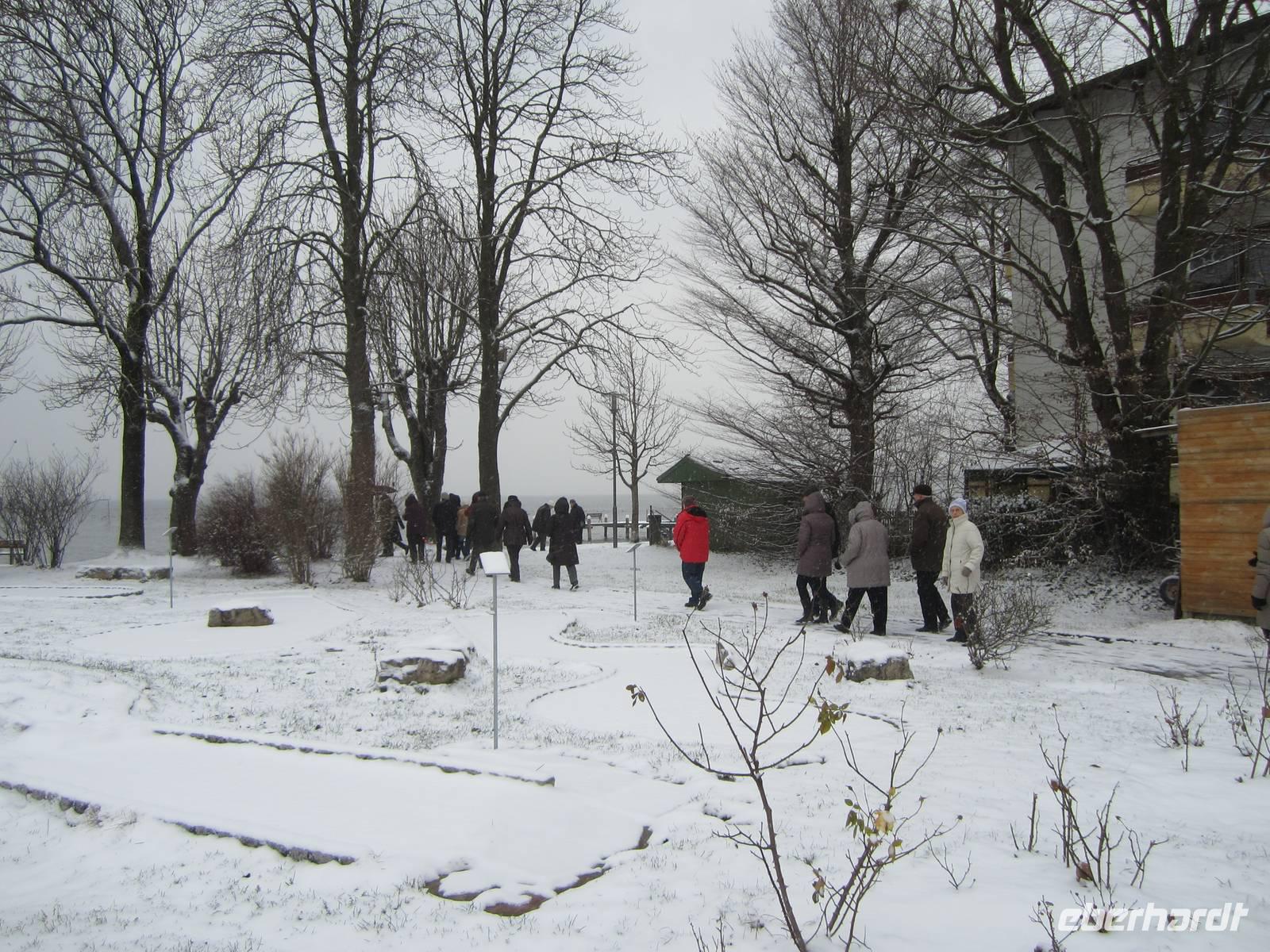 Nach einem Frühstück, das keine Wünsche offen lässt, starten wir unseren heutigen Tag in das Fünfseenland. Wir fahren wieder nach München, queren die Stadt ein Stück, kommen dann nach Starnberg, um danach an den Ammersee zu kommen. Unser erstes Ziel ist das Kloster Andechs. Wir haben bei der Anfahrt einen schönen Blick auf den Heiligen Berg an deren Spitze die Klosterkirche zu erkennen ist. Der Heilige Berg ist der zweitgrößte Wallfahrtsort von Bayern. Viele Touristen zieht der Berg auch an durch das bekannte Bier. Wir lassen uns überraschen. Zuerst führt uns der Weg an der Brauerei, der Klosterbrennerei und der Klostermetzgerei vorbei zur Klosterkirche. Wir haben noch die Weihnachtswoche und somit finden keine Führungen statt. Ein jeder macht sich mit dem Bau vertraut und einige von uns besuchen die Messe. Für 12.00 Uhr haben wir reservierte Plätze im Bräustüberl. Bis dahin haben aber schon viele die Plätze eingenommen und probieren die typischen Speisen, wie z.B. Leberkäs, große Brezel und ein gutes Andechser Bier. Es schneit und schneit. Die Wege auf den Heiligen Berg sind nicht einfach zu begehen. Die großen Pflastersteine machen es uns nicht leicht. Gegen 13.30 fahren wir nach Herrschling und sind jetzt direkt am Ammersee. Ein Spaziergang entlang des Sees ist auch bei winterlichen Bedingungen ein Erlebnis. Um noch etwas von dem anderen See zu sehen, fahren wir nördlich um den Ammersee und haben zuerst einen Blick auf den Pilsener. Den Wörthersee können wir nicht sehen, aber in Weßling haben wir noch einmal einen Blick auf den Weßlinger See, bevor wir nach Starnberg an den Starnberger See fahren. Der Starnberger ist die Badewanne der Münchner und deshalb nehmen wir uns etwas Zeit, auch hier am See zu flanieren. Danach starten wir unsere Rückfahrt und fahren entlang der Ostseite des Sternbergersees nach Berg (Unglücksstelle von Ludwig II) und weiter über Wolfratshausen entlang der Landstraße mit herrlichen Blicken in die verschneide Landschaft nach Rosenheim.