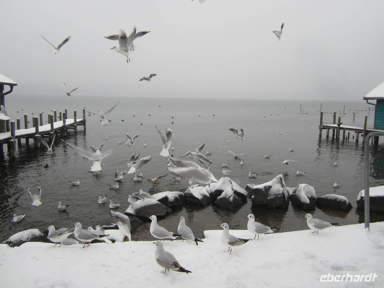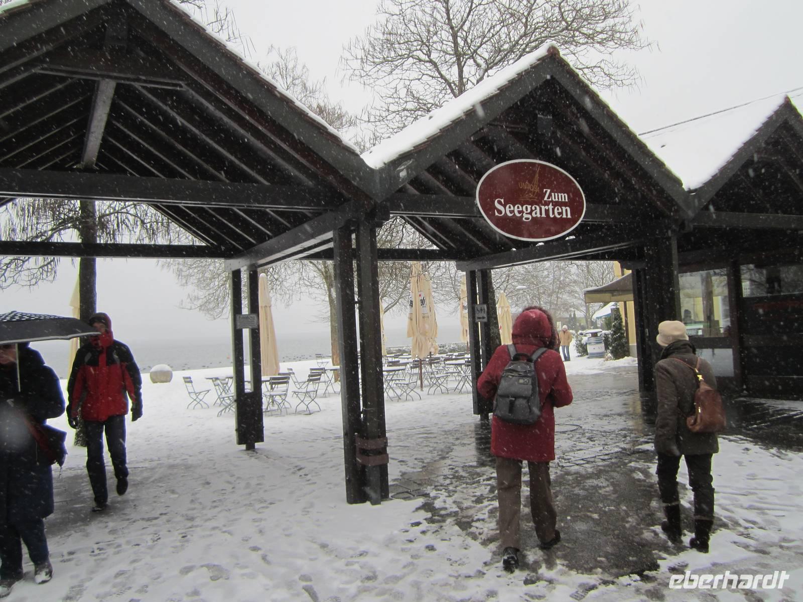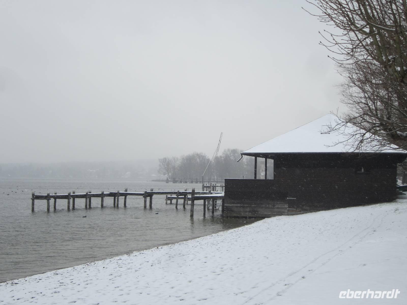 Nach einem Frühstück, das keine Wünsche offen lässt, starten wir unseren heutigen Tag in das Fünfseenland. Wir fahren wieder nach München, queren die Stadt ein Stück, kommen dann nach Starnberg, um danach an den Ammersee zu kommen. Unser erstes Ziel ist das Kloster Andechs. Wir haben bei der Anfahrt einen schönen Blick auf den Heiligen Berg an deren Spitze die Klosterkirche zu erkennen ist. Der Heilige Berg ist der zweitgrößte Wallfahrtsort von Bayern. Viele Touristen zieht der Berg auch an durch das bekannte Bier. Wir lassen uns überraschen. Zuerst führt uns der Weg an der Brauerei, der Klosterbrennerei und der Klostermetzgerei vorbei zur Klosterkirche. Wir haben noch die Weihnachtswoche und somit finden keine Führungen statt. Ein jeder macht sich mit dem Bau vertraut und einige von uns besuchen die Messe. Für 12.00 Uhr haben wir reservierte Plätze im Bräustüberl. Bis dahin haben aber schon viele die Plätze eingenommen und probieren die typischen Speisen, wie z.B. Leberkäs, große Brezel und ein gutes Andechser Bier. Es schneit und schneit. Die Wege auf den Heiligen Berg sind nicht einfach zu begehen. Die großen Pflastersteine machen es uns nicht leicht. Gegen 13.30 fahren wir nach Herrschling und sind jetzt direkt am Ammersee. Ein Spaziergang entlang des Sees ist auch bei winterlichen Bedingungen ein Erlebnis. Um noch etwas von dem anderen See zu sehen, fahren wir nördlich um den Ammersee und haben zuerst einen Blick auf den Pilsener. Den Wörthersee können wir nicht sehen, aber in Weßling haben wir noch einmal einen Blick auf den Weßlinger See, bevor wir nach Starnberg an den Starnberger See fahren. Der Starnberger ist die Badewanne der Münchner und deshalb nehmen wir uns etwas Zeit, auch hier am See zu flanieren. Danach starten wir unsere Rückfahrt und fahren entlang der Ostseite des Sternbergersees nach Berg (Unglücksstelle von Ludwig II) und weiter über Wolfratshausen entlang der Landstraße mit herrlichen Blicken in die verschneide Landschaft nach Rosenheim.