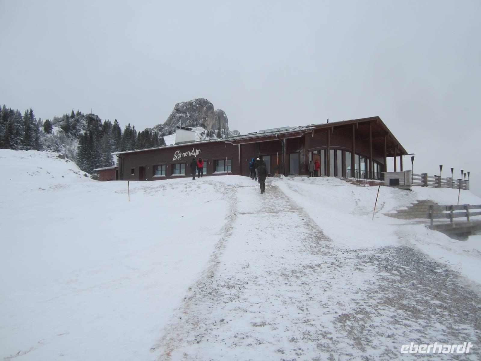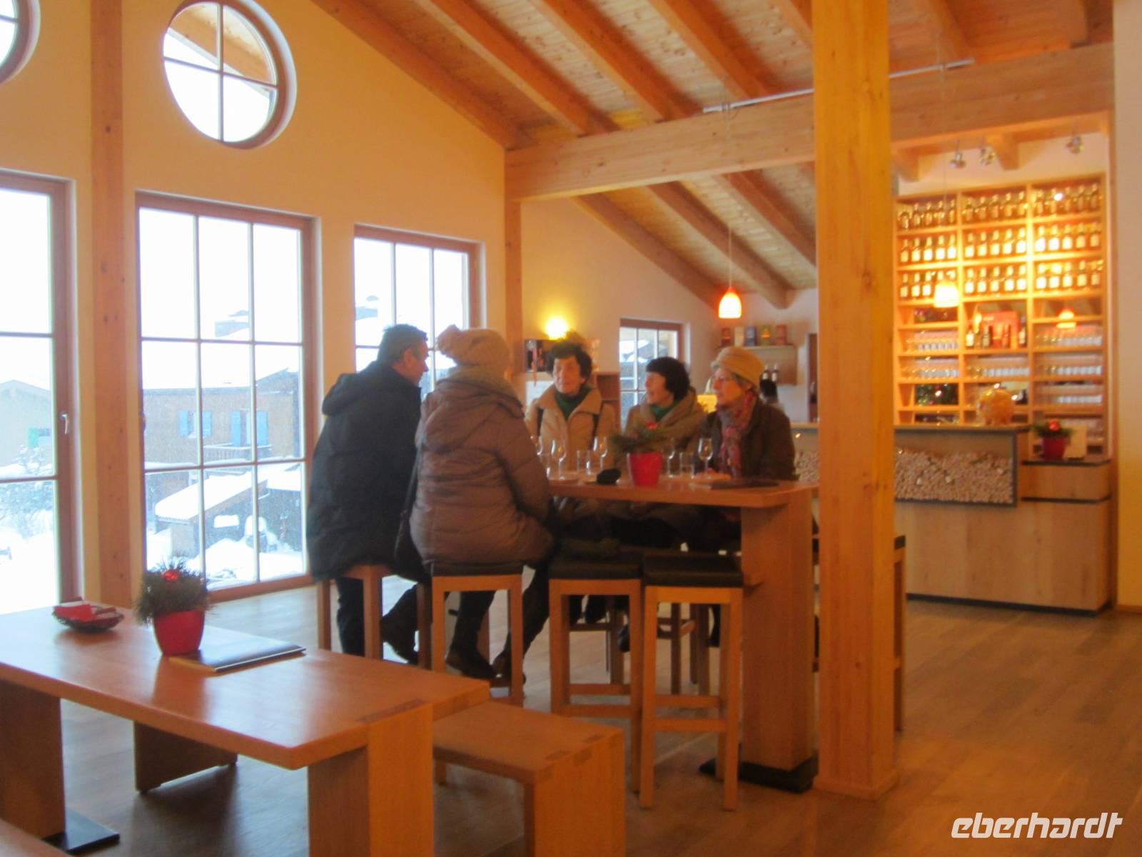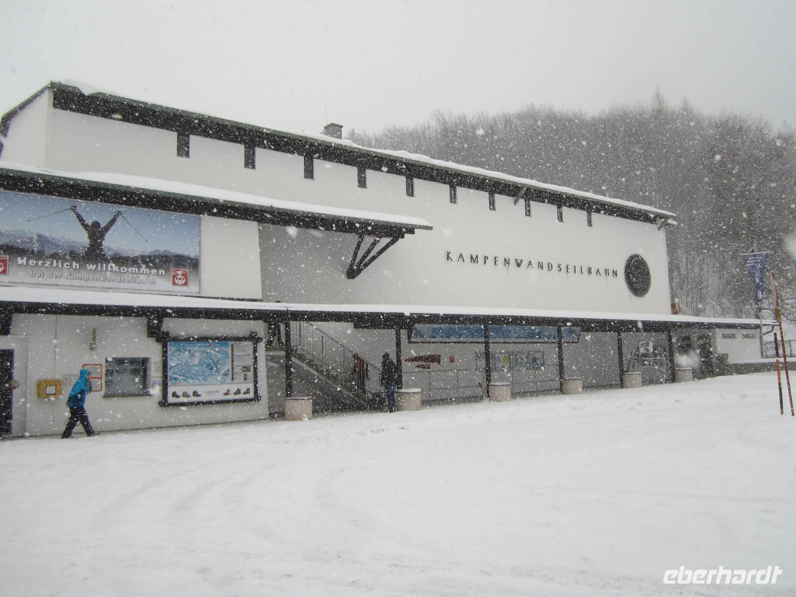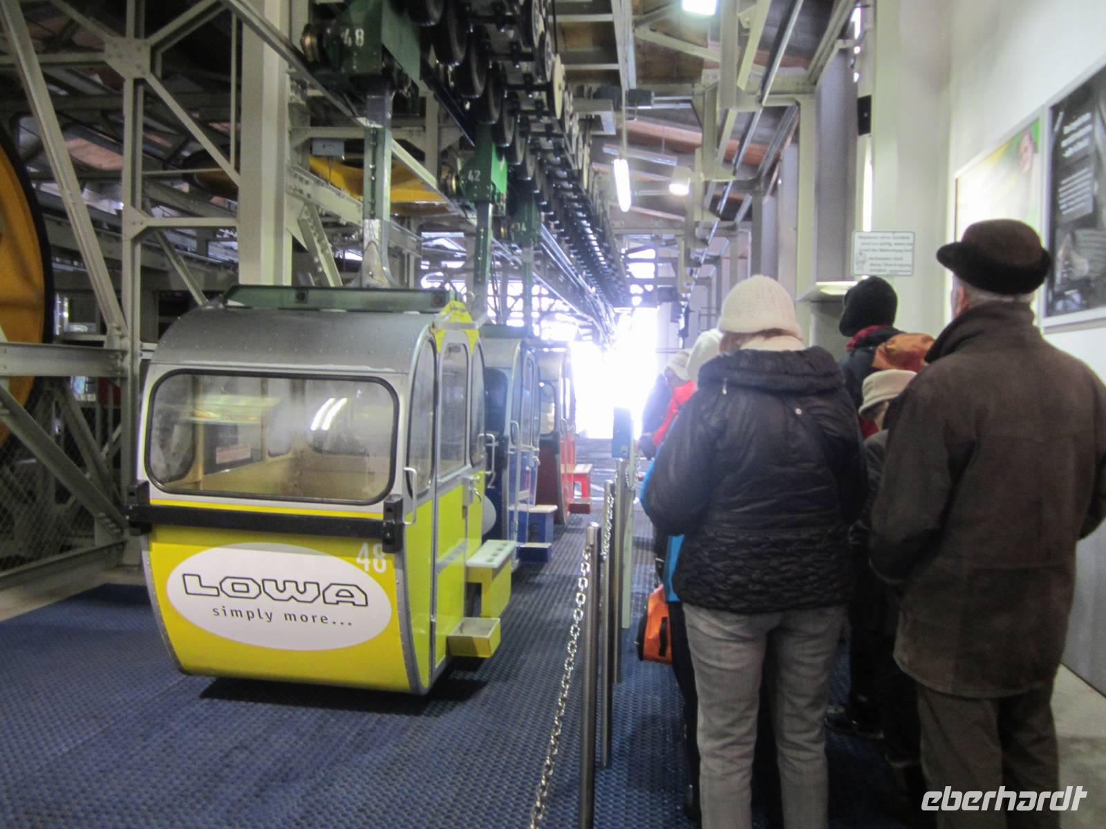 Wir wollen heute hoch hinaus. Wird das Wetter mitspielen? Mein erster Blick gilt der Webcam der Kampenwand, minus 14 Grad werden angezeigt. Trotz starken Schneefall gibt es zurzeit keine Einschränkung. Also dann mal los. Unser Ziel ist Aschau, nicht weit von Rosenheim entfernt. Wir fahren eine halbe Stunde und sind schon im Priental mit schöner Sicht auf die Kampenwand. An dieser Stelle noch einmal unser Schüttelreim, um bairisch zu lernen. "Ich ganget gern auf d' Kampenwand, wann i mit meiner Wamp'n kannt." (Ich ginge gerne auf die Kampenwand, wenn ich mit meinem dicken Bauch es könnte.) Auf der Fahrt zum Parkplatz der Bergstation haben wir schöne Blicke auf das Schloss Hohenaschau. Sein Ursprung geht in das 12. Jahrhundert zurück und ist heute Erholungsheim für Bundesangestellte. Nachdem jeder seine Fahrkarte in der Hand hat, geht es hinauf zu einem der beliebtesten Ausflugsberge der Bayern. In 4-er Gondeln dauert die Fahrt 14 min bis in Höhe von 1470 m und wir haben sie die vielgepriesene Sicht auf den Chiemsee und Umgebung. Oben angekommen führt uns der Weg in die SonnenAlm. Der Wind treibt uns mächtig an. In sicherer Umgebung angekommen (keine 5 min) haben wir gute Sicht auf die Berge. Gegen 12.30 Uhr beginnen wir mit der Rückfahrt. Der Wind hat sich verstärkt (37 km/h) und wir sind alle froh wieder im Bus zu sitzen. Der Gipfelschluck wird hier nachgeholt.