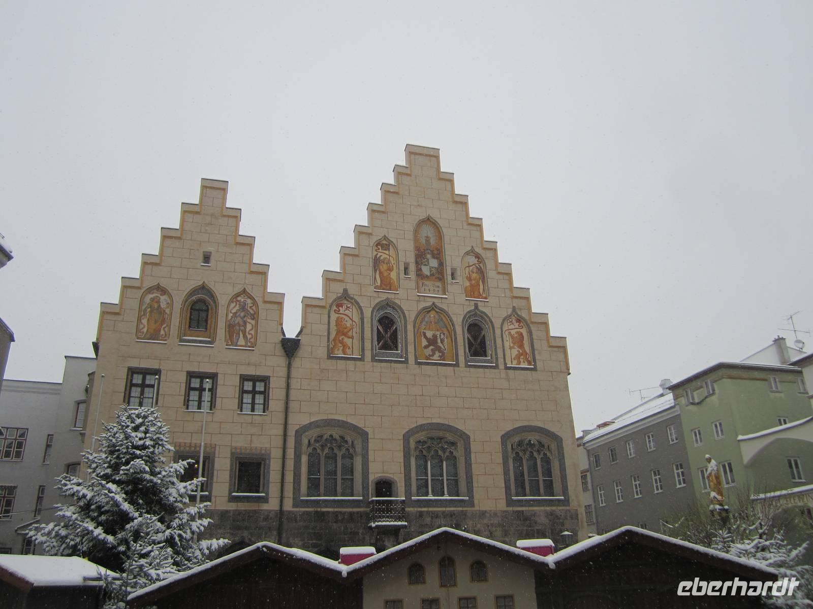 Für die Gäste, die erst am 27.12. angereist sind, nutzten wir die Zeit heute Nachmittag. Roy fährt uns bis zum Ausstellungszentrum Lokschuppen, danach spazieren wir zum Kultur-und Kongresszentrum. Erinnert werden wir in der Stadt auch an die Serie Rosenheim Corps und einige von uns finden auch Drehorte wieder. Unseren Rundgang setzten wir fort und spazieren in die "Gute Stube der Stadt", dem Max-Josefs-Platz , der umgeben ist von prächtigen Bürgerhäusern. Weiter geht es zum Ludwigplatz und mit einem kurzen Besuch der Pfarrkirche St.Nikolaus beenden wir den Rundgang. In der Nähe des Rathauses treffen wir uns dann wieder am Bus.