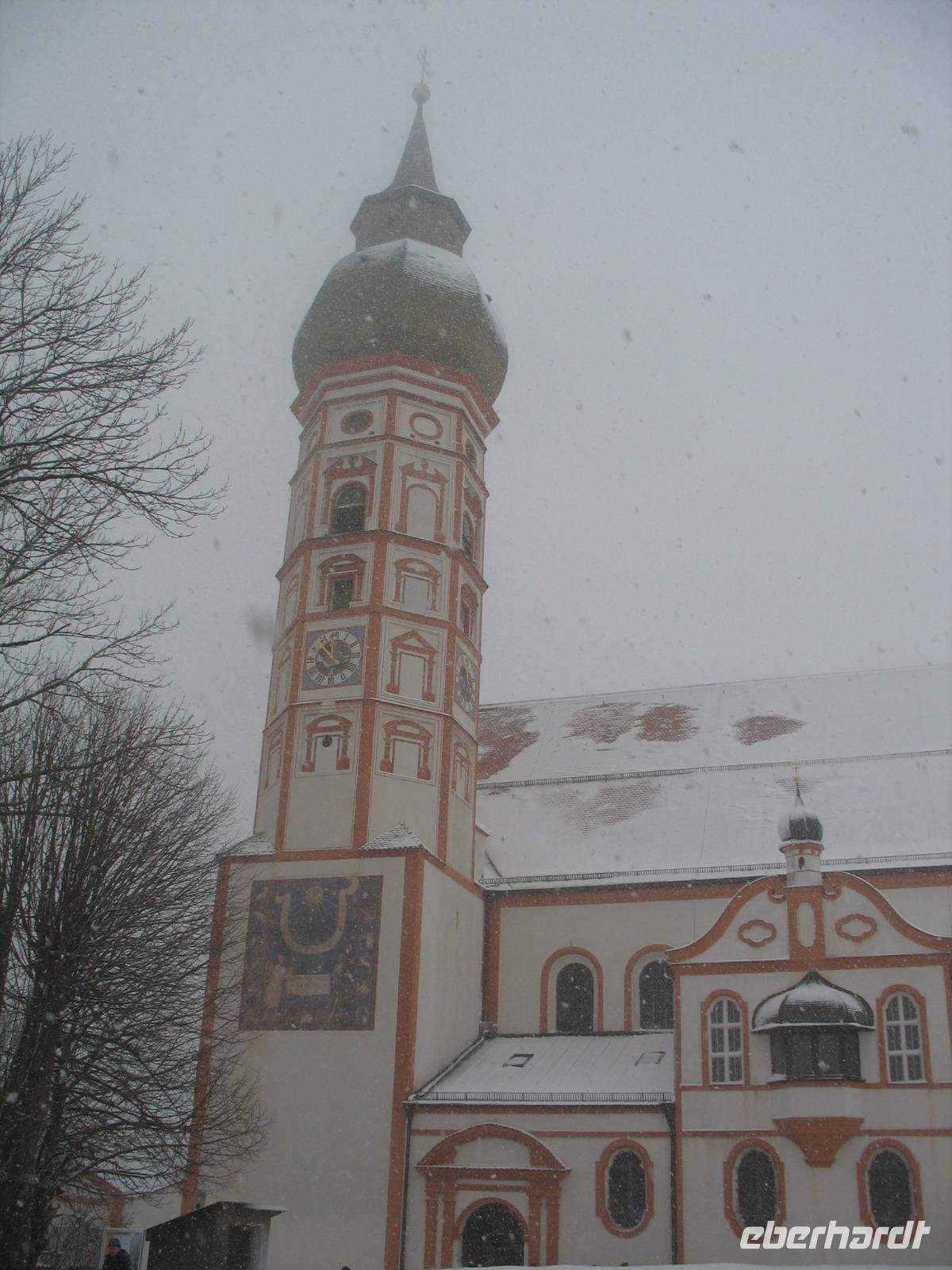An diesem Tag stand das Fünfseenland auf dem Programm. Wir fuhren zunächst zum Kloster Andechs. Es schneite ohne Pause. Wir fuhren durch verschneite Wälder und Wiesen.