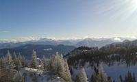 Die Auffahrt erforderte ein bisschen Geduld, da viele Skifahrer ebenfalls zur Kampenwand hinauf fahren wollten. Oben bot sich ein überwältigender Ausblick auf das Mangfallgebirge, das Kaisergebirge und die Chiemgauer Alpen. Wir aßen in der schön renovierten Sonnenalm zu Mittag und genossen die Sicht durch die großen Panoramafenster.