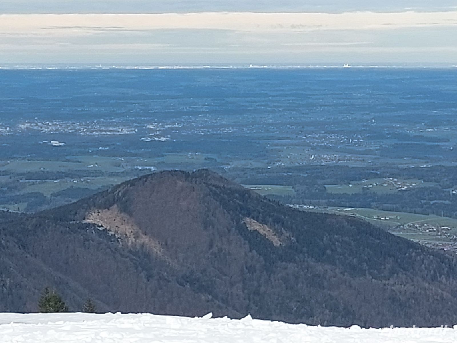 Heute ging es nach einer kurzen Anfahrt über Aschau im Chiemgau, vorbei am Schloss Hohenaschau, zur Talstation der 1957 erbauten Kampenwand Bahn. Diese 4-er Kabinenbahn brachte uns zur Bergstation in 1461m Höhe. Durch den Schnee stapfend hatten wir bei 2°C und Windstille einen fantastischen, ca. 100km weit reichenden Rundumblick. Am Horizont waren die Stadt München, mit der Frauenkirche, das AKW Isar 1 bei Landshut, der Bayrische Wald, die Berchtesgadener Alpen mit dem „Watzmann mit seinen 7 Kindern“, die Hohen Tauern mit dem höchsten Berg Österreichs, dem Großglockner (3798m) und dem Großvenediger (3666m) und, nicht zuletzt, der Zahmen und der Wilden Kaiser im Kaisergebirge zu sehen. Ob bei einem Spaziergang entlang des Kampenwand- Panoramaweges, oder bei einer Rast auf der Terrasse der Sonnen Alm haben alle die phantastische Aussicht genossen.