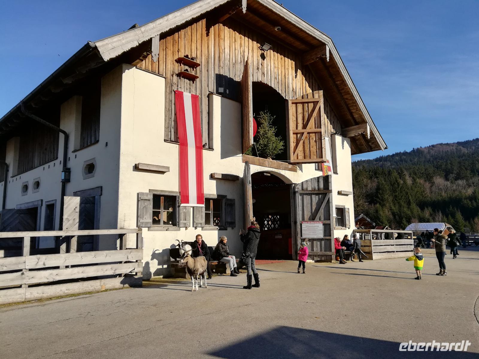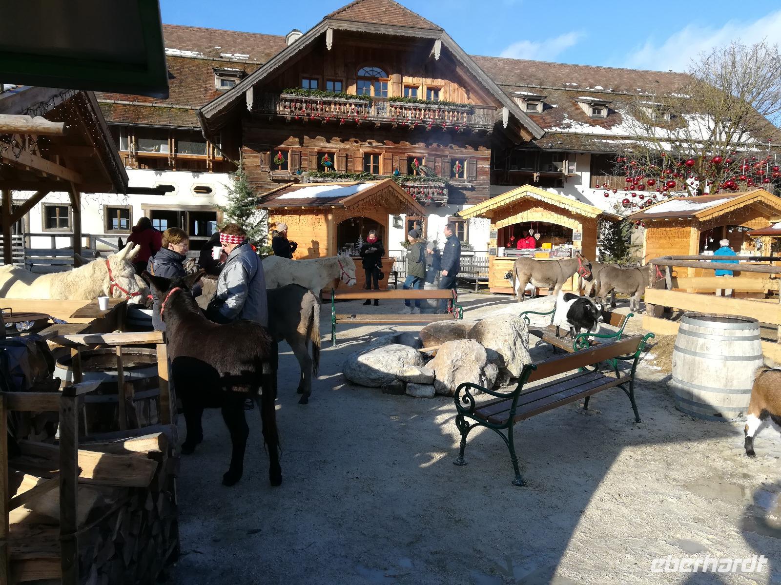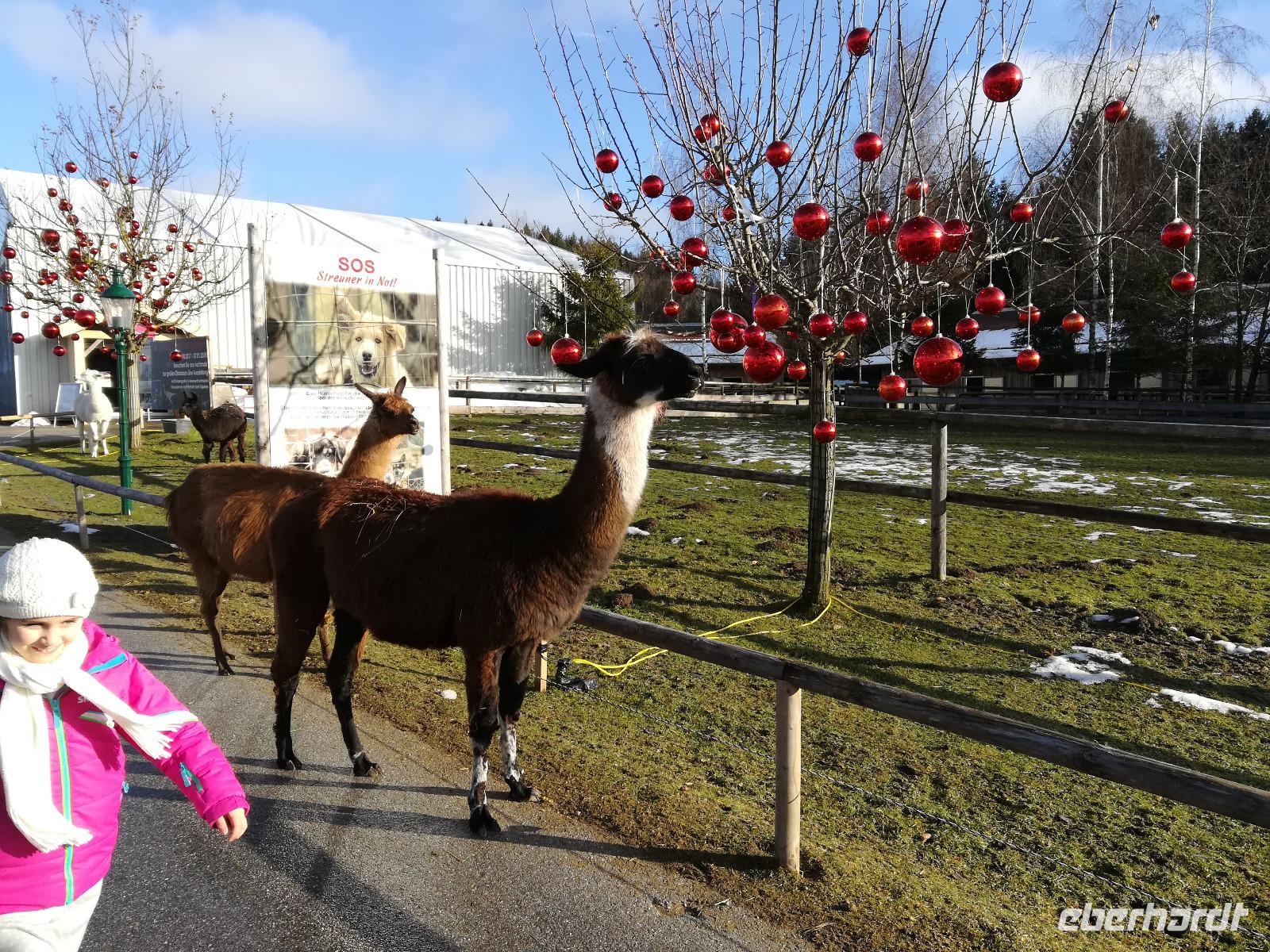 Der angedachte Besuch des Weihnachtsmarktes in Traunstein findet nicht statt, weil man dort kurzfristig beschlossen hat, denselben bereits am 23.12. zu schließen. Also fahren wir zu einem Ort, wo noch ganz viel weihnachtliche Stimmung herrscht, ins Salzburger Land nach Henndorf zum Gut Aiderbichl.