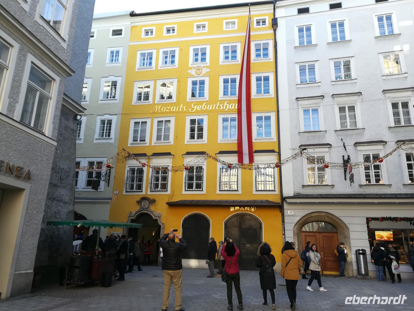 Ein Stadtführer holt uns am Bus ab und führt uns über die Salzach-Staatsbrücke zum Weihnachtsmarkt auf dem Residenzplatz. Danach Besuch im Dom und weiter führt uns der Stadtführer zu berühmten Plätzen Salzburgs bis wir vor dem Geburtshaus Wolfgang Amadeus Mozarts in der Getreidegasse stehen. Ab hier ist nun Zeit zur freien Verfügung angesagt und unsere Gäste steuern eines der zahlreichen Cafés an oder begeben sich zum Weihnachtsmarkt auf einen Glühwein oder essen auch eine Kleinigkeit an einem der vielen Verkaufsstände.