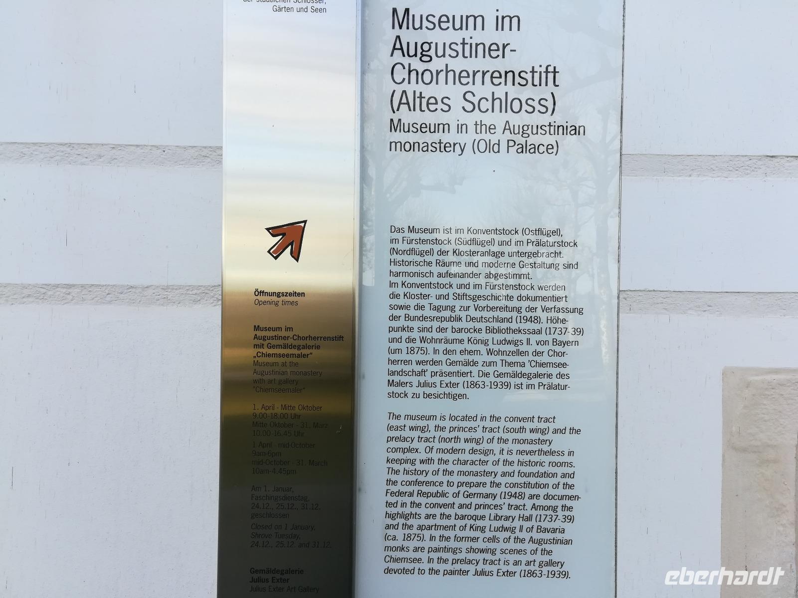 Die Anlegestelle der Chiemseeschifffahrt liegt quasi vor unserer Haustür und somit laufen wir von unserem Hotel "Luitpold" aus zum Schiff, um mit diesem zur Insel Herrenchiemsee überzusetzen. Hier haben wir einen schönen Spaziergang von ca. 20 Minuten vor uns und dann ist das Schloß Herrenchiemsee erreicht, wo wir eine wunderbare Führung erleben. Das letzte von König Ludwig II. erbaute Schloß seiner drei berühmten Königsschlösser, für das er sich das Schloß Versailles zum großen Vorbild genommen hatte, ist an Prunk und Pracht kaum zu überbieten. Wir erfahren zum Beispiel, daß 5000 Kerzen zur gleichen Zeit angezündet werden mußten, wenn der König, immer nur allein, einen seiner seltenen Besuche dem Schloß abstattete. Da nimmt es nicht Wunder, dass nur ein Flügel des Schlosses fertiggestellt worden war und danach die finanziellen Mittel ausgeschöpft waren.
