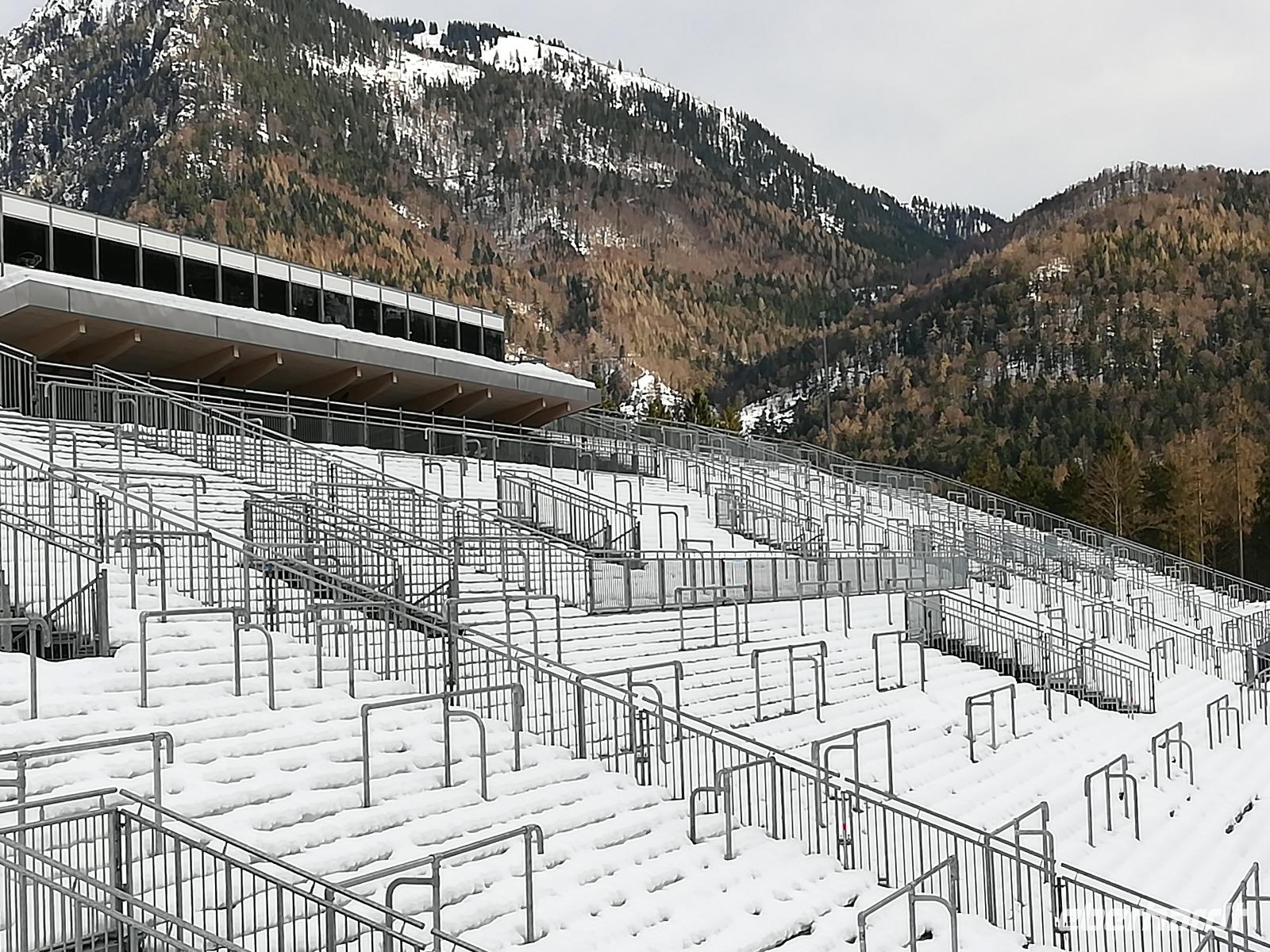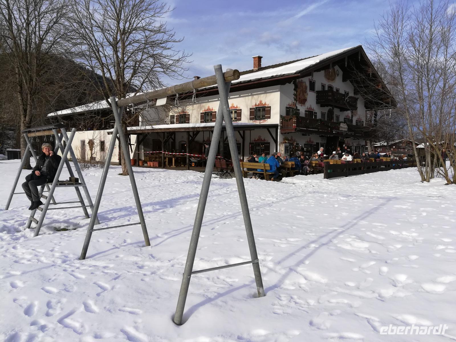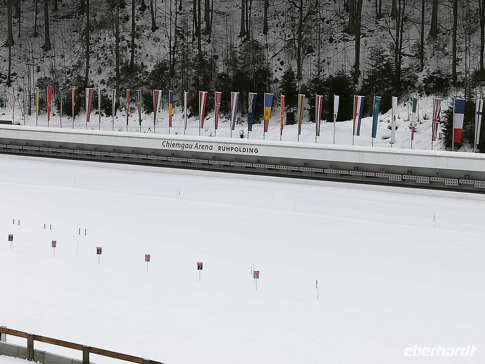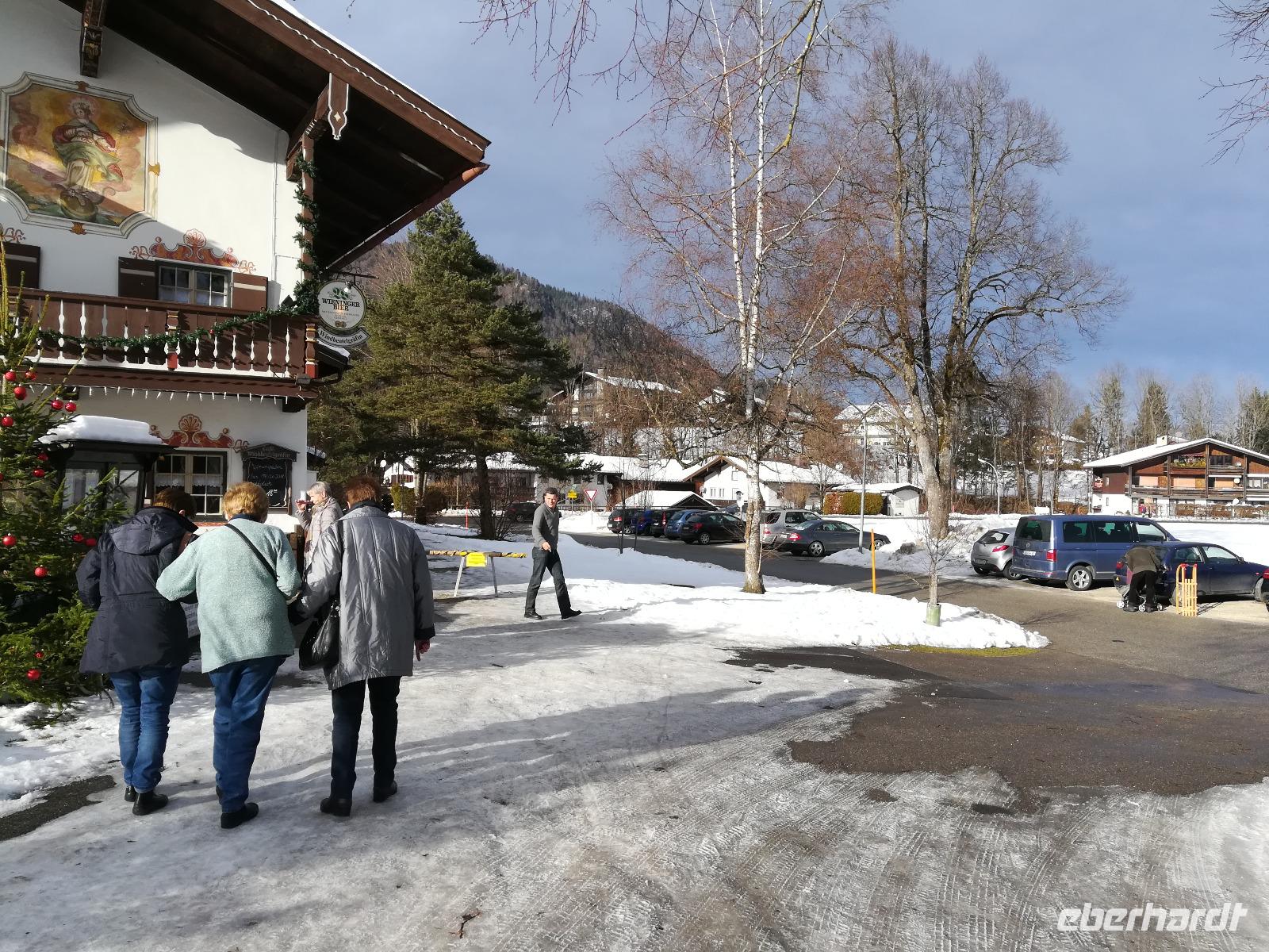 hohen Bergspitzen, schneebedeckt, vorbei am Walchsee, über Kössen, durch Reit im Winkel hindurch nach Ruhpolding. Erstes Ziel war das berühmte Biathlonstadion mit den Zuschauertribünen, den Schießanlagen und den Loipen. Mancher unserer Gäste hatte die Chiemgauarena schon mehrfach bei Wettkämpfen im Fernsehen erlebt, nun aber konnte man mal die gesamten Anlagen in natura betrachten.
