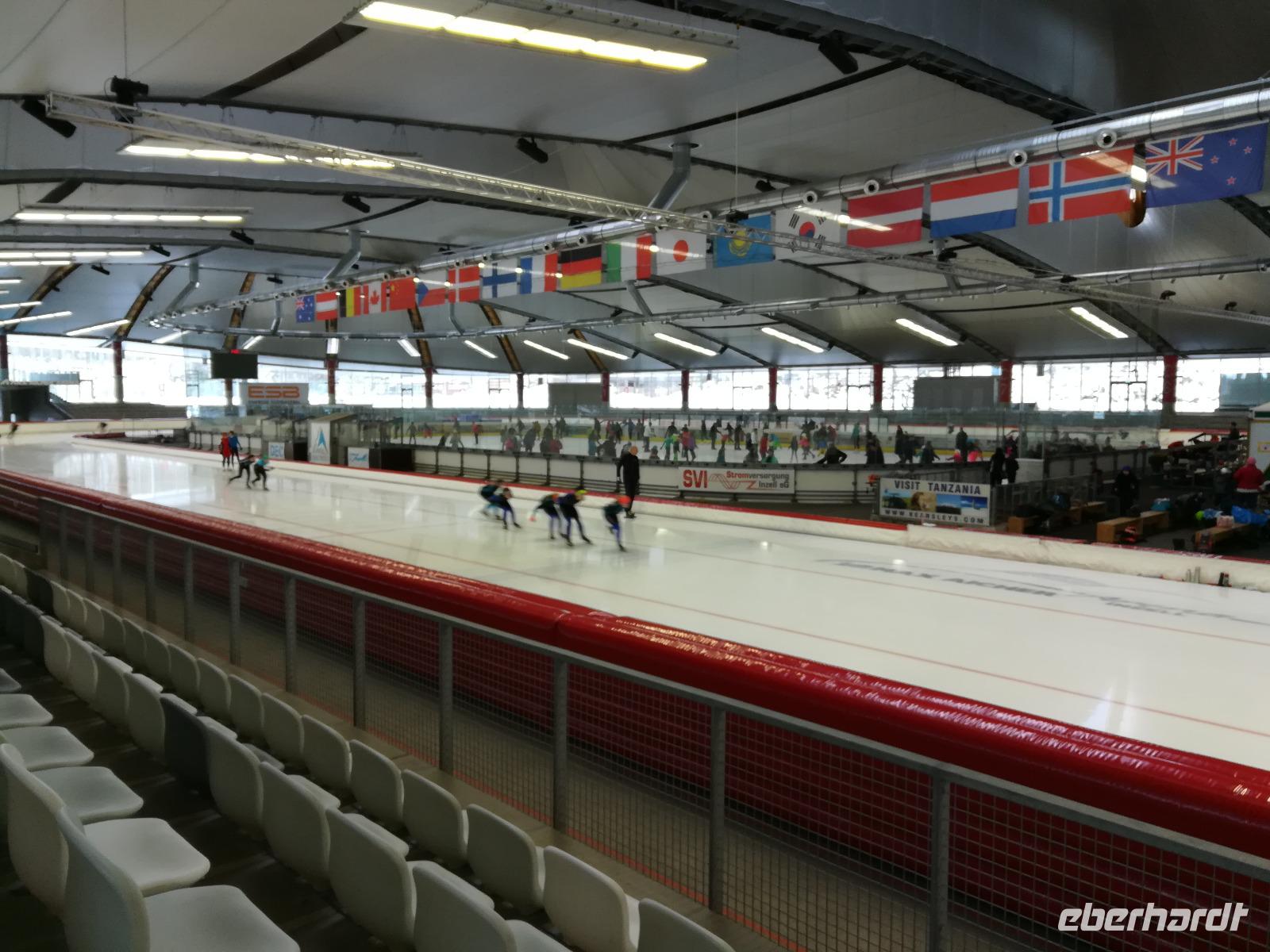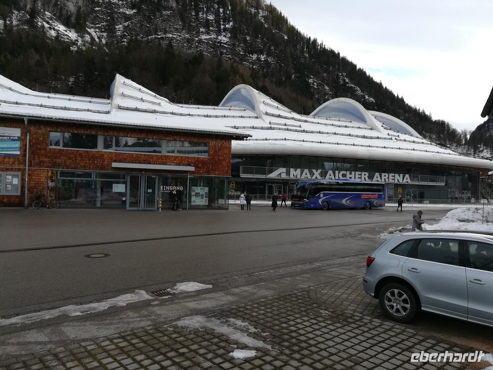 Weiter geht es auf unserer Chiemseerundfahrt nach Inzell. Hier treten wir ein in die Eisschnelllaufarena, in der schon Weltmeisterschaften stattgefunden haben. Eine futuristisch anmutende Hall, wo aktuell trainiert wird für die anstehenden Olympischen Spiele in Südkorea.