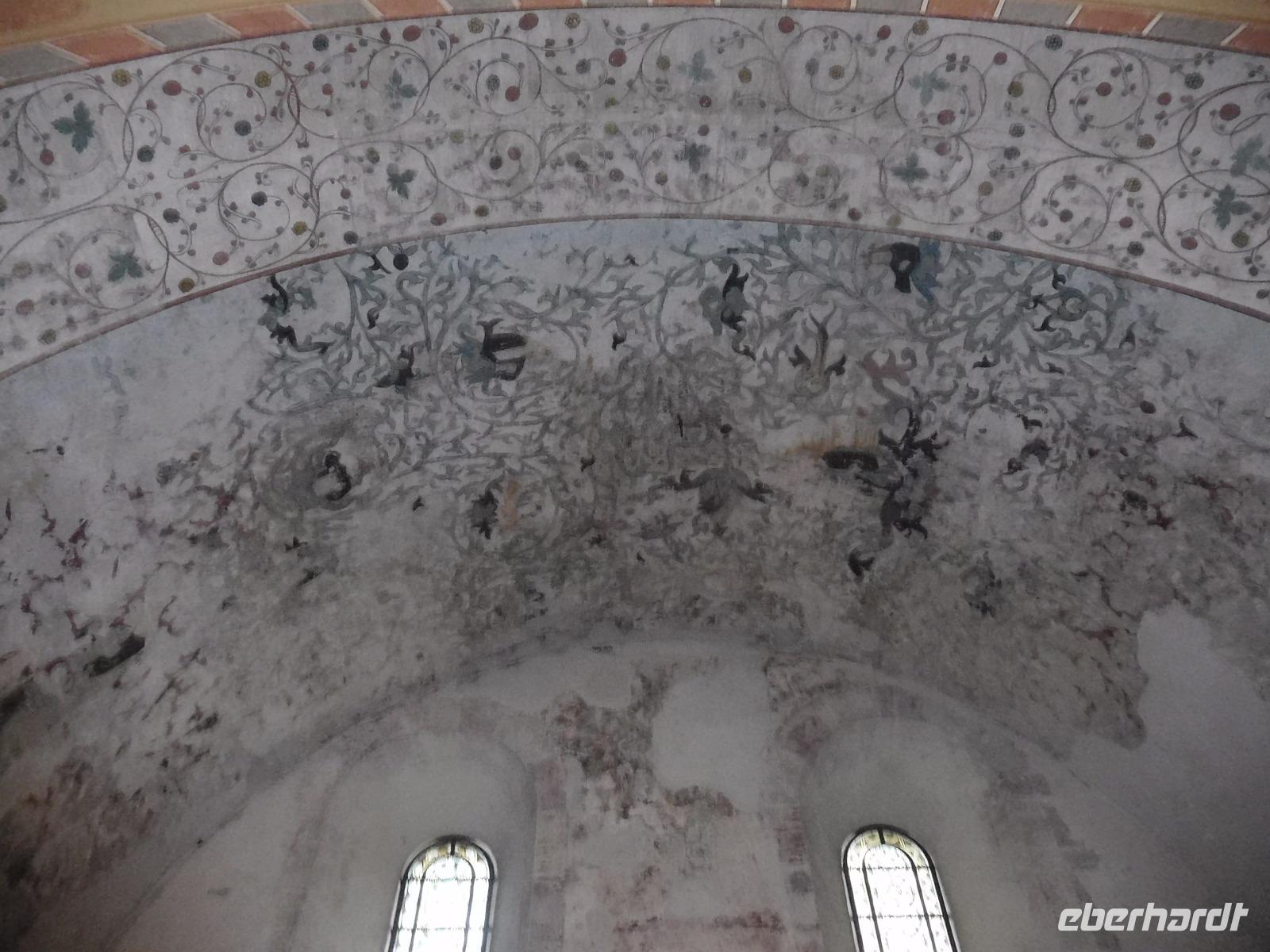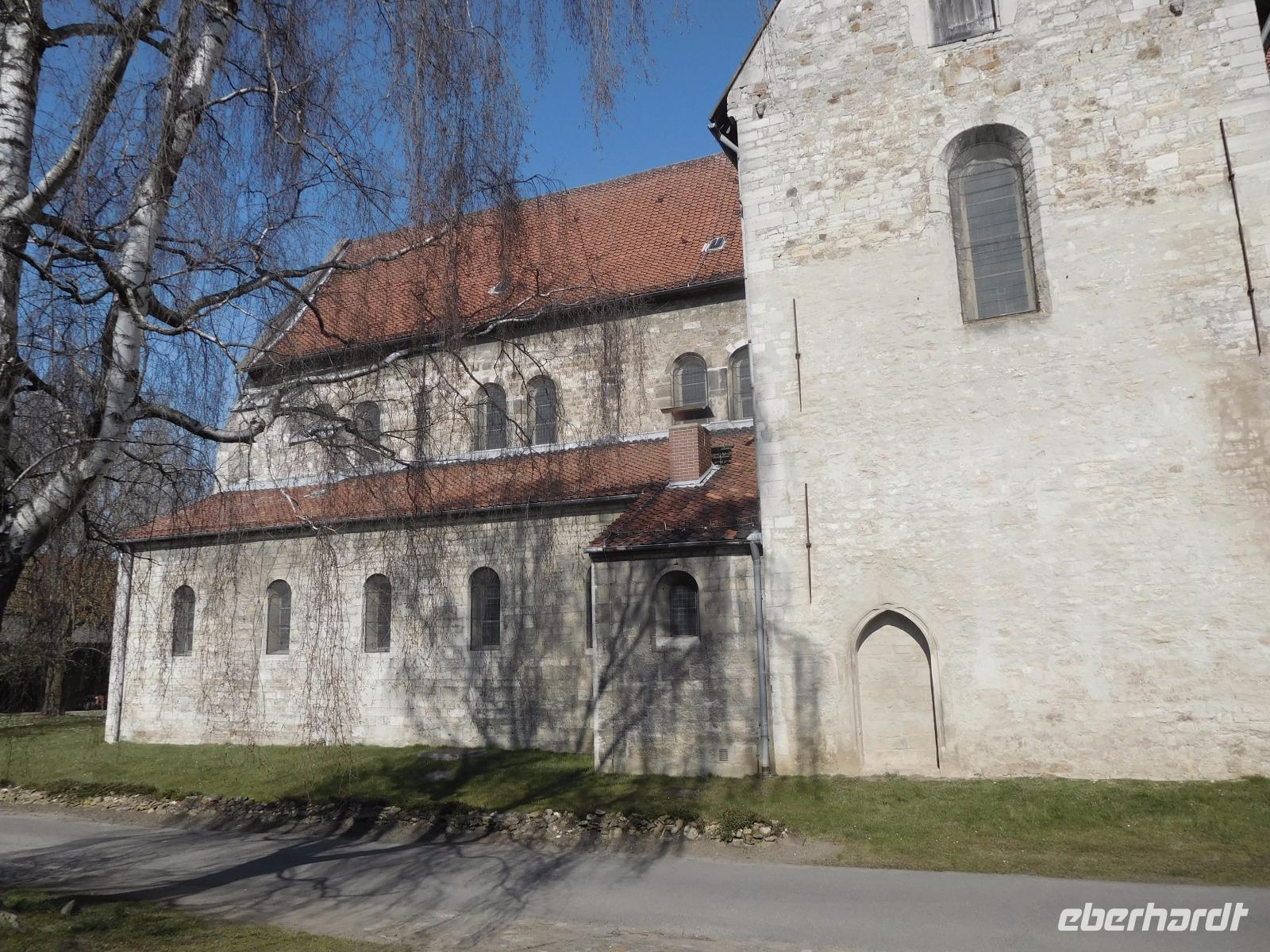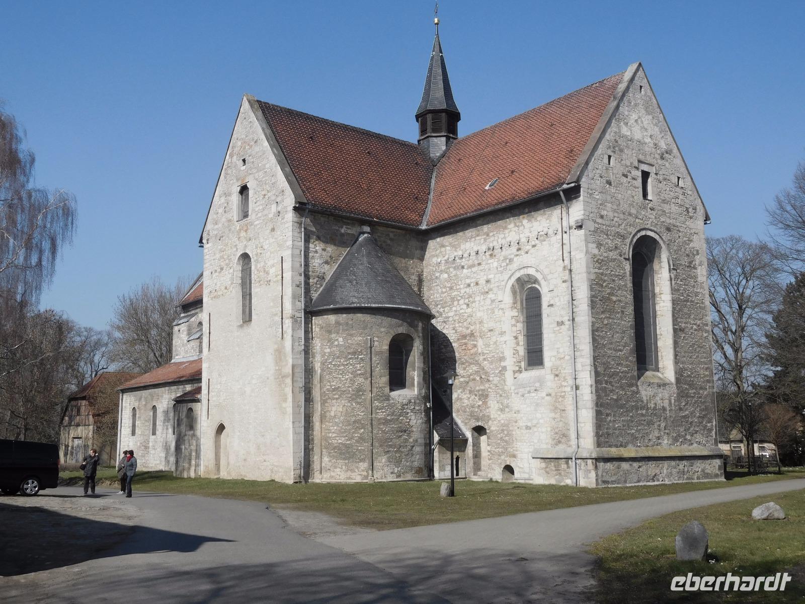 Ein weiteres Ziel war die etwas abseits vom Hauptweg liegende Klosterkirche von Hecklingen. Die im 12. Jh. für das noch ältere Kloster errichtete Basilika gehört zu den Prunkstücken der „Strasse der Romanik" und ist einer der bedeutendsten Sakralbauten im Umland des Harzes. Besonders bekannt ist die Kirche durch ihre byzantinisch anmutenden Stuckengel., die eine Besonderheit der Innenraumgestaltung im 13. Jh. darstellten. Unser erster „templerbezogener" Höhepunkt aber war der Besuch der alten Komtureikirche von Süpplingenburg. Wir bekamen den Schlüssel zur Kirche ausgehändigt und hatten ausreichend Gelegenheit, die mit alten und neuen Wandmalereien verzierte kreuzförmige Templerkirche zu betrachten.