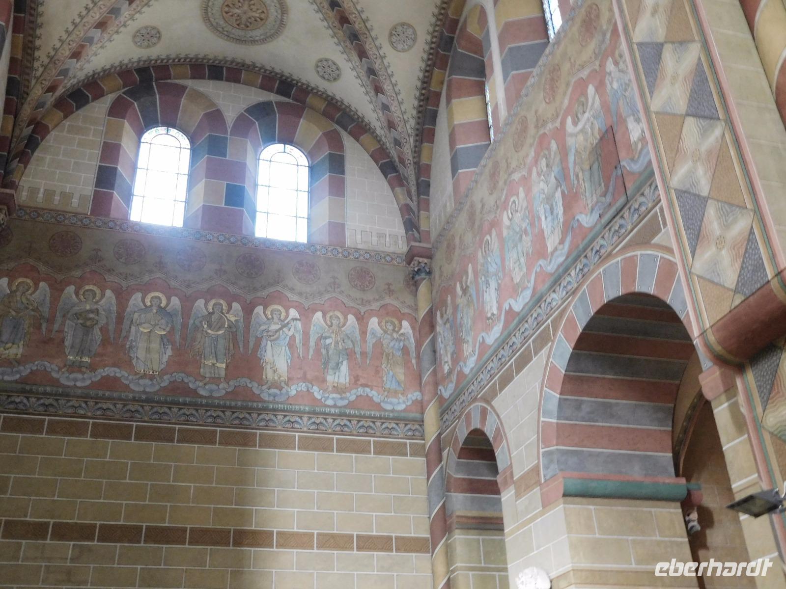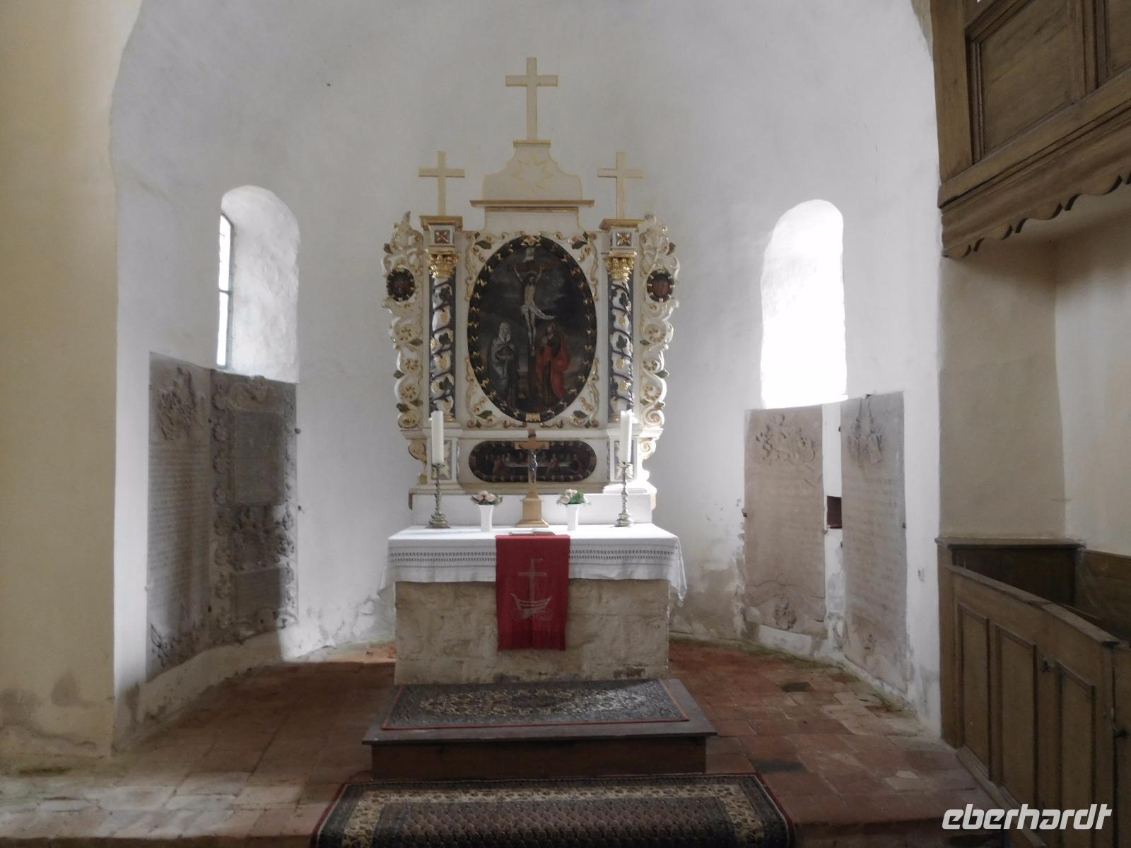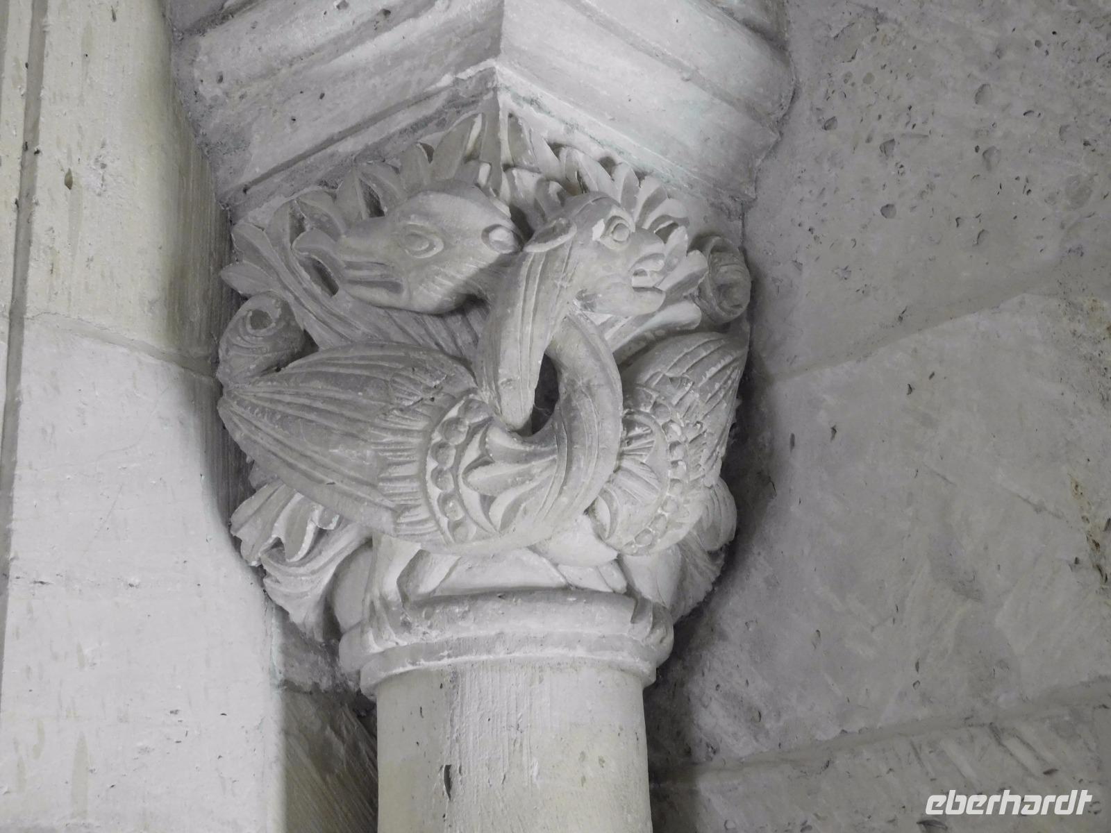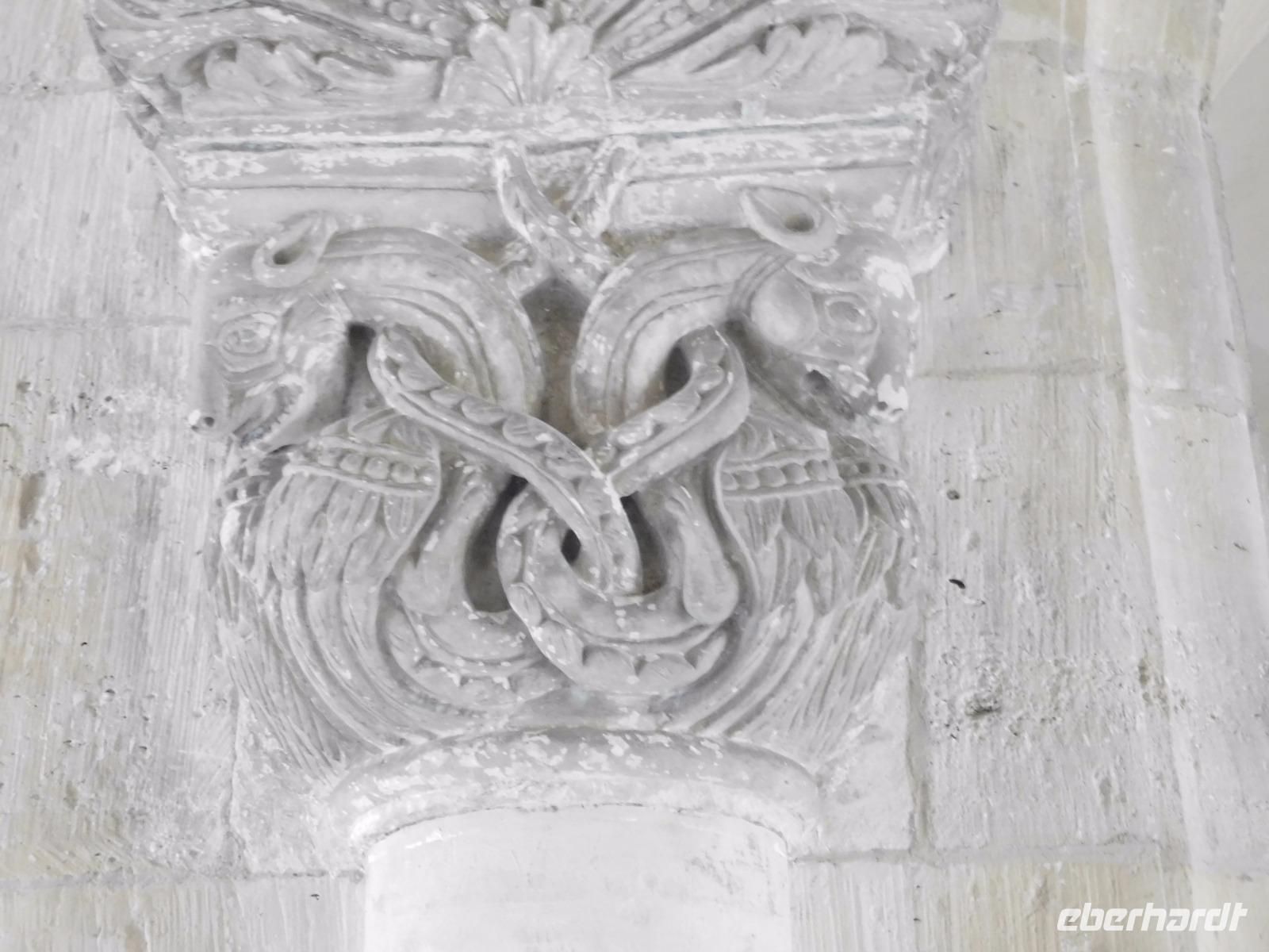 Ein weiteres Ziel war die etwas abseits vom Hauptweg liegende Klosterkirche von Hecklingen. Die im 12. Jh. für das noch ältere Kloster errichtete Basilika gehört zu den Prunkstücken der „Strasse der Romanik" und ist einer der bedeutendsten Sakralbauten im Umland des Harzes. Besonders bekannt ist die Kirche durch ihre byzantinisch anmutenden Stuckengel., die eine Besonderheit der Innenraumgestaltung im 13. Jh. darstellten. Unser erster „templerbezogener" Höhepunkt aber war der Besuch der alten Komtureikirche von Süpplingenburg. Wir bekamen den Schlüssel zur Kirche ausgehändigt und hatten ausreichend Gelegenheit, die mit alten und neuen Wandmalereien verzierte kreuzförmige Templerkirche zu betrachten.