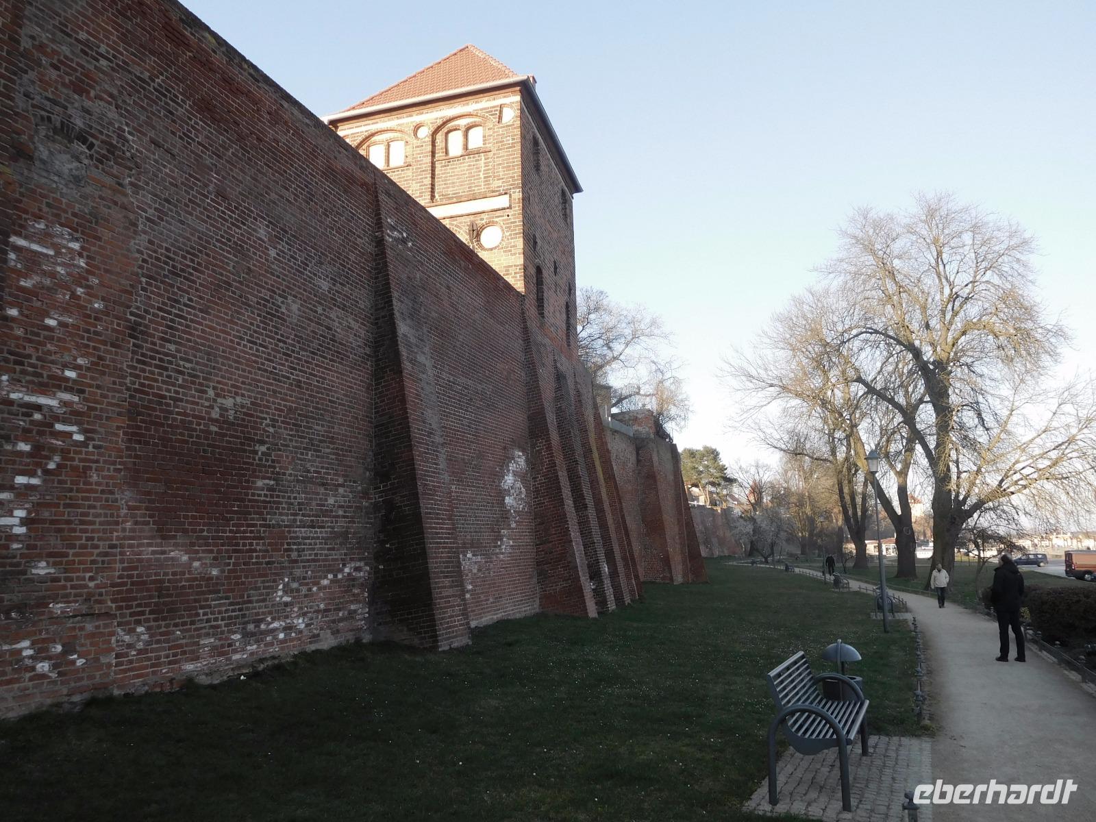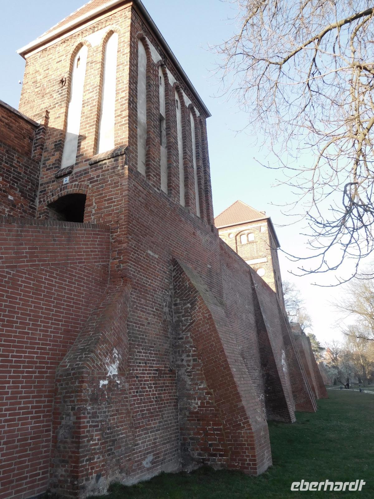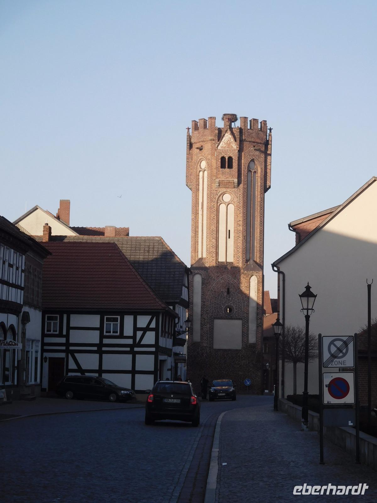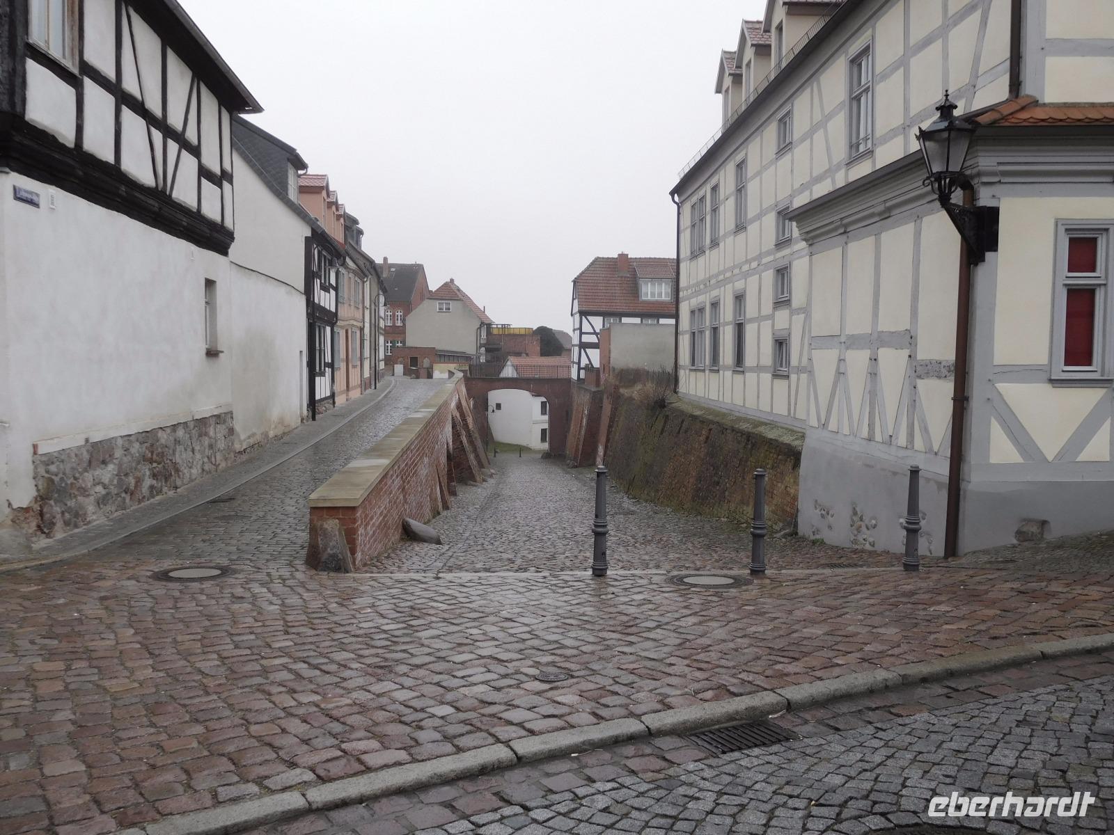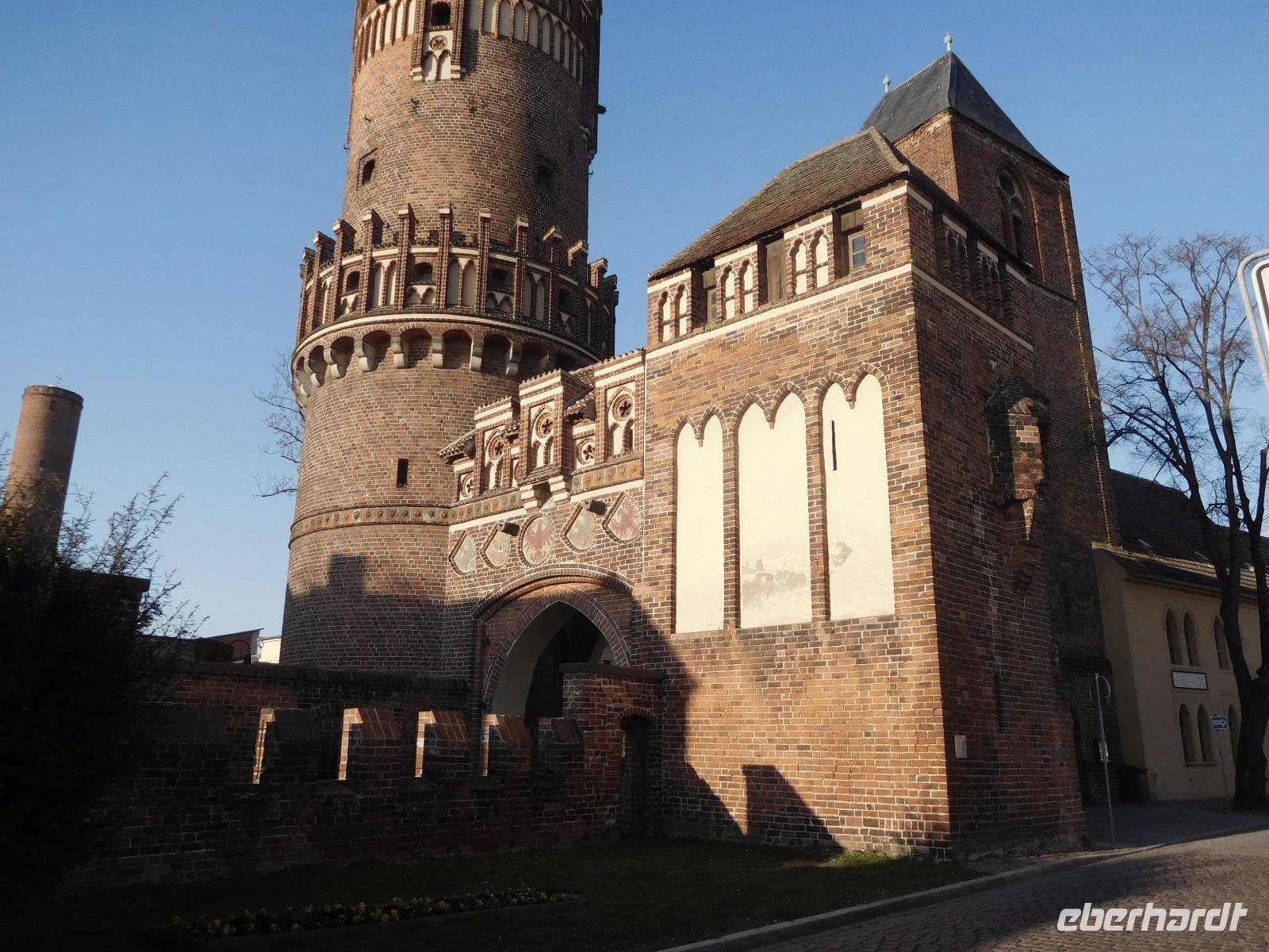 Nach Frühstück im Hotel und Koffer laden folgte noch einmal ein Spaziergang durch das alte Tangermünde. Was wir am Vortage aufgrund schwindender Lichtverhältnisse nicht mehr gesehen hatten, folgte heute: die Tangermünder Burg, die heute zum größten Teil vom Gelände des Schlosshotels eingenommen wird. Ursprünglich war das wuchtige Backsteinbauwerk ein Objekt zur Sicherung und Verteidigung der deutschen Außengrenzen, bis diese sich im Zuge der sog. „Ostexpansion" der deutschen Könige und Kaiser so weit nach Osten verschoben, dass das Hafenstädtchen weit im Landesinneren lag. Kaiser Karl IV., der überwiegend in Prag residierte, ließ die Burg als weitere Residenz schlossähnlich ausbauen und später taten es ihm die zunächst hier residierenden Hohenzollern gleich. Tor, alte Kanzlei und Bergfried, sowie einige weitere Details und Mauern der weitläufigen Anlage sind aus dieser Zeit noch erhalten. Von der Tangermünder Burg ging es, am Torturm, des Hühnerdorfer Tores und vielen Fachwerkhäusern vorbei die lange Hauptstraße entlang zum Neustädter Tor. Unbedingt bemerkenswert ist der Marktplatz, den sein Rathaus mit seiner prachtvollen Schaufassade beherrscht. Das Gebäude und seine malerische gotische Backsteinfassade werden dem im 15. Jh. in der Gegend wirkenden Baumeister Hinrich Brunsberg zugeschrieben. Auf jeden Fall bleibt das Bauwerk im Gedächtnis!