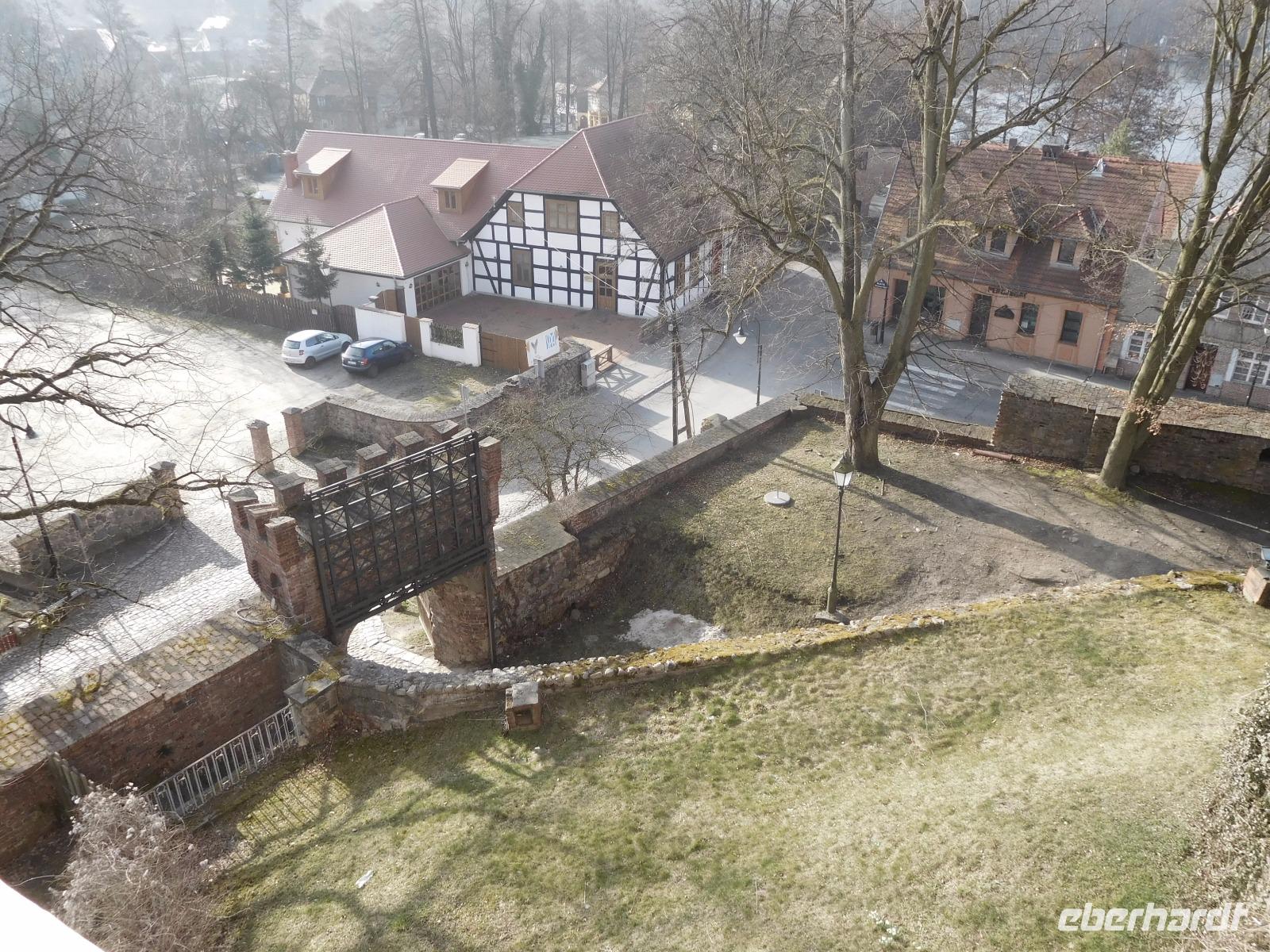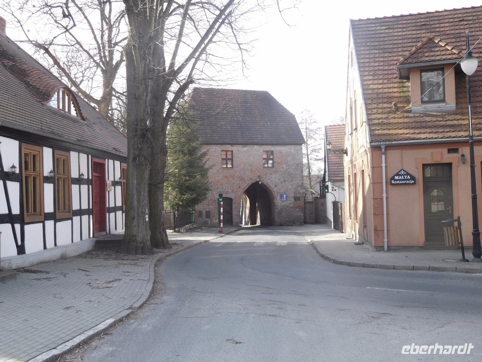 Bei herrlichem Wetter unternahmen wir heute zunächst einmal einen kleinen Ortsrundgang, denn am Abend zuvor waren wir bei Dunkelheit angekommen und hatten noch nicht viel sehen können. Mit seinen beiden Stadttoren, die zur „Größe" von Lagow mit nur wenigen hundert Einwohnern nicht so recht zu passen scheinen und der exponiert im Zentrum liegenden alten Johanniterburg inmitten einer Seen- und Waldschaft ist das Örtchen, das tatsächlich seit vielen hundert Jahren Stadtrecht besitzt, ein hübsches, wenn auch bei uns wenig bekanntes Touristenzentrum. Zu den um Mittsommer herum stattfindenden „Lebuser Filmfestspielen", dem ältesten Filmfestival in Polen und anlässlich vieler, auf der neben unserem Hotel - der Johanniterburg - gelegenen Freilichtbühne zu erlebender Kultur-Aktivitäten ist der Ort aber immer mal wieder im touristischen Aufwind.
