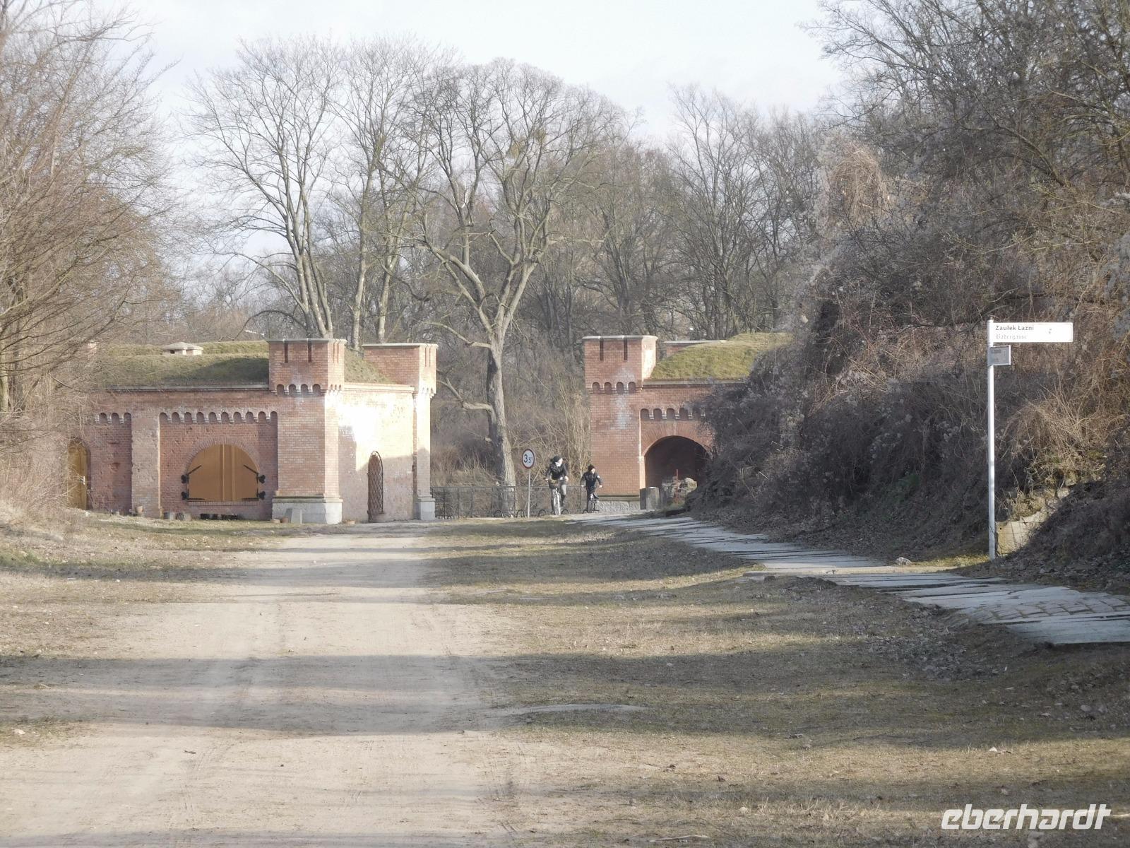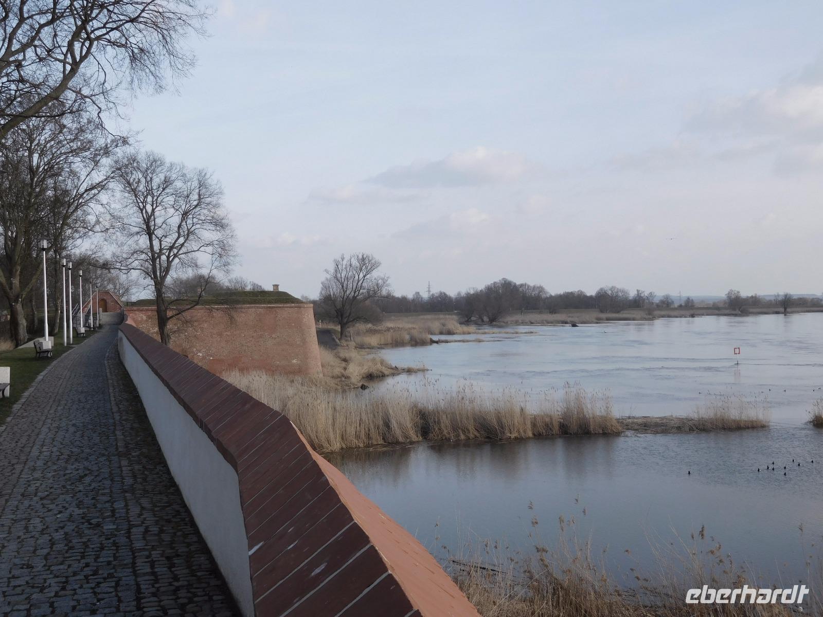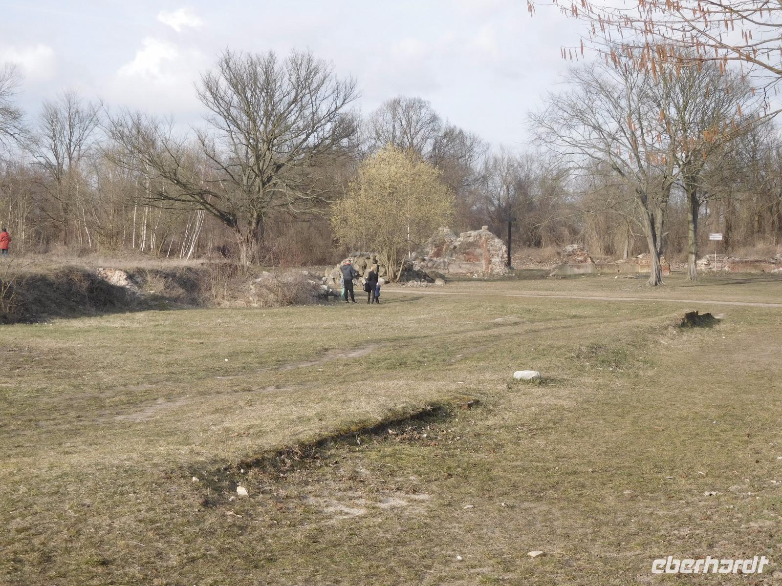Die weiterte Fahrt führte uns nach Küstrin, heute Kostrzyn nad Odra, wo wir bei einem Rundgang die Altstadt entdecken konnten. Der Name ist allerdings etwas irreführend, denn es handelt sich um die Wüstung der einstigen, auf einer Oderinsel gelegenen bedeutenden Festung Brandenburgs und später Preußens, die nach den Bestimmungen des verlorenen Ersten Weltkriegs geschleift und dem Erdboden gleichgemacht wurde. Nachdem in den 60er Jahrten des 20. Jh. auch die Ruinen zur Baumaterial-Gewinnung genutzt wurden, sind nur noch an Grundmauern und alten Gewölben die ehemaligen Straßenzüge etc. zu erkennen. In den letzten Jahren wurden einige der Bastionen und Tore der Artilleriefestung wieder rekonstruiert.
