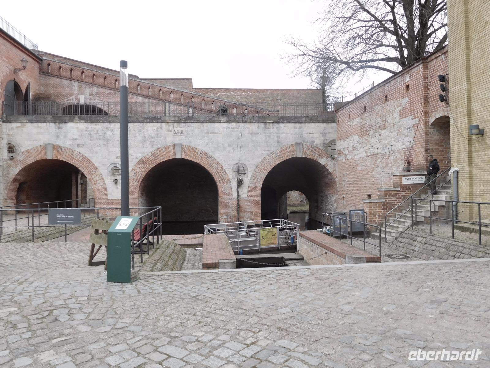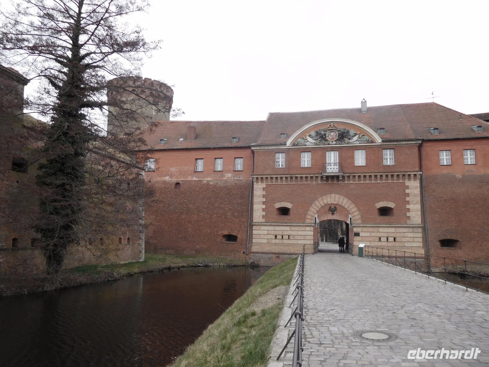 Heute früh gab es wieder zunächst ein gutes Frühstücksbuffet, bevor wir in Ruhe die Koffer und dann mit unserem Kleinbus losfuhren. Erstes Ziel war die Festung Spandau. Gelegen in dem Ortsteil Berlins, der vor der Eingemeindung in die deutsche Hauptstadt der Hauptort der historischen Region Havelland war, ist die Ende des 16. Jh. erbaute Zitadelle, komplett vom Wasser der Havel umspült und eine der bedeutendsten und besterhaltenen Festungen der Hochrenaissance in Europa. Errichtet wurde sie an der Stelle einer älteren Burg, von der Teile - wie der alte Palas und der 30 m hohe Juliusturm, heute Wahrzeichen Spandaus, ins Festungsgelände einbezogen wurden. Die symmetrische Anlage bildet ein gewaltiges Quadrat, das an jeder seiner vier Ecken durch weit in den Havelsee vorspringende Dreiecksbastionen geschützt wird, die man untereinander durch gut gedeckte Kurtinen, gerade verlaufende Wallanlagen verband. Bemerkenswerte Bauwerke in der historisch wertvollen, weitläufigen Burganlage sind vor allem der vor einiger Zeit restaurierte Zitadellen-Hafen, mit dessen Hilfe Versorgungsboote in die Zitadelle kamen oder auch geheime Staatsbesuche bzw. der Kurfürst oder später der Preußenkönig selbst sowie die Exerzierhalle, eine der wenigen noch existenten ihrer Art, in der früher bei entsprechend schlechter Witterung der preußische Drill sozusagen unter Überdachung an die Soldaten weitergegeben wurde. Nach einem kurzen Besuch in den Museumsräumen der Zitadelle verließen wir Deutschlands größtes geschlossenes historisches Militärbauwerk wieder und fuhren zu unserem letzten Besichtigungspunkt.