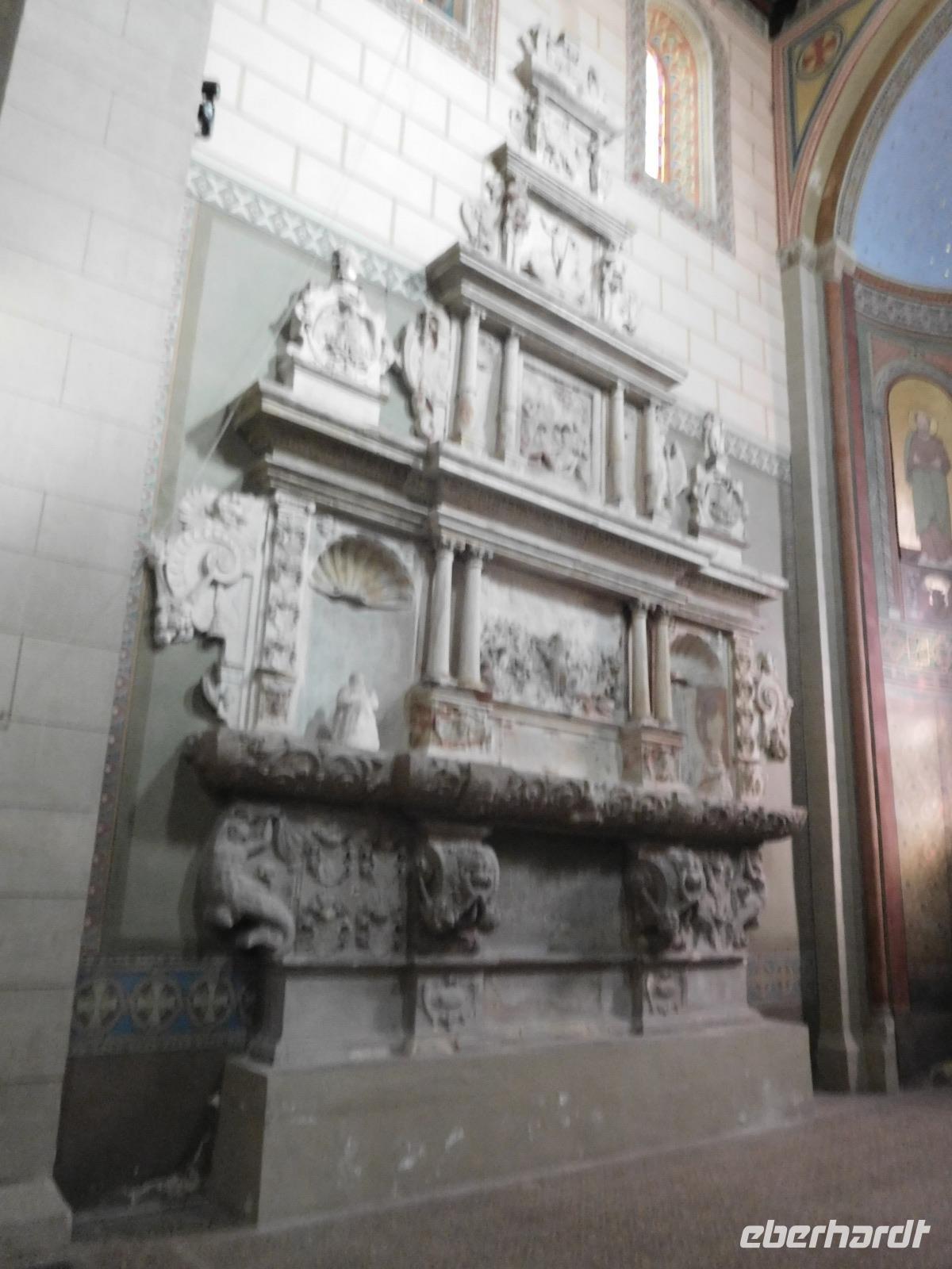 Anschließend lernten wir bei einem kleinen Rundgang das hübsche Stadtzentrum von Helmstedt kennen. Die meistern kennen den Ort nur als Namengeber für einen Grenzübergang zwischen beiden Deutschlands der zweiten Hälfte des 20. Jh. Tatsächlich aber wurde hier die erste deutlich protestantische Universität gegründet, die vom 16. Jh. bis 1810 bestand. Ihr historischer Renaissancekomplex ist noch nahezu original erhalten - besonders interessant ist das Hauptgebäude, das Juleum. Es wurde im Stil der Weserrenaissance errichtet und ist so ziemlich das einzige, noch komplett erhaltene Gebäude, das unter dem Einfluss der Spätrenaissace-Stilrichtung des aus Italien stammenden Manierismus vollendet wurde. Nach etwas Freizeit zum Mittagessen besuchten wir den „Kaiserdom" zu Königslutter. Das herrliche romanische Bauwerk, das eigentlich nur dem Namen nach Dom ist und ansonsten Peter-und-Pauls-Kirche heißt, wurde im 12. Jh. von Lothar von Süpplingenburg, als Lothar III. deutscher Kauiser, als Benediktinerkloster und Grablege für seine Familie gestiftet. Die kreuzförmige Pfeilerbasilika hatte mich 75 ,m Länge und 18 m Höhe für die damalige Zeit gewaltige Ausmaße und bis heute spiegeln ihre klare architektonische Schönheit und die Bildersprache ihrer Bemalung Macht und Einfluss des Gründers und die Bedeutung des Baues in der damaligen Zeit wider.