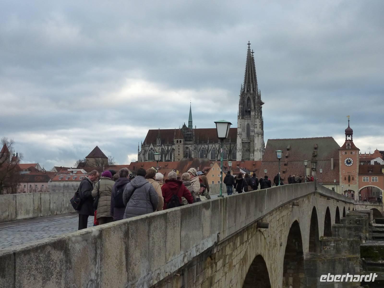 Wir trafen uns am Morgen an der Busabfahrtsstelle Bayrische Str. in Dresden. Alle waren überpünktlich. Die Fahrt führte zunächst nach Regensburg. Zum Mittagessen kamen wir an und wurden im „Spitalgarten" mit eigener Brauerei erwartet. Es war sehr lecker und sehr reichlich. Nun wurden wir von zwei Gästeführerinnen zum Stadtrundgang „abgeholt". Wir sahen die weihnachtlich geschmückte Altstadt mit sämtlichen Weihnachtsmärkten, dem Rathaus, den Geschlechtertürmen und der Steinernen Brücke, dem Wahrzeichen der Stadt. Den Regensburger Dom St. Petri besichtigten wir in Anschluß mit Erläuterungen von zwei Gästeführerinnen. So lernten wir beispielsweise eine Skulptur von „des Teufels Großmutter" kennen. Einige besuchten noch die anschauliche Ausstellung des UNESCO-Weltkulturerbes im Salzturm. Am späten Nachmittag fuhren wir weiter nach Hohenau am Nationalpark Bayerischer Wald. Hier lag Schnee und es schneite immer wieder. Im „Hohenauer Hof" angekommen, bezogen wir die Zimmer und mit einem 3-Gänge-Menü mit Salatbuffet beendeten wir den ersten langen Tag.