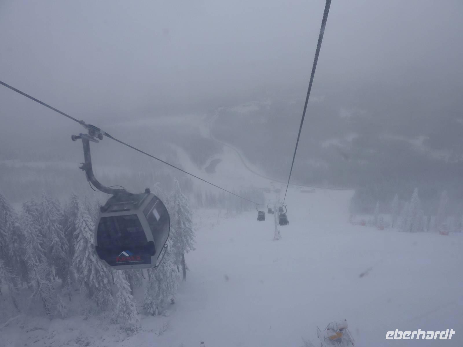 Am Morgen begann es wieder zu schneien. Unsere Rundfahrt durch den Bayerischen Wald begann früh. Der örtliche Reiseführer, Herr Moosbauer, begrüßte uns bereits im Bus vor dem Hotel. Zuerst fuhren wir über Grafenau, Spiegelau, Frauenau, Zwiesel, Bayrisch Eisenstein und Bodenmais nach Ansbruck. Hier besuchten wir das Weinfurther Glasdorf. Wir schauten zwei Glasbläsern bei der Herstellung einer Glaskugel, einem Glasvogel und einer Glasvase zu. Anschließend bummelten wir durch die Anlage des Handwerkerdorfes mit mehreren Häusern. Zu Mittag aßen wir im "Dorfwirt" und danach ging die Fahrt zum Großen Arber. Mit der Gondelseilbahn bekamen wir eine Sonderfahrt, leider war die Aussicht neblig und es schneite. Weiter ging es über Bodenmais nach Böbrach. In der gläsernen Destille wurden wir herzlich willkommen geheißen. Nach anschaulicher Erläuterung über die Blutwurz- und Bärwurz-Herstellung und einer Filmvorführung durften wir allerlei Spezialitäten verkosten. Neben dem regionalen Bärwurz und dem Kräuterlikör Blutwurz testeten wir unter anderem den Heidelbeer- und den Himbeerlikör. Auch der Nikolaus dachte an unser gesundheitliches Wohl. Die Rückfahrt führte uns über Regen und Grafenau zu unserem Hotel in Hohenau. Als Abendessen gab es ein Schmankerl-Buffet. Zwei lustige bayerische Musikanten Stefan und Martin spielten für uns auf. Es war ein schöner Tag im Bayerischen Wald.
