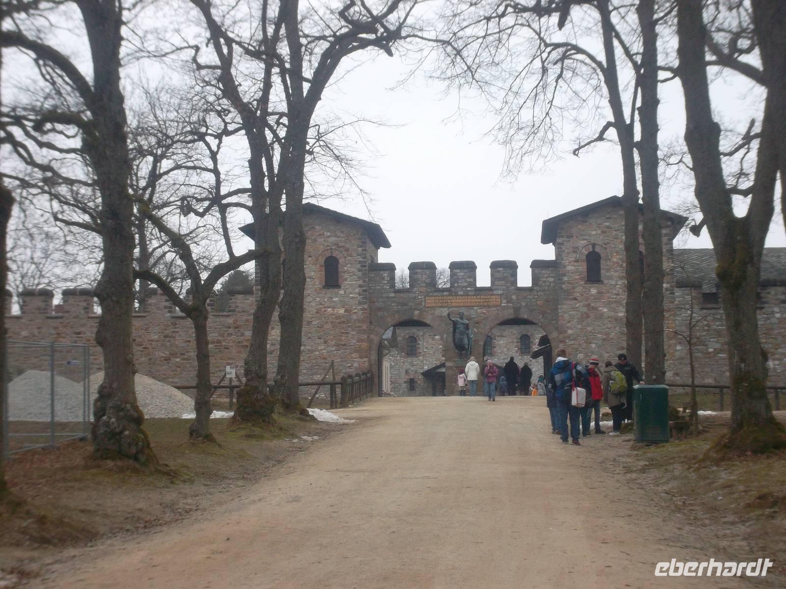 Nicht allzuspät ging es heute los, bevor wir nach etwa zwei Fahrstunden mit dem Bus Europas ausgedehntestes UNESCO-Weltkulturerbe erreichten. Der obergermanisch-rätische Limes wurde von den Römern errichtet. Hat seit 2005 den welterbe-Status und ist mit 550 km gleichzeitig das längste Bodendenkmal weltweit. Die Römer errichteten zu unterschiedlichen Zeiten an ihren Außengrenzen limites - vor allem zur Kontrolle und Kanalisierung des Verkehrs und zur Sicherung schneller Nachrichtenübermittlung ihrer Truppen. Vor allem nach dem germanischen Sieg über die Römer im Teutoburger Wald wurde die Sicherung der Außengrenze in Germanien nötig und so wurde mit großem Aufwand der Limes an den Provinzen Rätien und Obergermanien errichtet. Planmäßig wurden in genauen Abständen Wach- und Signaltürme angelegt, in größeren Abständen Truppenquartiere und Bereitstellungsräume für Soldaten und Hilfstruppen. Das Kastell Saalburg ist eine der schönsten und gelungensten Rekonstruktionen sowie die vollständigste eines solchen befestigten römischen Heerlagers. Es ist auf Ausgrabungsresten am Originalschauplatz errichtet worden - bereits Kaiser Wilhelm II. hatte 1897 die Rekonstruktion bewilligt. Seither ist ein komplettes Kohortenkastell mit Wehrgebäuden, Umfassungsmauern und Unerkünften wiedererstanden, in dem es auch viele museale Einrichtungen gibt. Nirgendwo kann man sich besser über die Geschichte der Römer in und um Germanien informieren. Nach einem kurzen Rundgang - bei dem wir auch die Besonderheiten des genau bei unserem Besuch veranstalteten Erlebnistages genießen konnten - z.B. ein kleines Zeltlager mit römischen Soldaten in Uniform - hatten alle Gäste Gelegenheit zum individuellen Rundgang über das weitläufige Kastellgelände und seiner Museen.