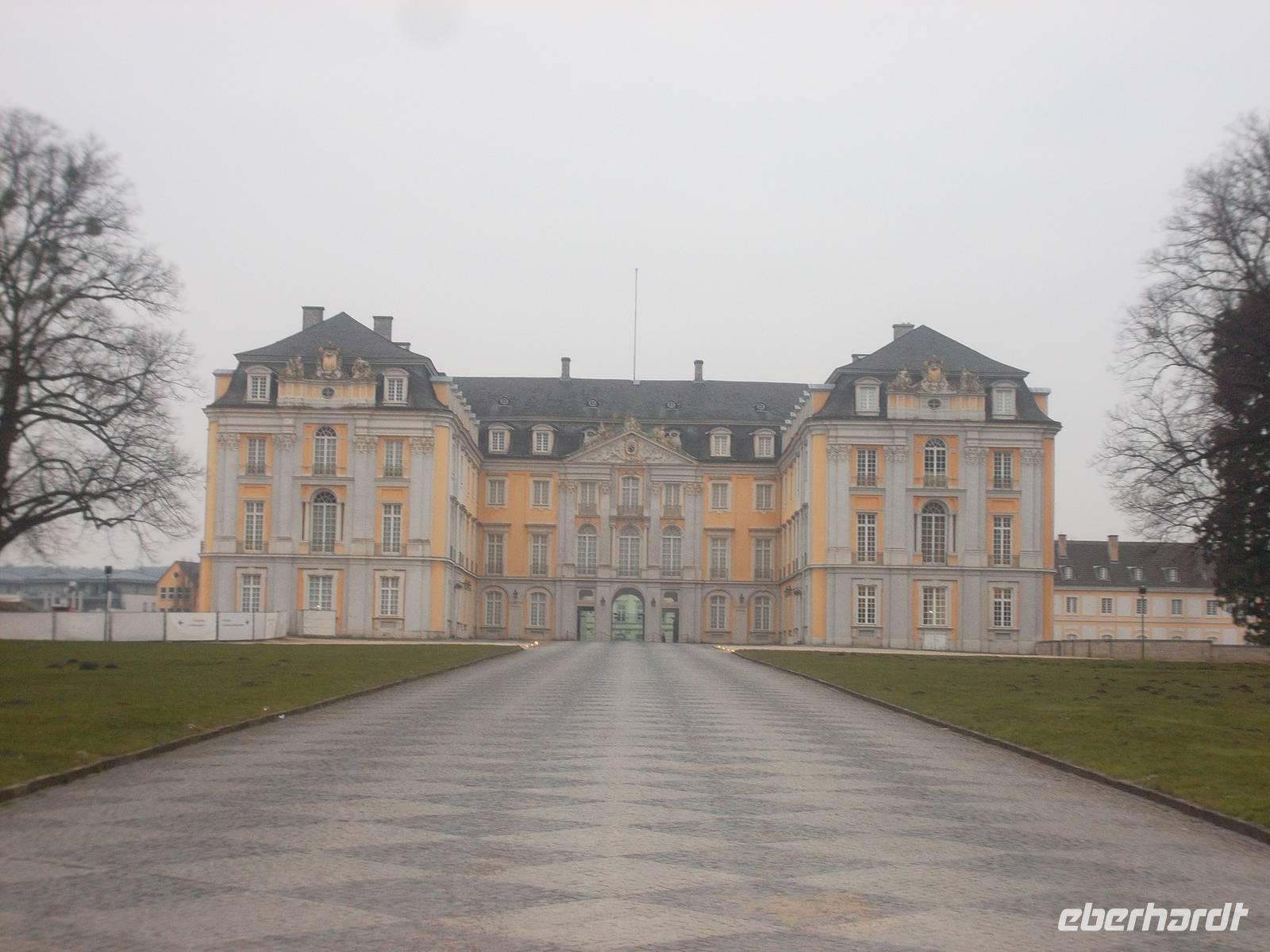 Nicht weit von Weilerswist und nur ein paar Kilometer südlich von Köln liegt der Ort Brühl. Hier ließ der Kölner Kurfürst und Erzbischof Clemens August von Bayern seine repräsentative Lieblingsresidenz errichten. Der westfälsche Architekt Conrad Schlaun begann mit den Arbeitebn an der Augustusburg, die Ausgestaltung zuer herausragenden Residenz übernahm zur Mitte des 18. Jh. der Franzose Francois de Cuvilliés. Weltbekannt wurde aber besonders das Prunktreppenhaus des Schlosses, das bis 1996 auch besonderer Empfangsort des Bundespräsidenten Deutschlands war und das auf Balthasar Neumann zurückgeht, jenen genialen Barockbaumeister, dem auch Würzburg seine Residenz verdankt, Veitshöchheim sein Schloß oder Franken die herrliche Basilika Vierzehnheiligen. Bei einer etwa einstündigen Führung durch das Barockschloss haben wir die Feinheiten der Anlage kennengelernt und konnten dann noch auf „eigene Faust" die Besonderheiten des Gebäudes und der Gärten erschließen