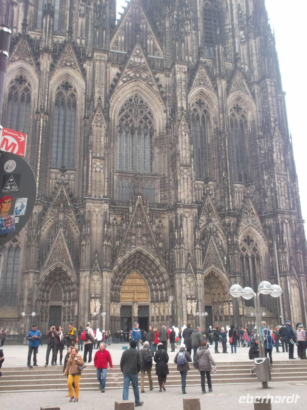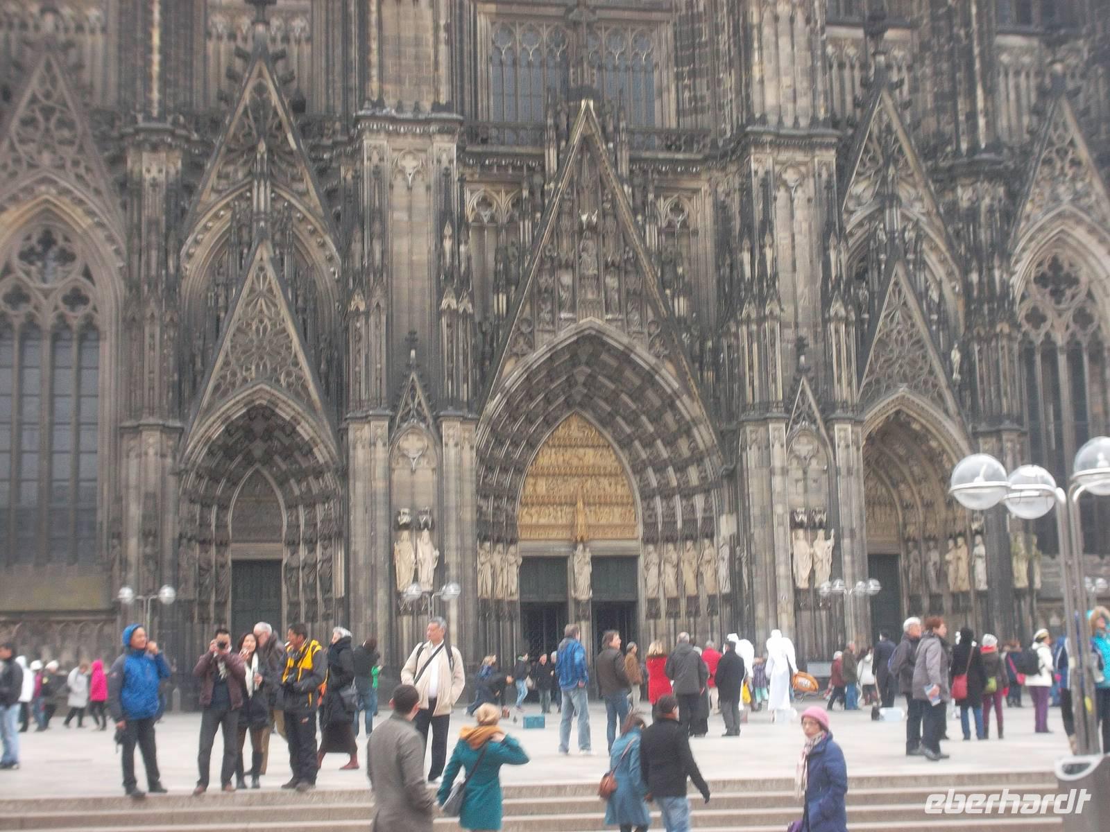 Die folgende Fahrt war kurz und brachte uns nach Köln. Wahrzeichen der Stadt ist natürlich der gotische Dom, der nahe dem Rhein und dem Hauptbahnhof im Zentrum der Millonenstadt steht. Auch dieser Bau ist UNESCO-Weltkulturerbe und steckt voller Superlative. Deutschlands größte Kirche ist zugleich eines der weltgrößten Bauwerke der Gotik, die zweithöchste Kirche Europas und dritthöchster Kirchenbau der Welt. Die imposante Westfassade mit mehr als 7.100 m² Fläche ist unübertroffen und mehr als 600 Jahre Bauzeit machen den Dom auch zur am längsten im Bau befindlichen Kirche Europas. Seit 1996 ist er Weltkulturerbe und die meistbesuchte Sehenswürdigkeit Deutschlands, die auch wir in Ruhe individuell besuchen konnten.