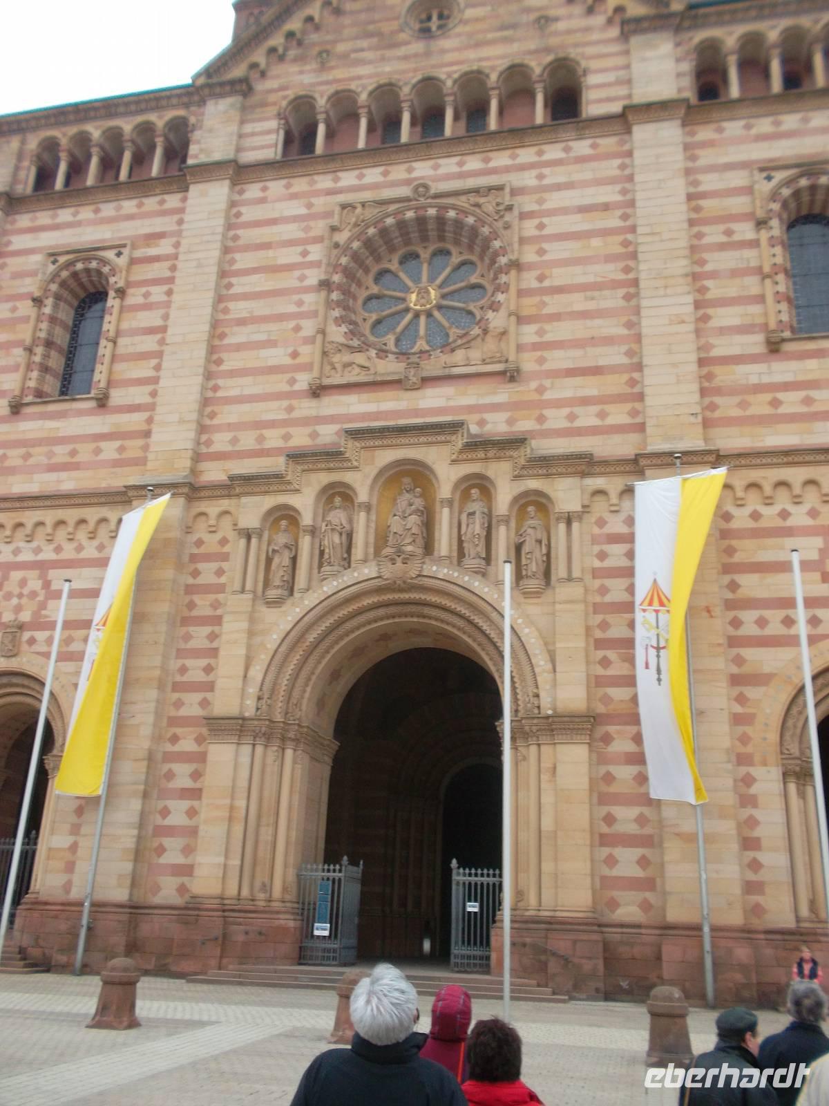 Der Speyerer Dom war unser erstes Ziel für heute, ein romanischer Kaiserdom, der schon seit 1981 auf der UNESCO-Weltkulturerbeliste steht. Einst sollte er unter dem deutschen Herrschergeschlecht der Salier die größte Kirche der Christenheit werden - sicher auch als politische Machdemonstration der deutschen Kaiser gegenüber dem Papsttum, denn während der Bauzeit hatte Kaiser Heinrich IV. den für ihn schmachvollen Bußgang nach Canossa zu Papst Gregor VII. antreten müssen. Unsere Domführerin brachte uns in einer guten Stunde Dombau, Geschichte und Architektur näher - wir erlebten den mittelalterlichen Prachtbau mit den vielfältigen, teilweise erst nach Zerstörung im Pfälzischen Erbfolgekrieg und nachfolgendem Wiederaufbau angebrachten Verzierungen und Statuen, die auf die einstige Bedeutung und Größe des Domes anspielten. Die Führung endete in der Krypta mit den Kaiser- und Königsgräbern und danach blieb Zeit, sich weiter im Speyerer Dom oder in der Altstadt umzusehen.