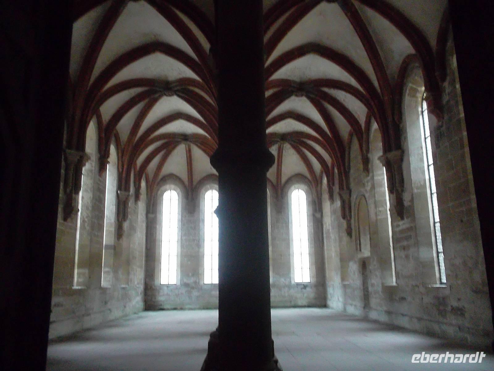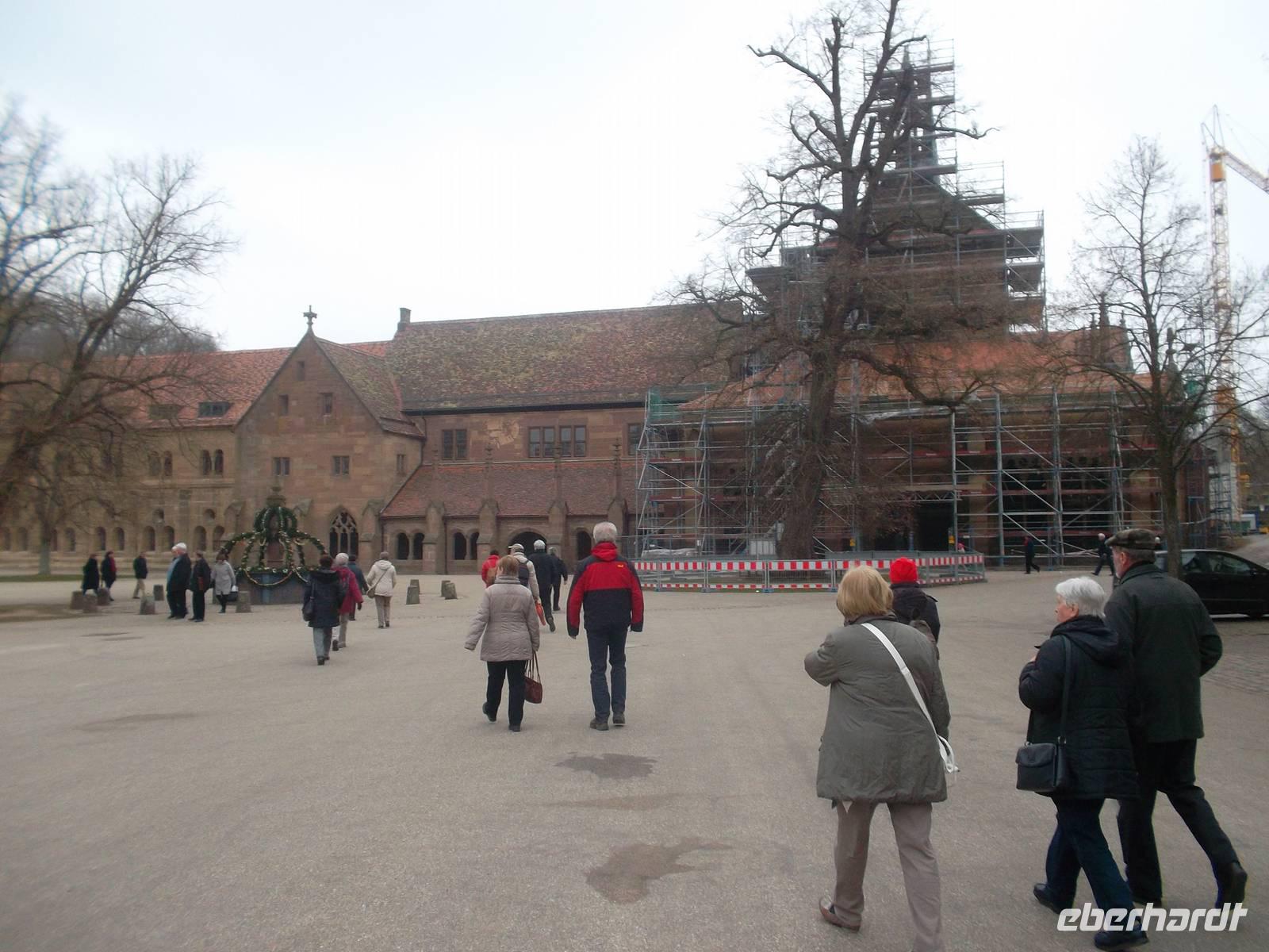 Später holte uns der Bus zur Weiterfahrt ins Kloster Maulbronn ab, das wir pünktlich nach etwa einer Stunde erreichten. Dieses Kloster ist nicht nur gewaltig und eindrucksvoll, es ist auch wesentlich besser erhalten als das am Vortag besuchte Lorsch. Maulbronn, in dem nahezu alle Spielarten von Stil- und Architekturentwicklung zwischen Romanik und spätesater Gotik zu finden sind, gilt als die am besten erhaltene Klosteranlage aus dem Mittelalter nördlich der Alpen. Bei einer Führung wurden uns das Leben und Arbeiten aber auch die durch Ordensregeln bestimmten sehr kargen und schwierigen Lebensumstände der Zisterziensermönche beschrieben und die erhaltene Bausubstanz ermöglicht ziemlich genaue Vorstellungen von den geschilderten Abläufen. Die Speisesäle von Mönchen und Laienbrüdern geben hier ebenso Auskunft wie Treppen, Kreuzgang und andere, besonders anschaulich erhaltene Baulichkeiten. Schon in der Reformation wurde das Kloster aufgelöst und übernahm verschiedene Wirtschafts-, Verwaltungs- und Schulfunktionen. Bis heute beherbergt es ein evangelisches Gymnasium mit Internat und verschiedene Verwaltungsgebäude der Stadt Maulbronn. Nach Besichtigung der vielen Klosterräume konnten wir anschließend vieles noch in den historischen Räumlichkeiten oder in den zum Kloster gehörenden Ausstellungen „nacharbeiten".