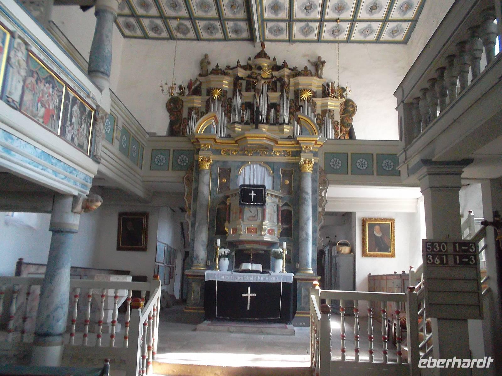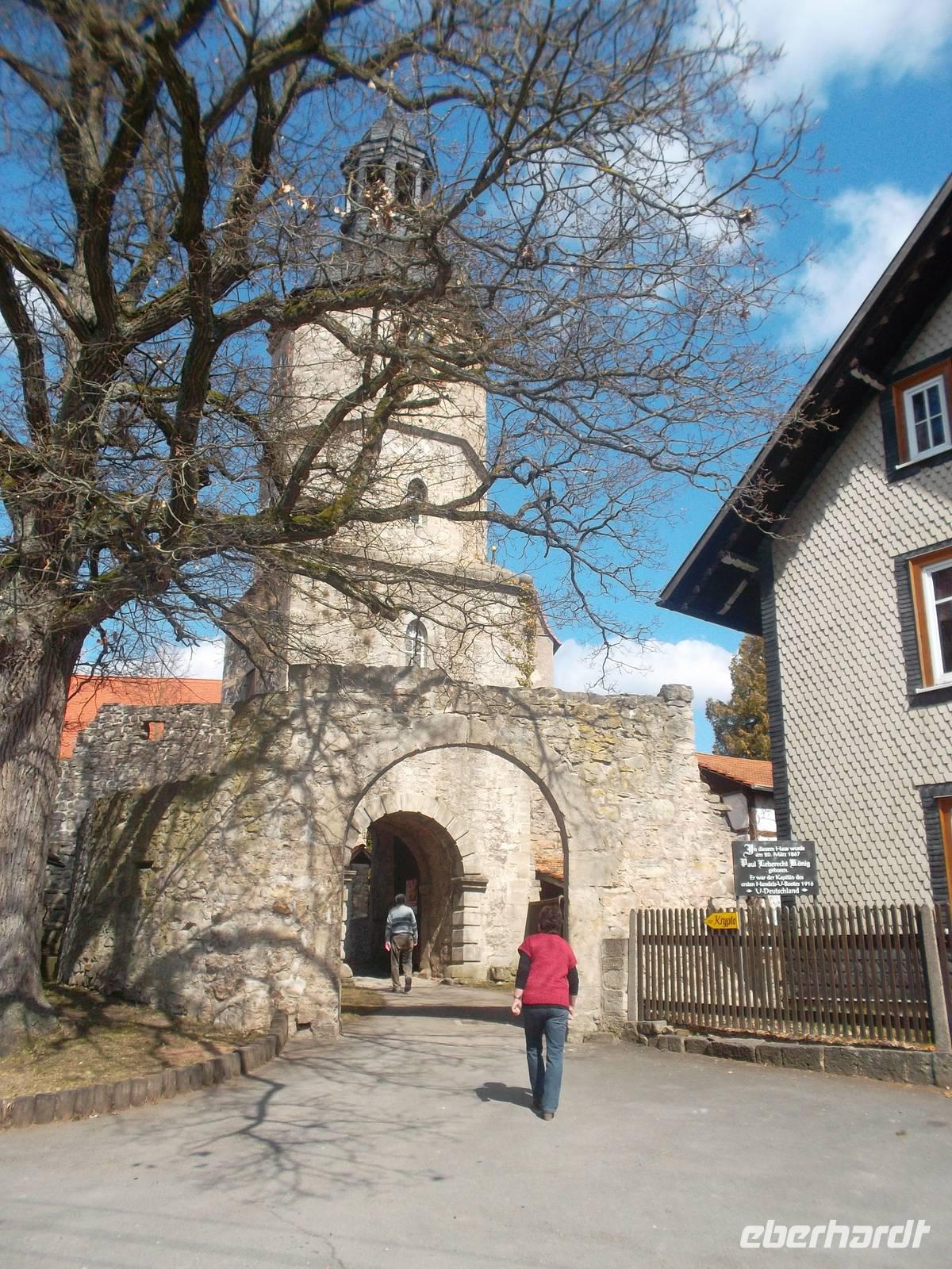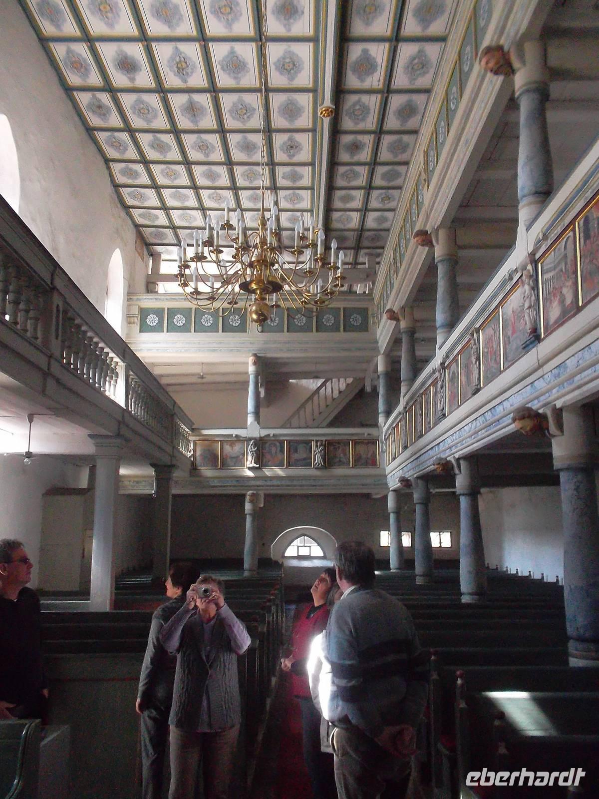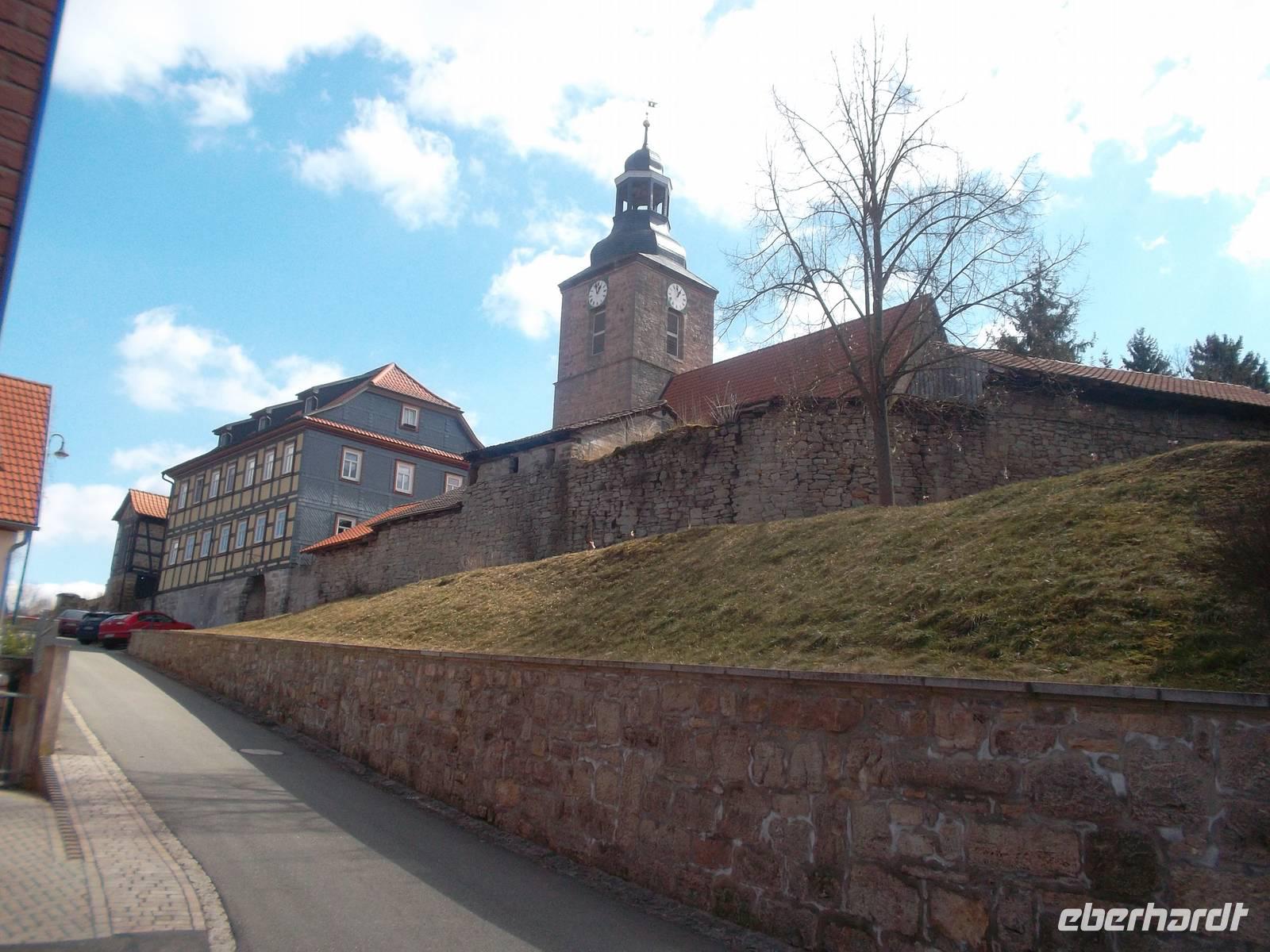 Gleich nach Öffnung der Würzburger Residenz, dem letzten UNESCO-Welterbe unserer Reise, waren wir zur Stelle. Balthasar Neumann, der berühmte Barockbaumeister, dem wir schon beim Besuch des Prunktreppenhauses im UNESCO-Welterbe Augustusburg begegnet waren, zeichnete auch für viele gewaltigen Prachtbauten Würzburgs verantwortlich. Seit 1981 bereits auf der Weltkulturerbeliste, gehört die Residenz in Würzburg nicht nur in eine Reihe mit weltbekannten Bauten wie Schloß Versailles bei Paris oder Schloß Schönbrunn in Wien, sie gilt auch als eines der Hauptwerke des süddeutschen Barock. Nach dem gemeinsamen Eintritt und Blick in den Gartensaal setzten wir die Besichtigung individuell fort - aber wer wollte, konnte sich einer der alle 20 min. beginnenden offiziellen Führungen anschließen. Und da das Wetter schöner und sogar sonnig wurde, konnten wir auch noch den Hofgarten der Würzburger Residenz anschauen. Kurz nach 11.00 Uhr verließen wir dann Würzburg, waren aber auf der Autobahn noch etwas schneller als gedacht, so dass wir noch ein letztes „Extra" einbauen konnten: im Verlauf der südthüringischen Landstraße in der Nähe von Meiningen, machten wir noch mehrere Fotostopps an einigen der wenig bekannten, historisch aber um so interessanteren Kirchenburgen. Bei Belrieth überfuhren wir nicht nur eine der historischen Brücken über die Werra, sondern konnten auch einen Eindruck von der gut erhaltenen Kirchenburg mit dem interessanten, überbauten Eingangstor erhaschen. Ähnlich war es mit der Kirchenburg Einhausen, auch die gut erhalten und gepflegt. Letzter Höhepunkt, bevor wir wieder auf die Autobahn zurückfuhren, war der Besuch der Kirchenburg in Rohr. Dieser Ort hatte ziemliche Bedeutung in der frühen deutschen Geschichte: er beherbergte im 9. Jh. bereits ein Kloster und einen Reichshof, in dem sich wiederholt Könige aufhielten und erlebte 984 unter den Ottonen einen Reichstag. Heute stellt die mit Befestigung versehene alte Michaels-Wehrkirche - ursprünglich als Klosterkirche eines Benediktinerklosters im 9. Jh. erbaut - als umfriedete Dorfkirche mit ihrer kleinen, aber uralten Krypta den einzigen in Teilen aus karolingischer Zeit erhaltenen Monumentalbau im Osten Deutschlands dar. Die FDorfkirche von Rohr ist sehr sehenswert.