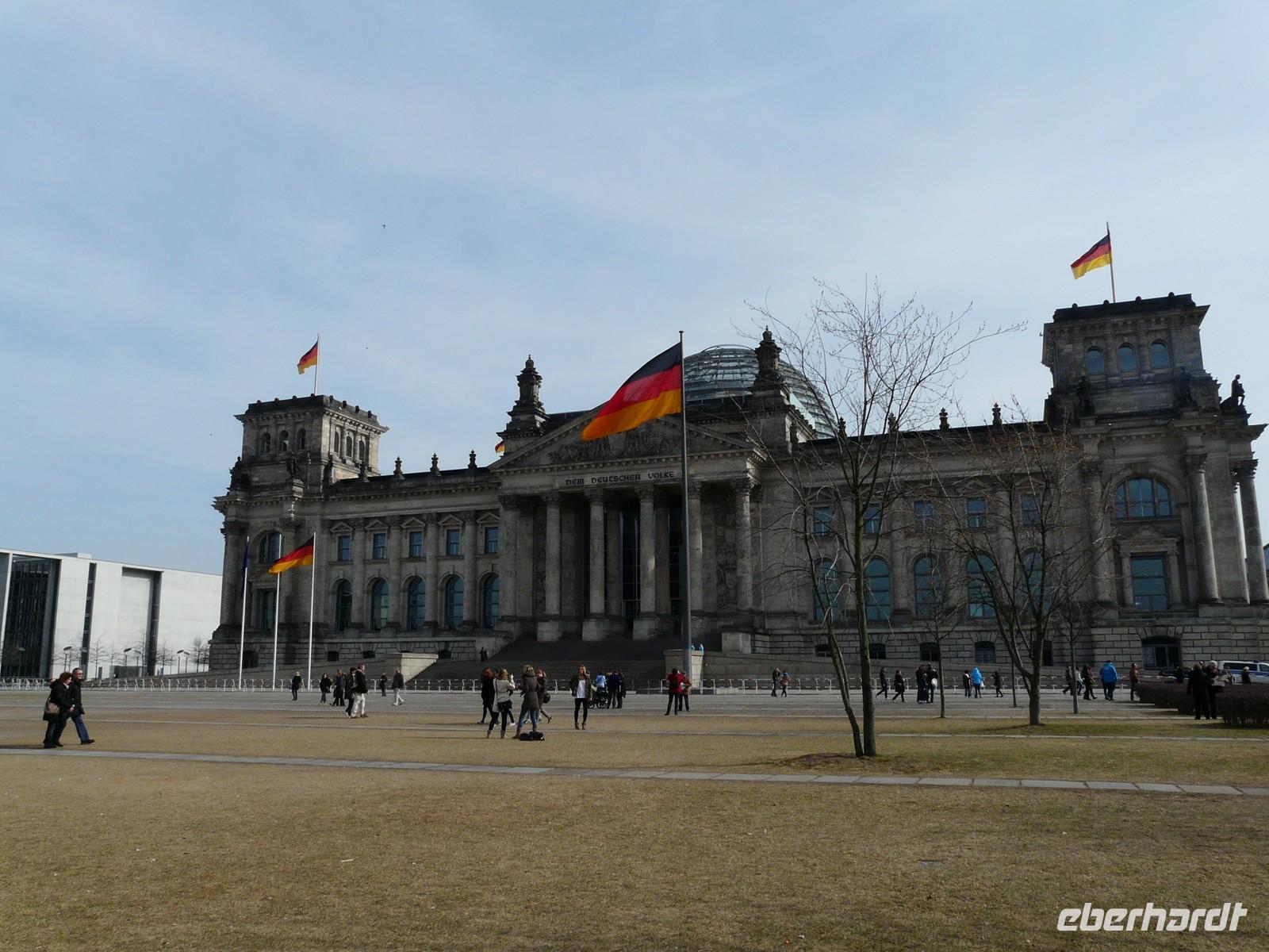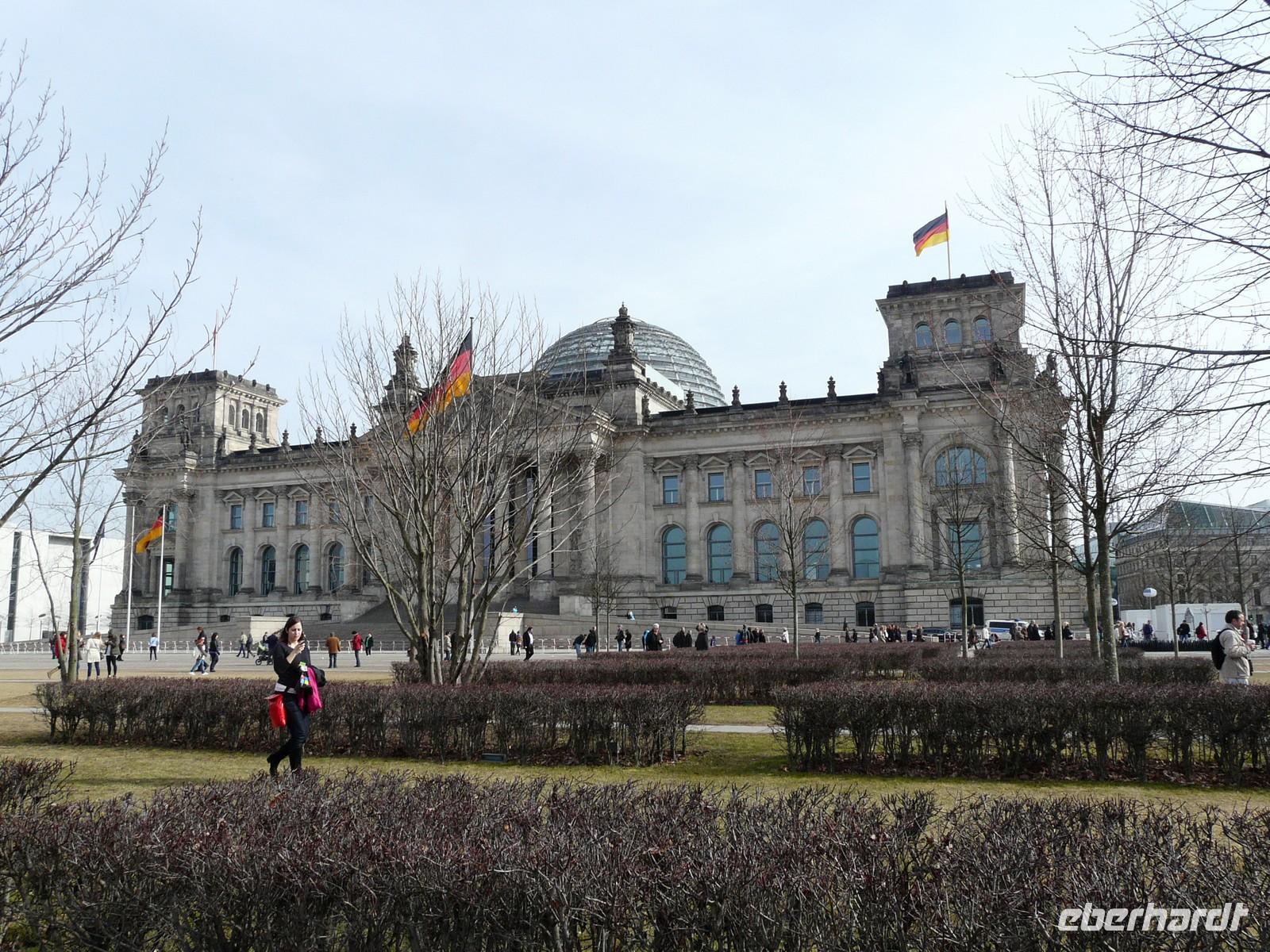Dann ging es durch das Regierungsviertel und ein knapp halbstündiger Stopp neben dem Reichstag ermöglichte nicht nur eine Toilettenpause, sondern viele Fotomotive am vom Architekten Wallot gestalteten Reichstag - der übrigens auch das Sächsische Ständehaus in Dresden entwarf - und am bekannten Brandenburger Tor von Langhans (Torbau) und dem Bildhauer Schadow (Krönende Quadriga mit Siegesgöttin Victoria).