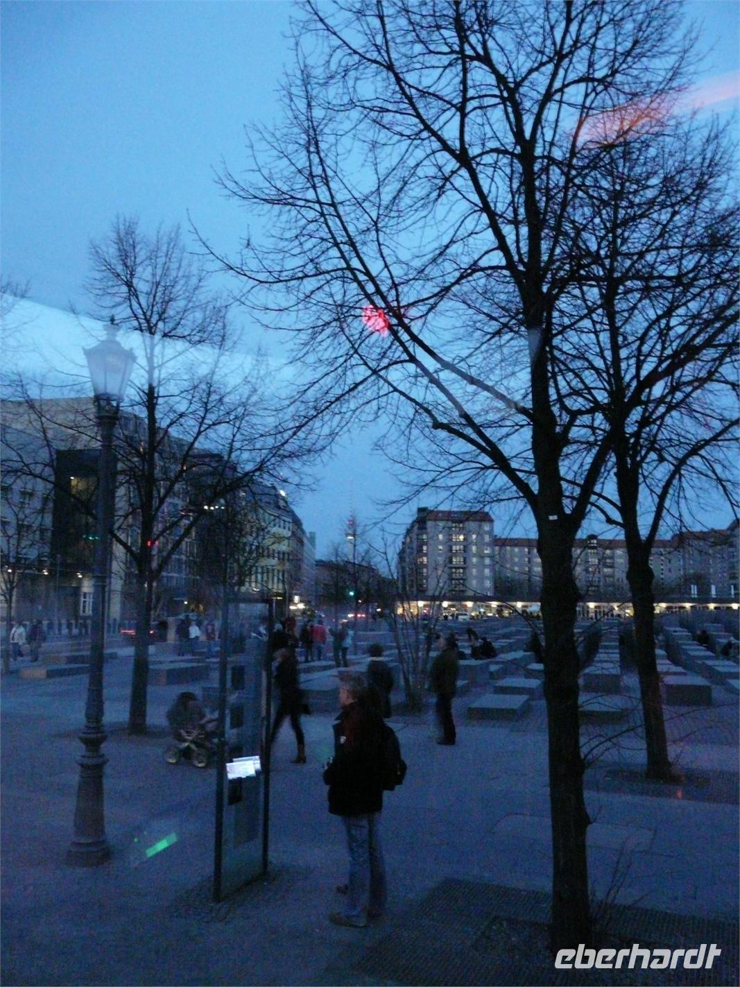 Da der Treff nach dem Musical und der Einstieg in den Bus rasch und problemlos funktionierten und wir noch Zeit bis zum bestellten Abendessen hatten, konnten wir noch eine Rundfahrt über den völlig überfüllten Kurfürstendamm anschließen und noch einen Stopp am Berliner Holocaust-Denkmal machen.