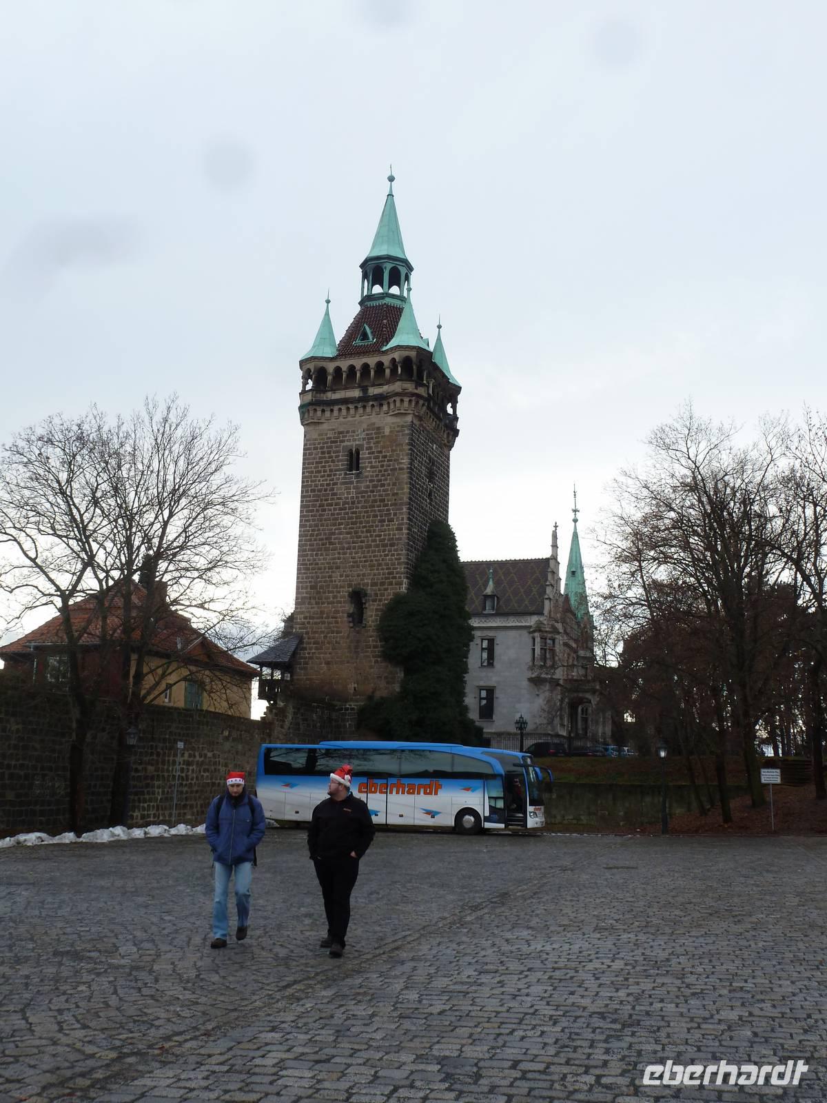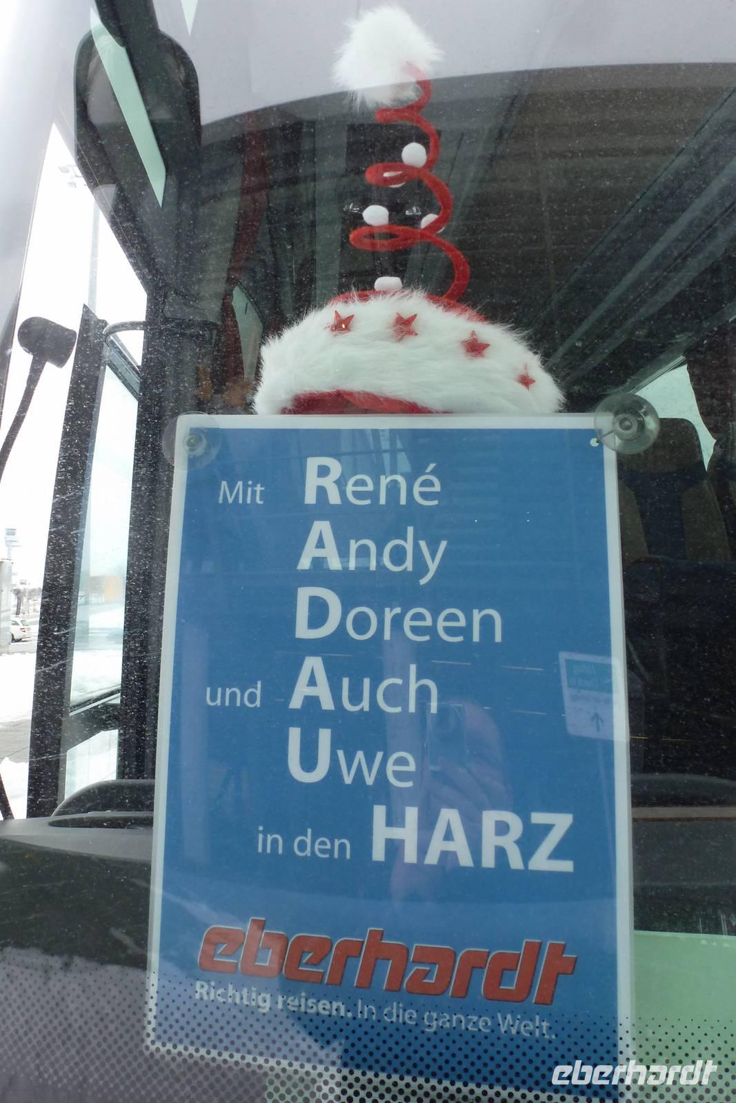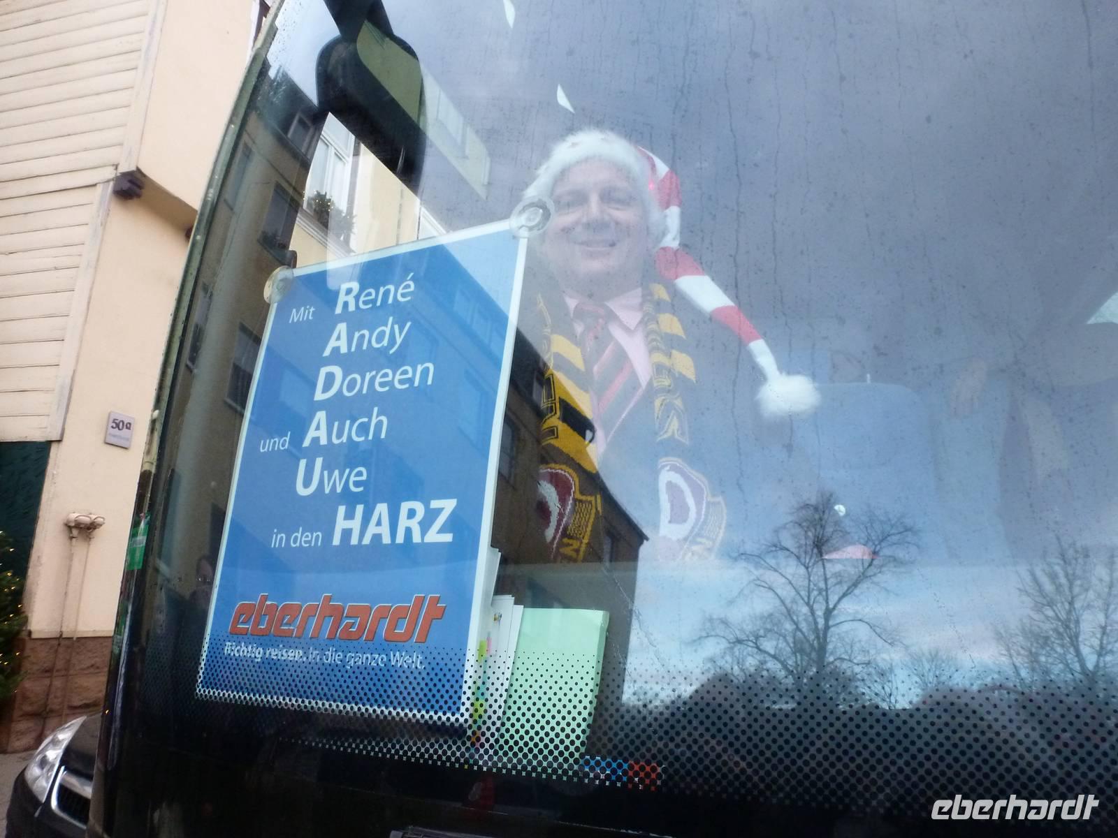 Weihnachtlich verkleidet mit unseren beleuchteten und musikalischen Weihnachtsmützen, die wir gegenüber dem letzten Jahr noch einmal modisch ergänzt hatten, ging es mit Rene, Andy, Doreen und Auch Uwe in den Harz. 22 erwartungsfrohe Lieblingsgäste starteten am frühen Morgen von Dresden über Kesselsdorf, Döbeln, Grimma und Leipzig in Richtung Wernigerode. Die Witterungsbedingungen waren gut, die Straßen frei uns so trafen wir bequem und nach einer kurzen Mittagspause mit leckerer Bordverpflegung gut gestärkt an unserem Zielort ein. An unserem Treffpunkt erwartete uns bereits die Wernigeröder Schloßbahn, um uns zum Schloß zu bringen. Nach einer kurzen Fahrt und einem kleinen Spaziergang standen wir bald auf dem Schloßplatz und konnten von hier den herrlichen Blick über die Stadt genießen. Das Wernigeröder Schloß wurde erstmals 1213 erwähnt und war seit dem 15. Jahrhundert der Stammsitz der Grafen zu Stolberg-Wernigerode. 1929 wurde das Schloß als ständiger Sitz der Grafenfamilie aufgegeben und ist seitdem ein Museum für Kunst und Kulturgeschichte. Mit der Schloßbahn ging es zurück in die Stadt und direkt zu unserem Übernachtungsquartier, dem Alt Wernigeröder Hof. Das Hotel ist ruhig und sehr zentral gelegen, etwa 400 Meter vom Markt entfernt. Nachdem wir unsere Zimmer bezogen hatten, erkundeten wir mit unserer örtlichen Reiseleiterin die Stadt zu Fuß. Auf kompetente und sympathische Art zeigte Sie uns Ihre Stadt und führte uns zu den vielen Sehenswürdigkeiten, wie der Hinterstraße mit den urigen, alten Fachwerkhäuser und dem ältesten Haus aus dem 14. Jahrhundert, dem Westerntor, dem Wohltäterbrunnen, dem Rathaus oder auch dem Schiefen Haus - welches wirklich sehr schief ist. Nach interessanten 90 Minuten endete die Führung auf dem Marktplatz, wo jeder noch genügend Zeit hatte, individuell über den Weihnachtsmarkt zu bummeln und die Leckereien der verschiedenen Stände zu probieren. Aber nicht zu viel, denn für 18:30 Uhr war das gemeinschaftliche Abendessen im Hotel bestellt. Nach dem ein oder anderen Glühwein oder Met oder Punsch (ich könnte den Baileys-Punsch empfehlen mmmmmhhh) ... und einem reichhaltigen Buffet im Hotel, wartete noch eine kleine Überraschung auf uns. Eine „ungefährliche" Harzhexe unterhielt uns mit Ihrem Programm über die Sagen und Mythen des Harzes und rundete einen schönen ersten Tag mit vielen neuen Eindrücken ab.